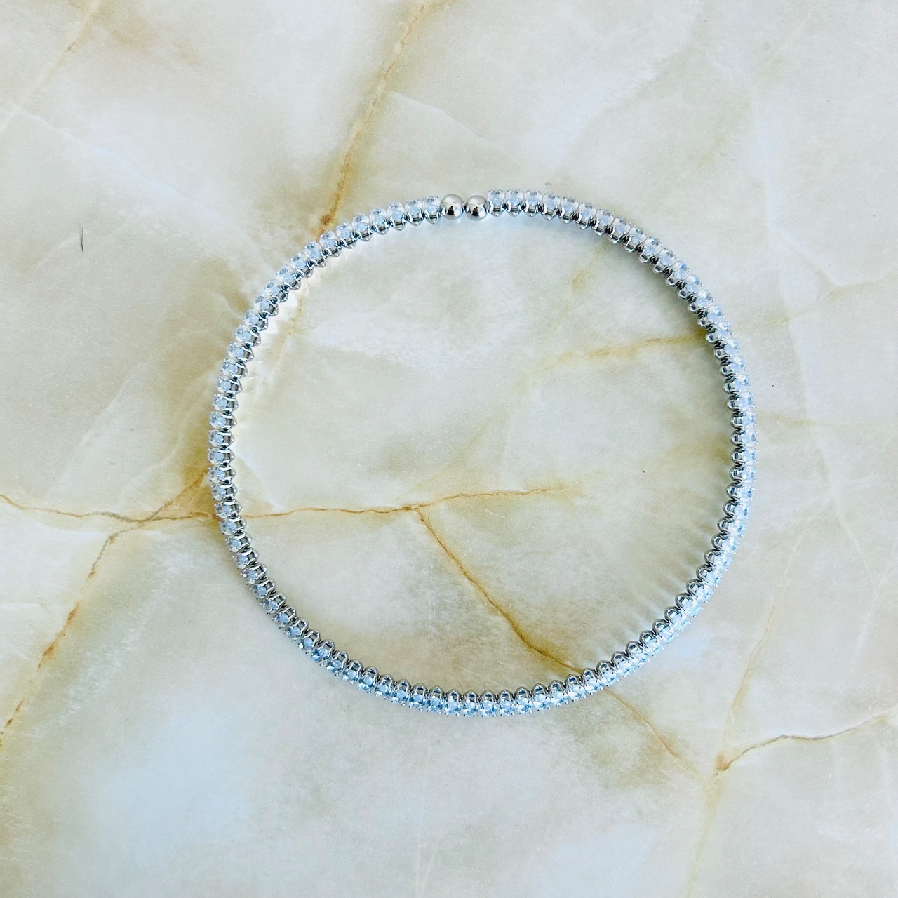 クリアライトブルー✖️シルバーカラーのフープネックレスです。