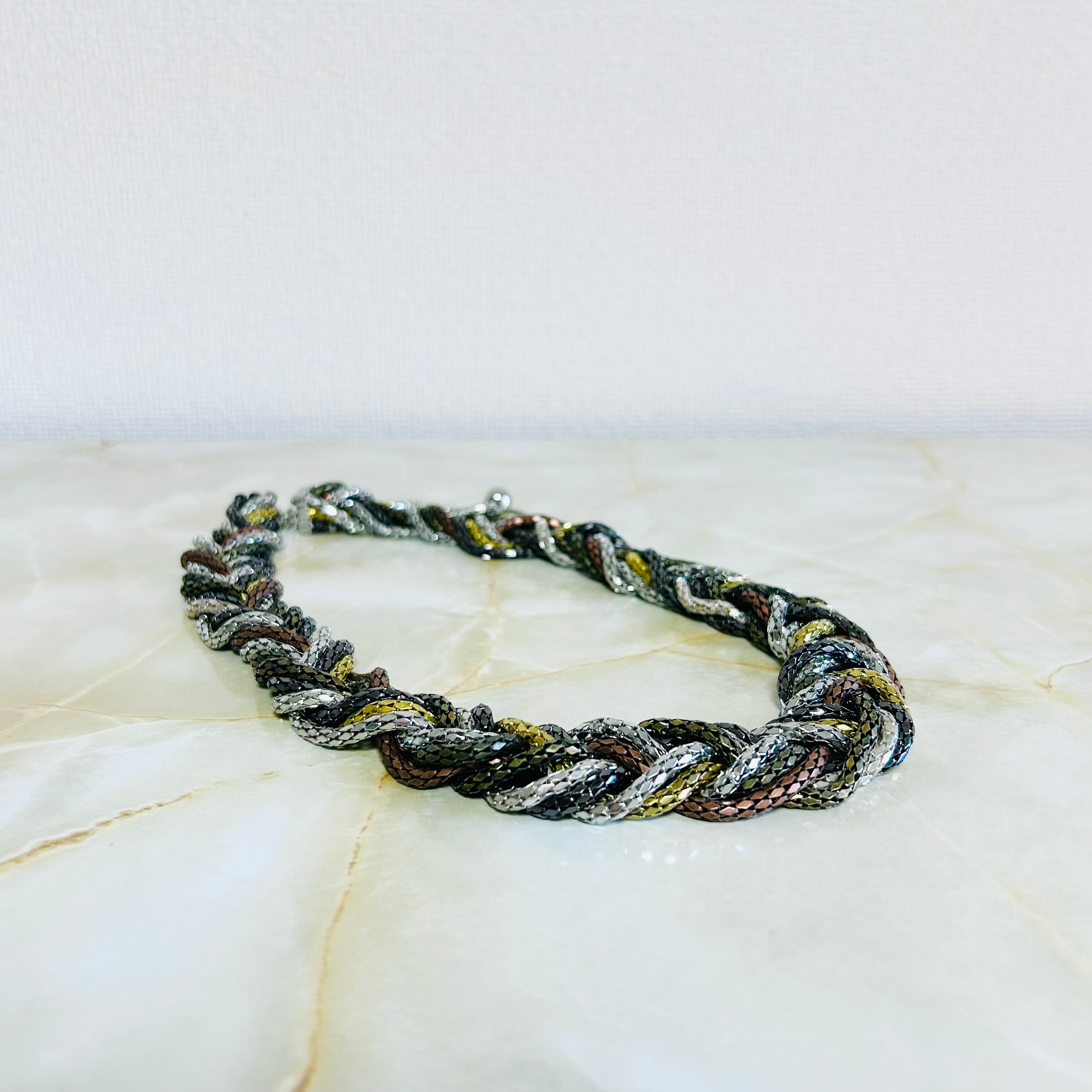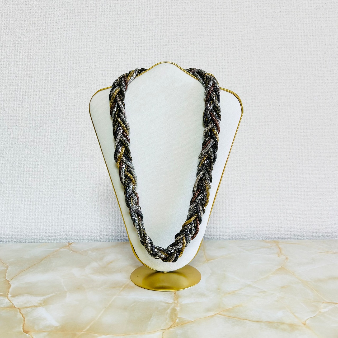ブラウン系✖️シルバーカラーのネックレスと