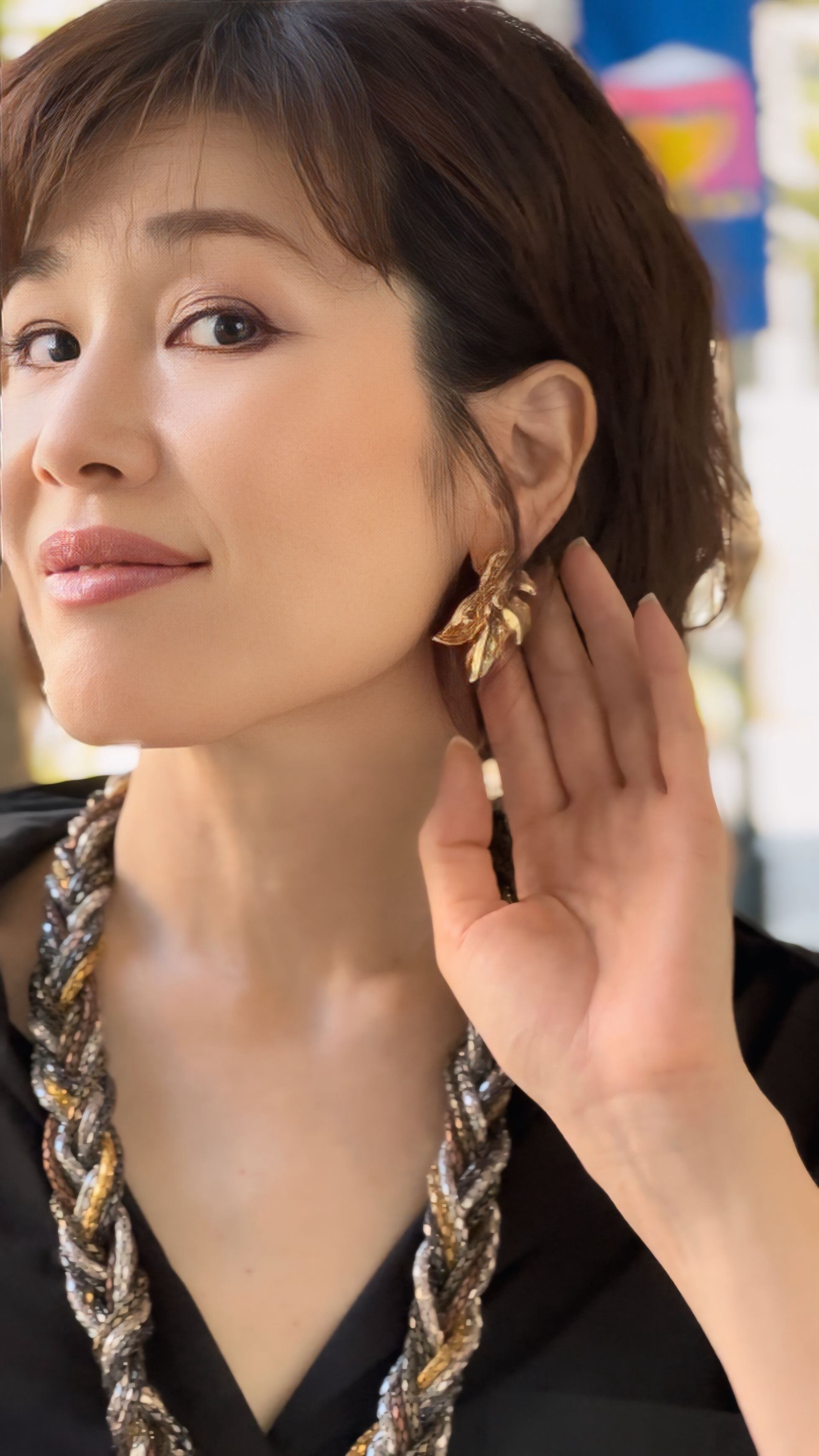 色んなカラーのピアスとも合わせられますが、セットのピアスと合わせると、より華やかで大人っぽい雰囲気にまとまります。