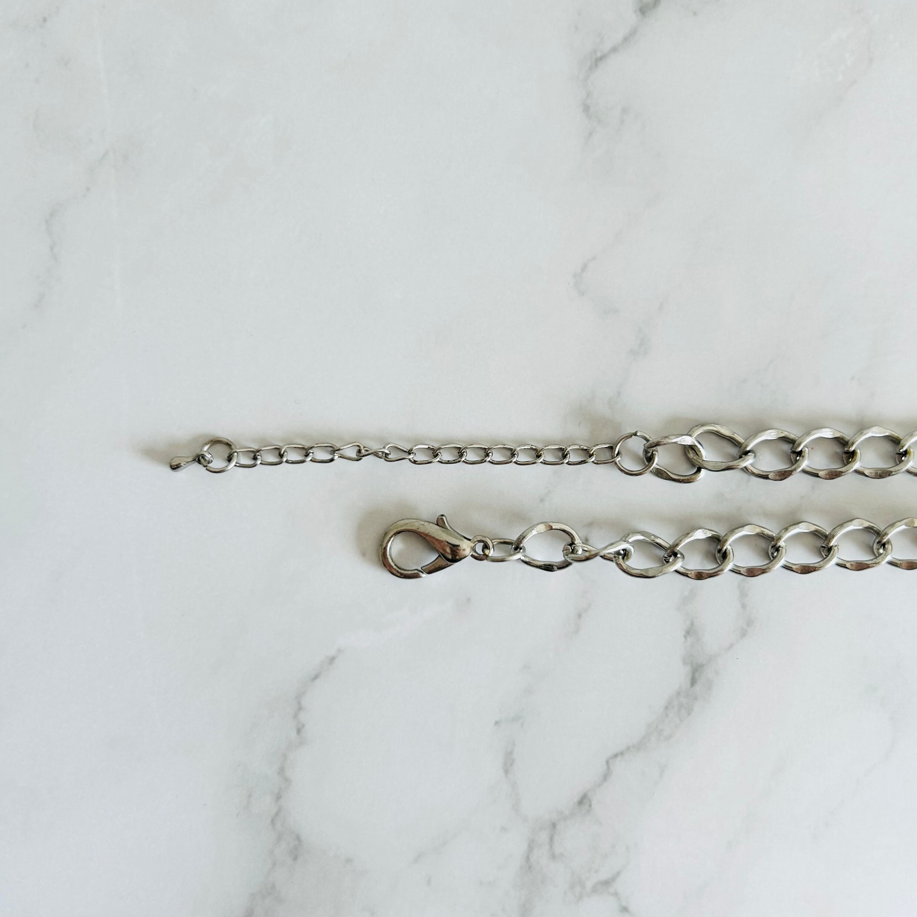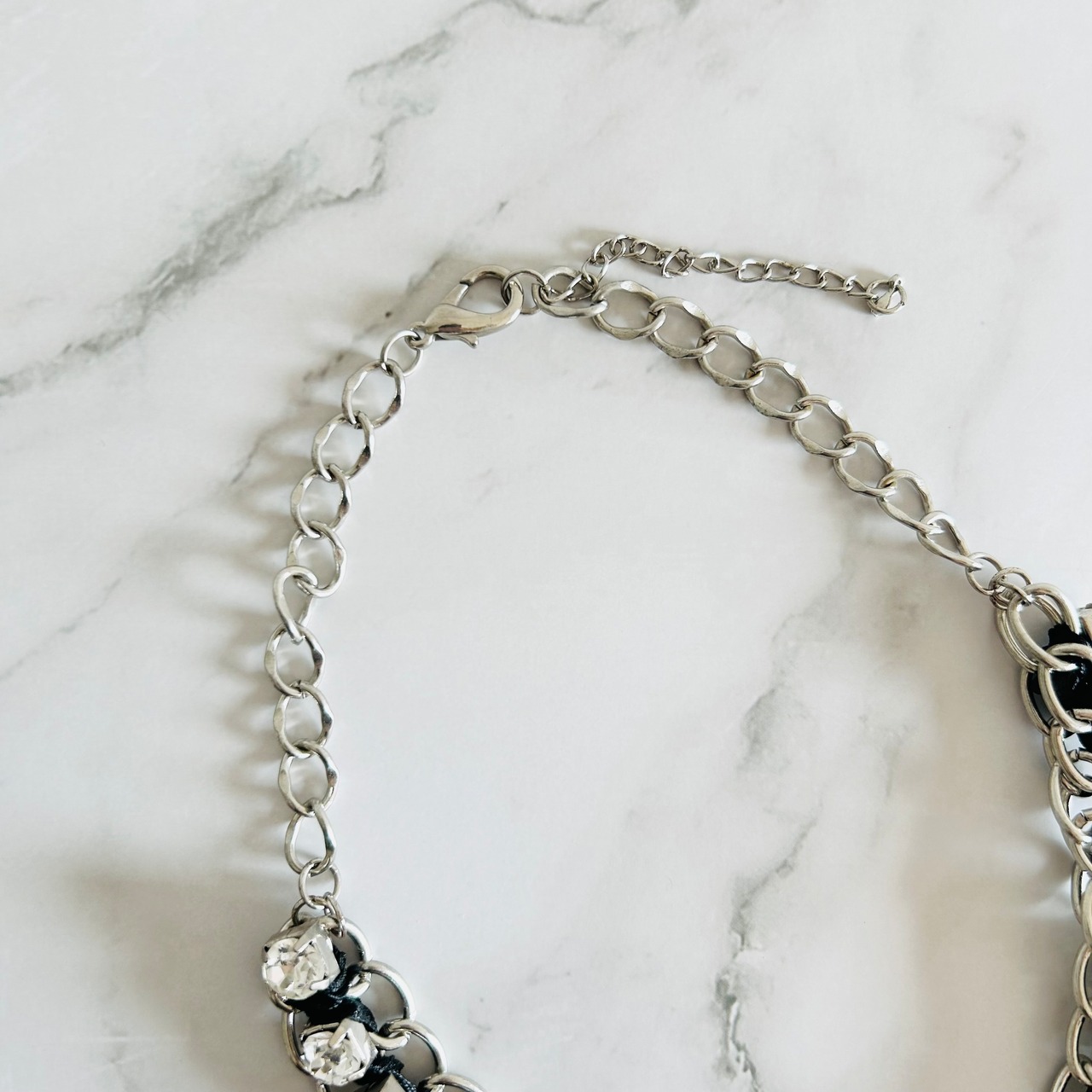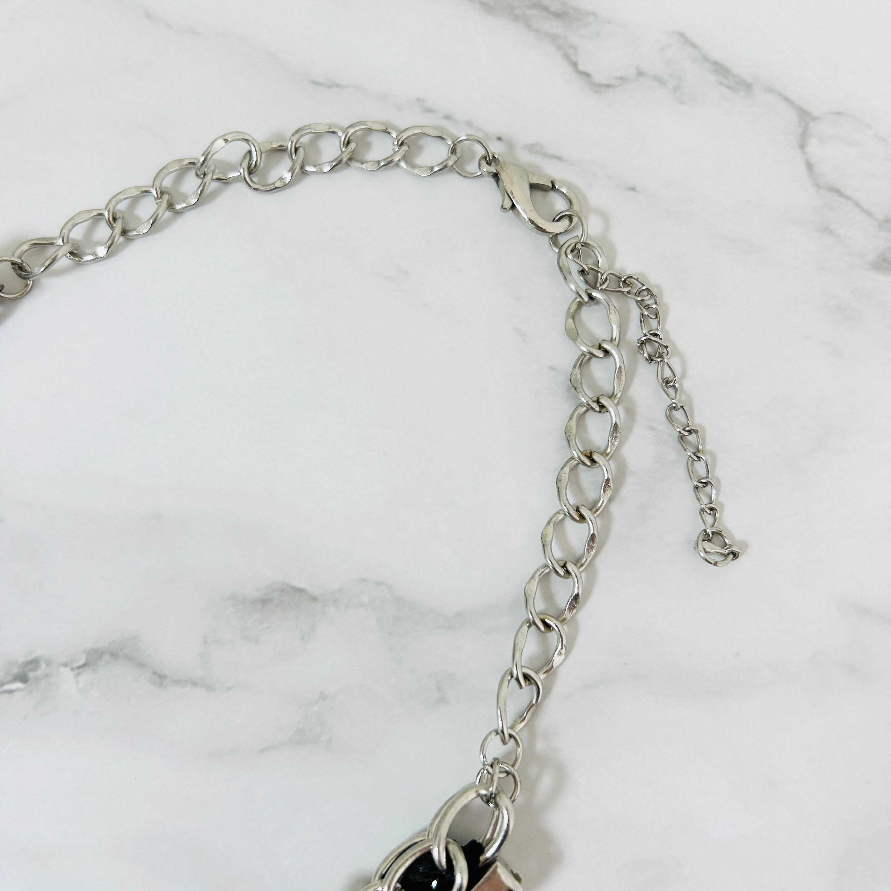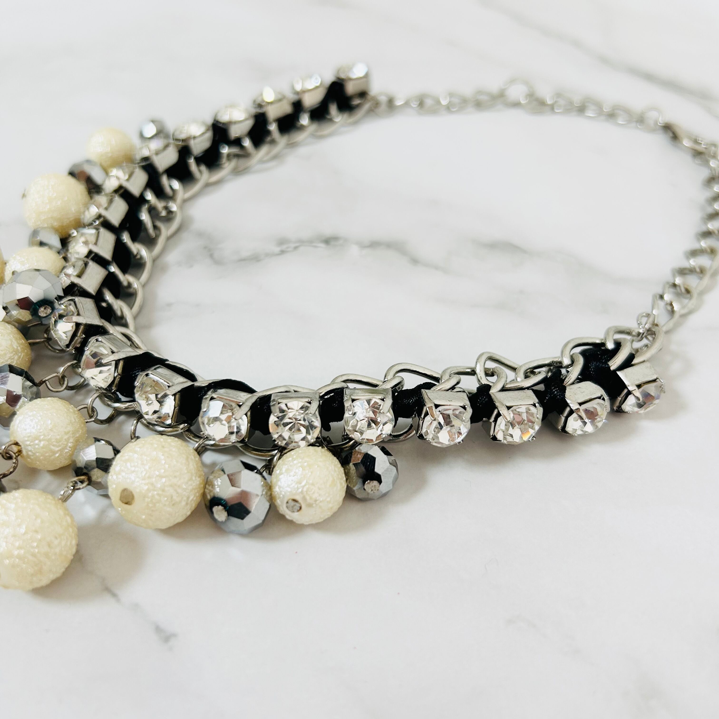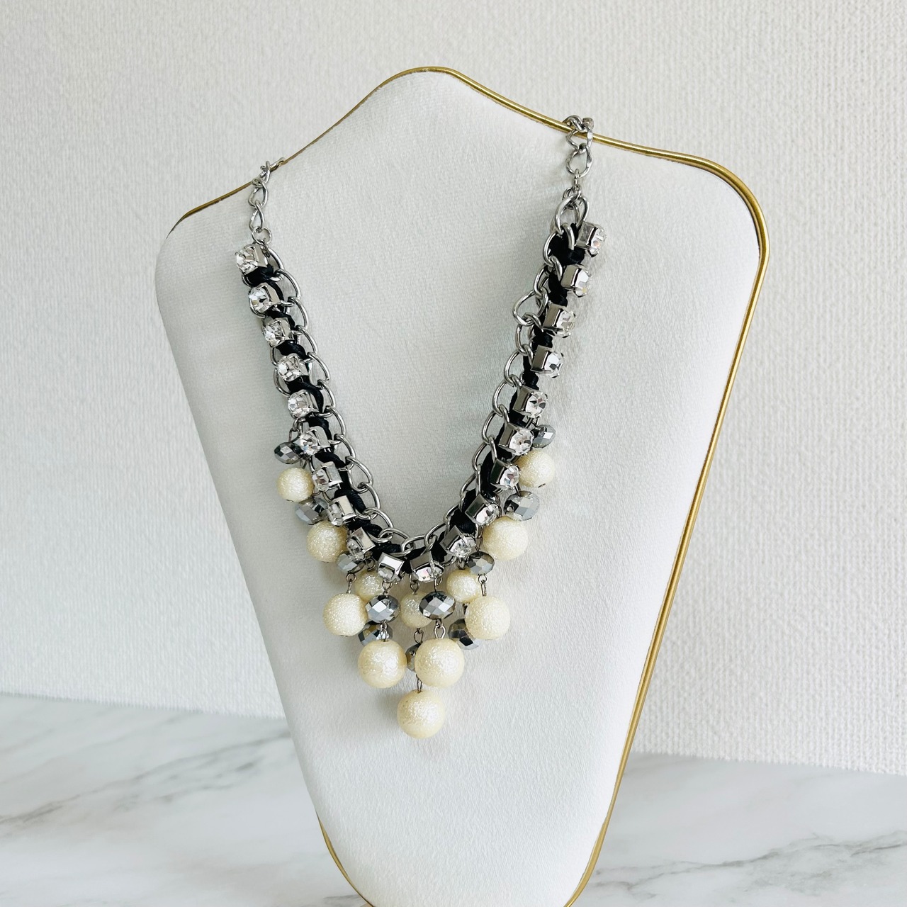 パールカラー、クリアカラー✖️アンティークシルバーカラーのネックレスです。