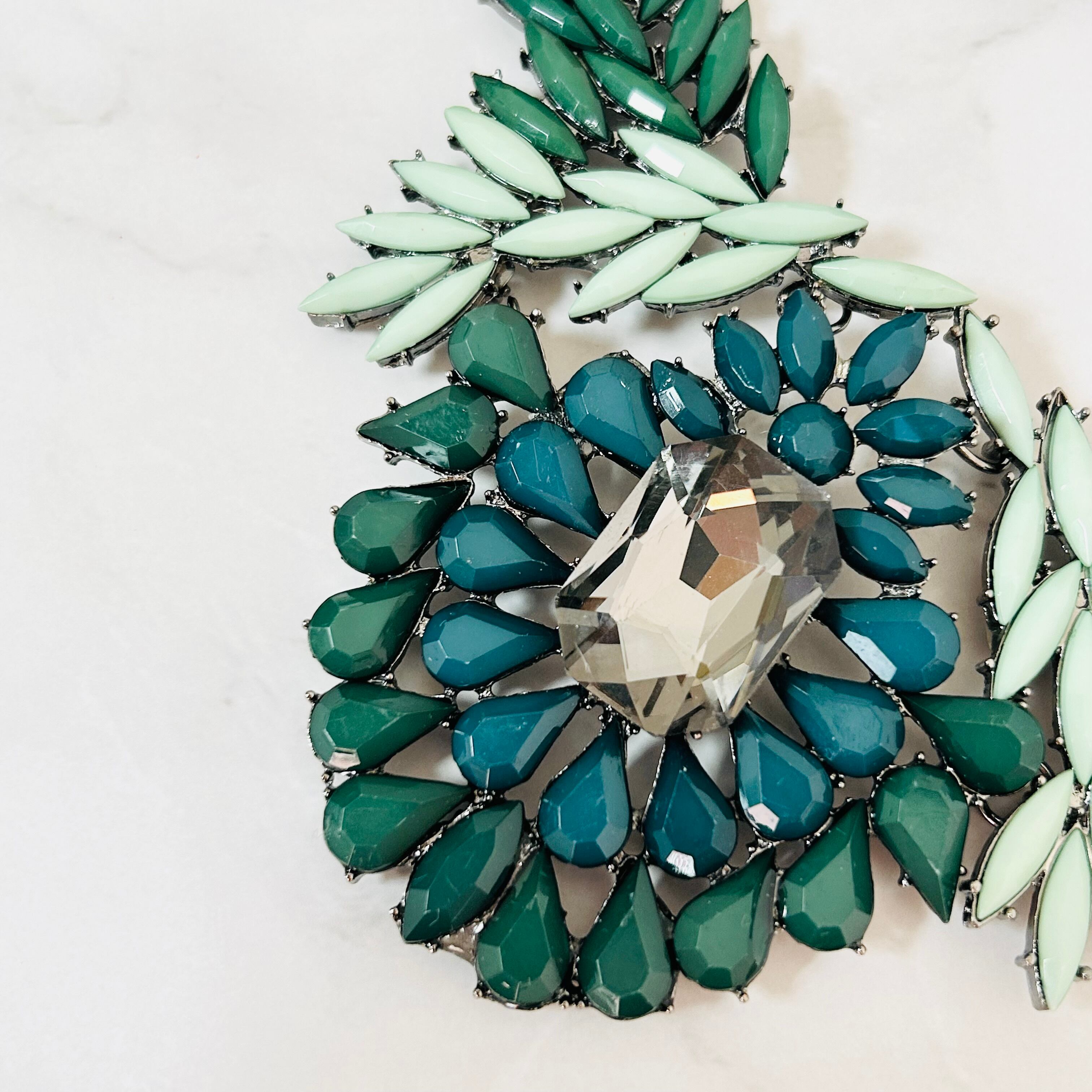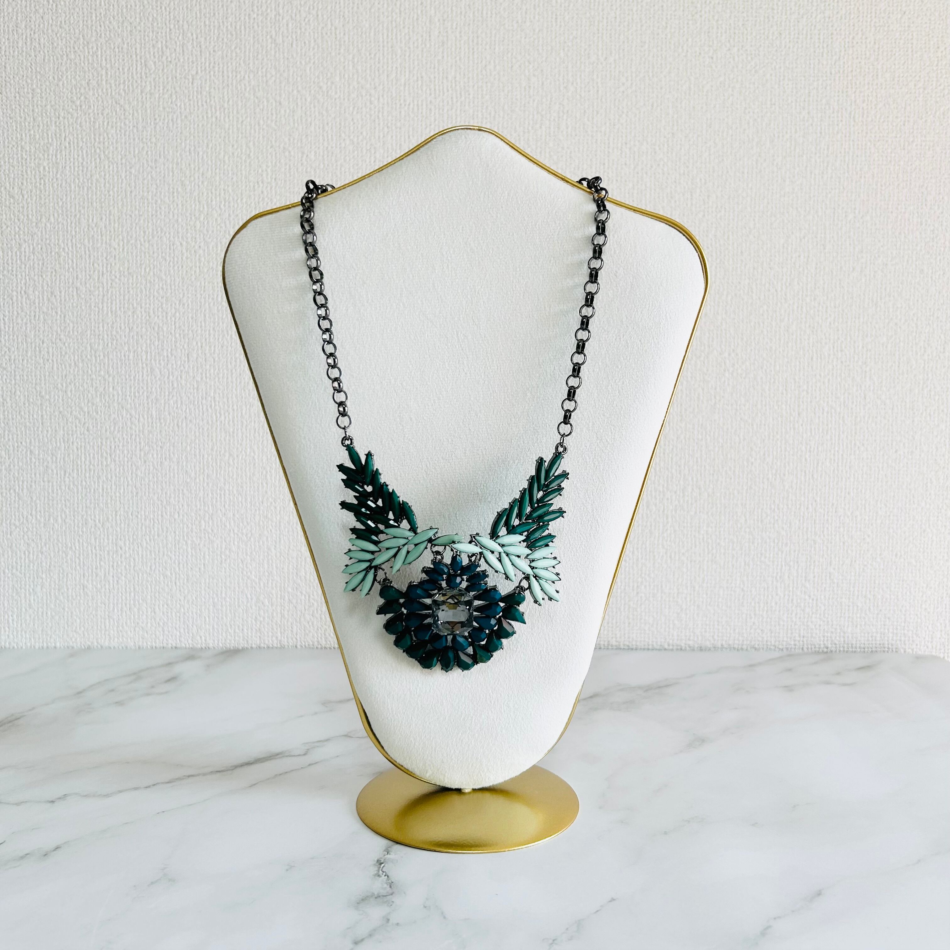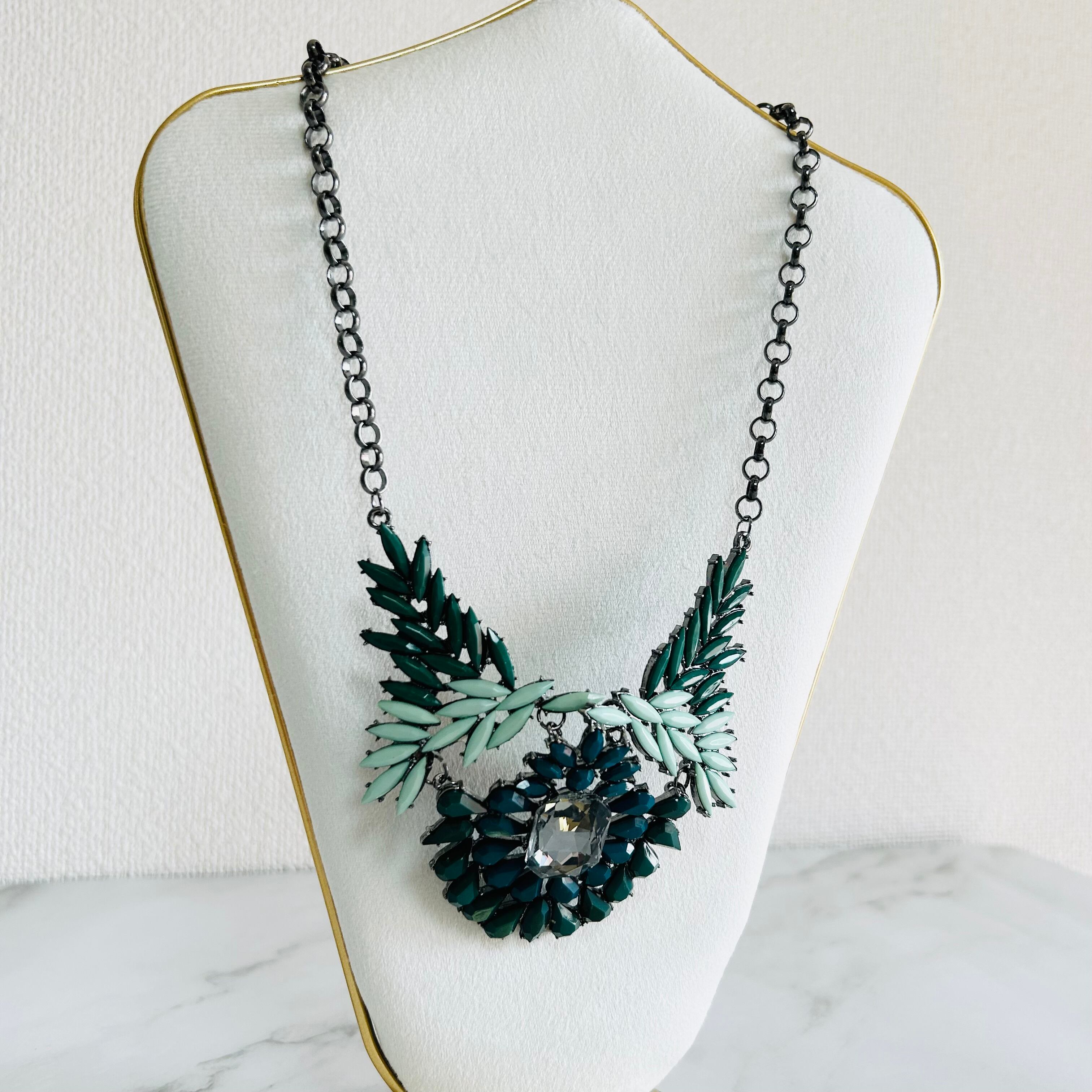グリーンのアクリルパーツを並べ、トップにはが華やかなクリスタルパーツをプラスしたた立体感のあるデザインです✨