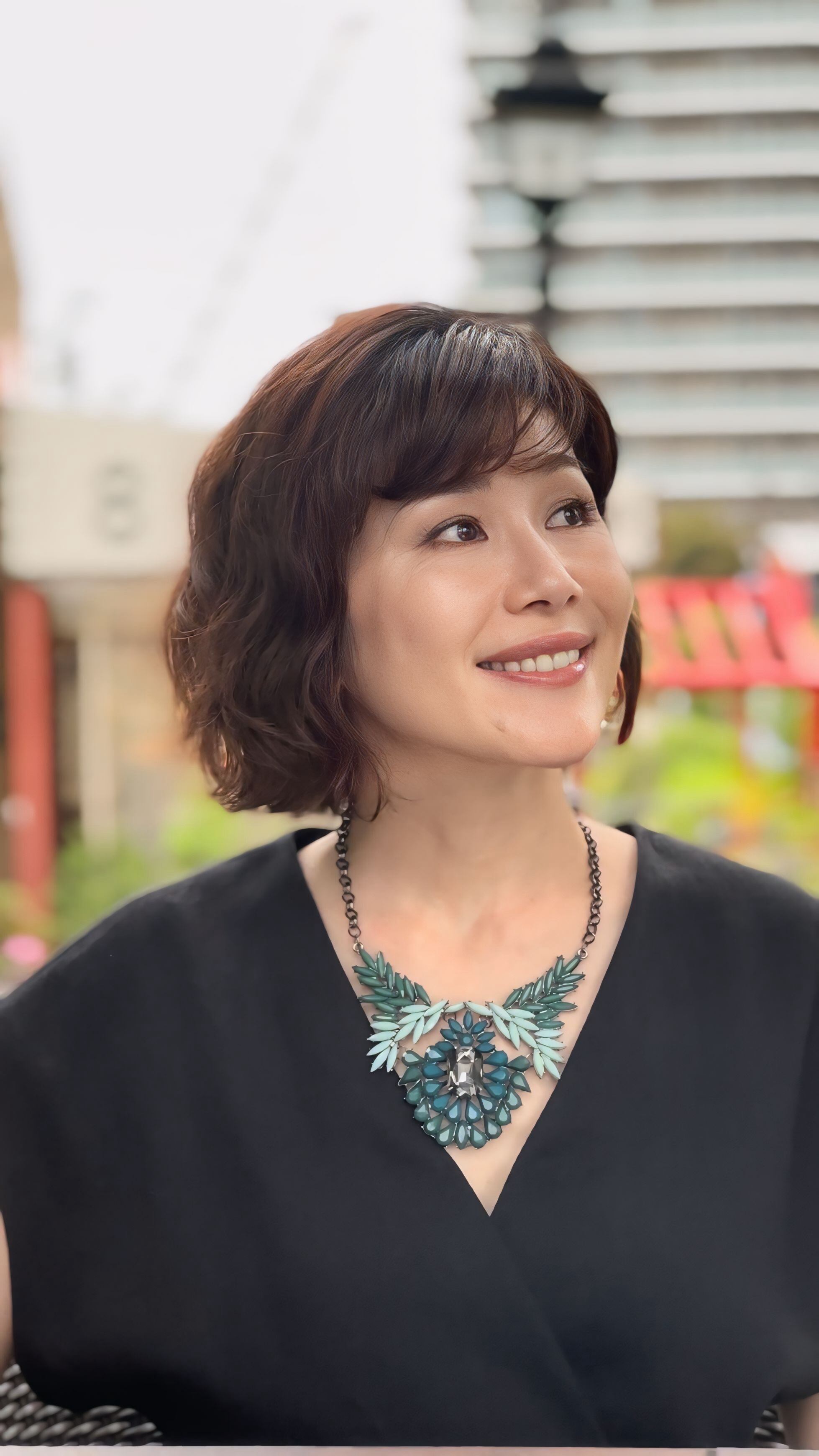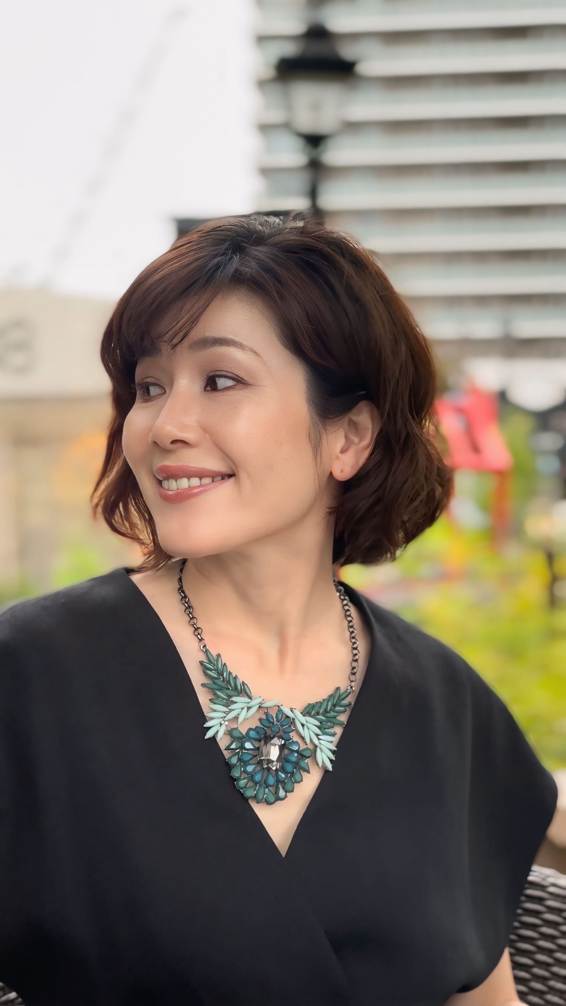 濃淡の異なる3色のグリーンの組み合わせが落ち着いた大人の女性を連想させてます。