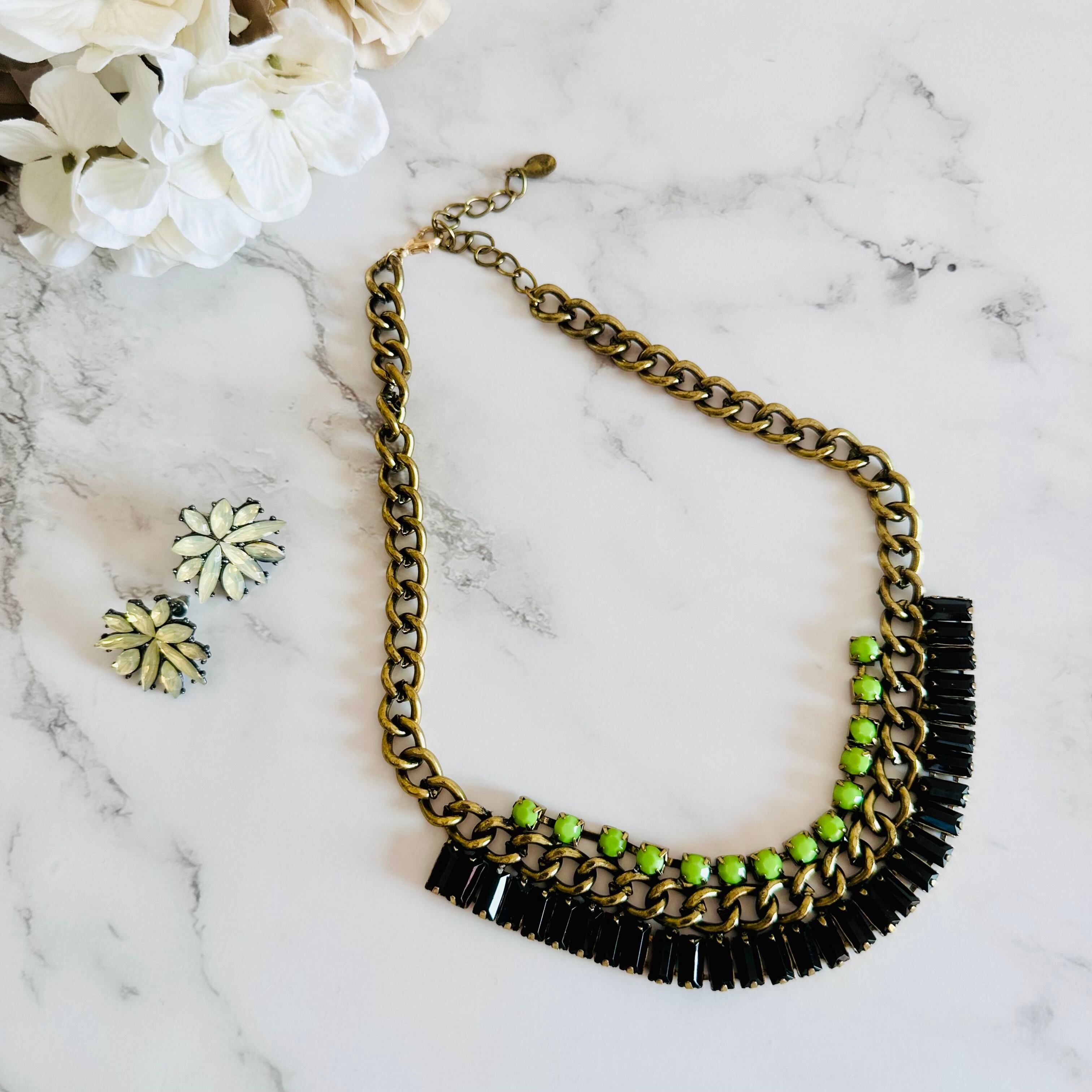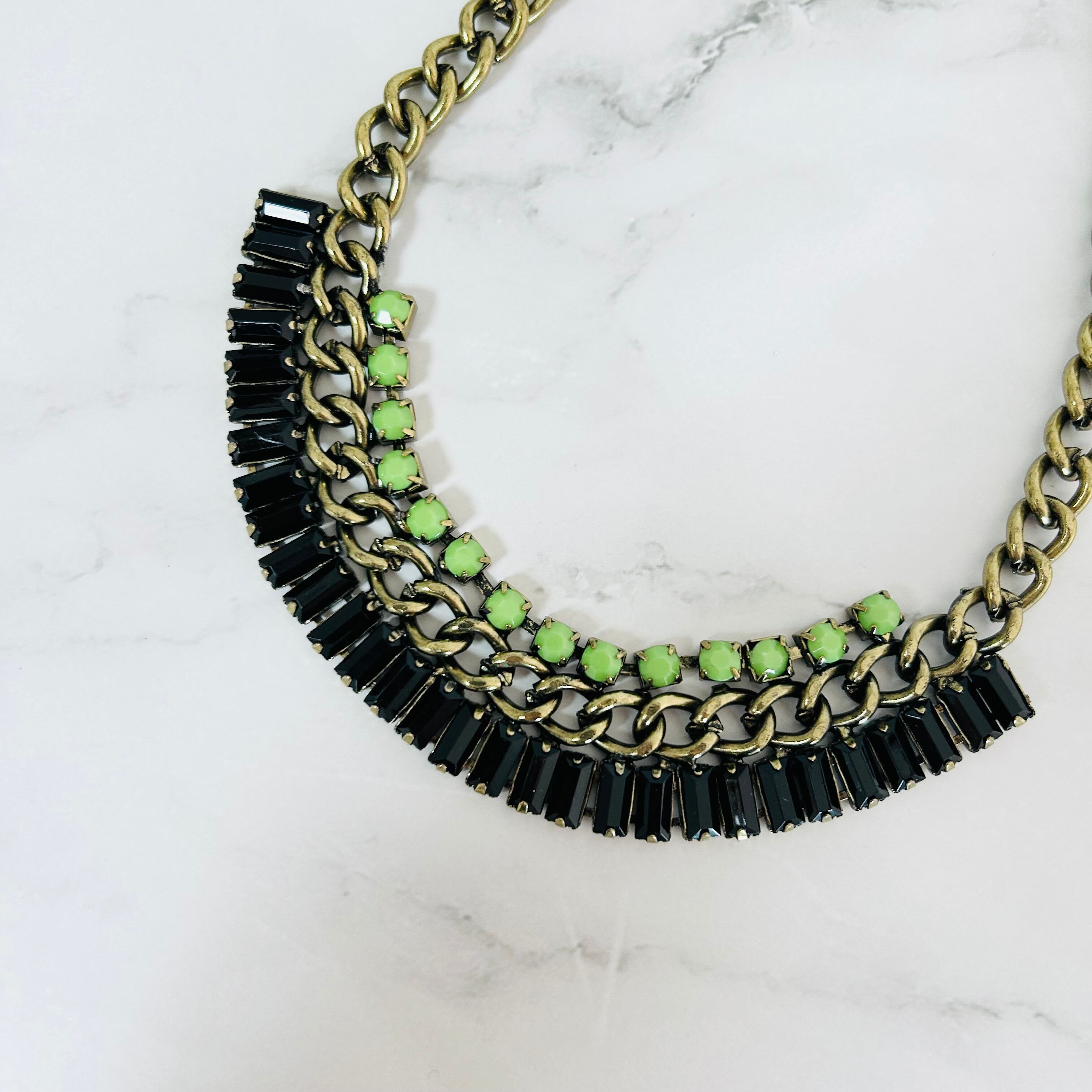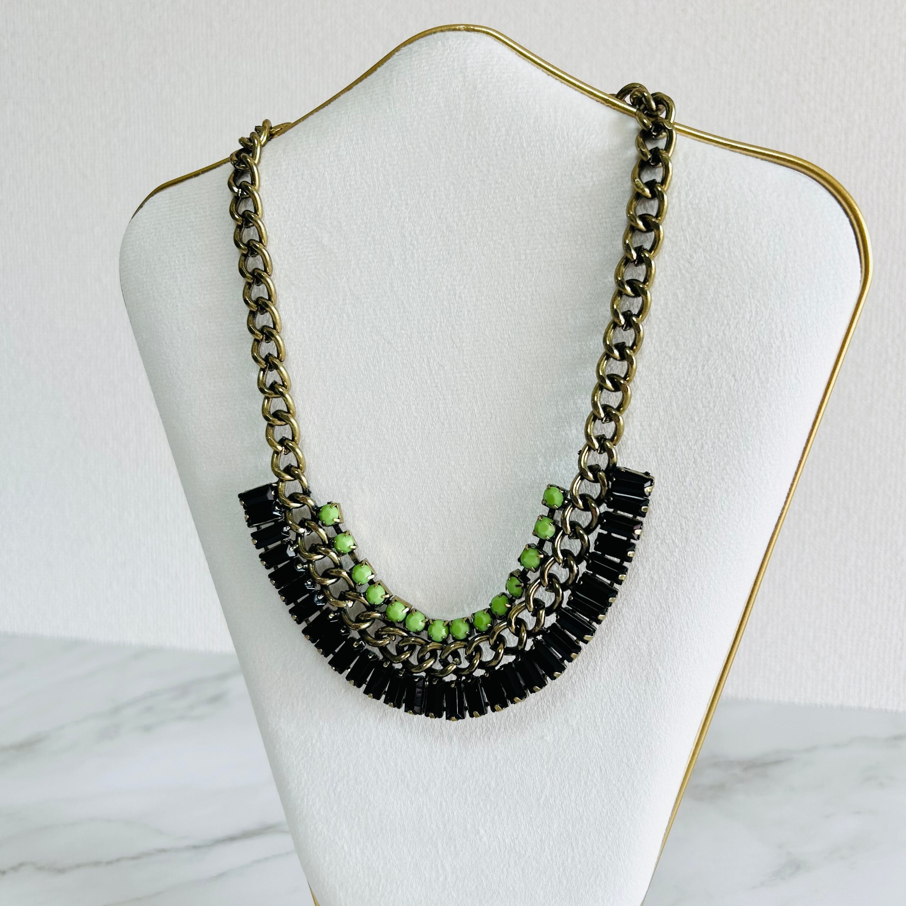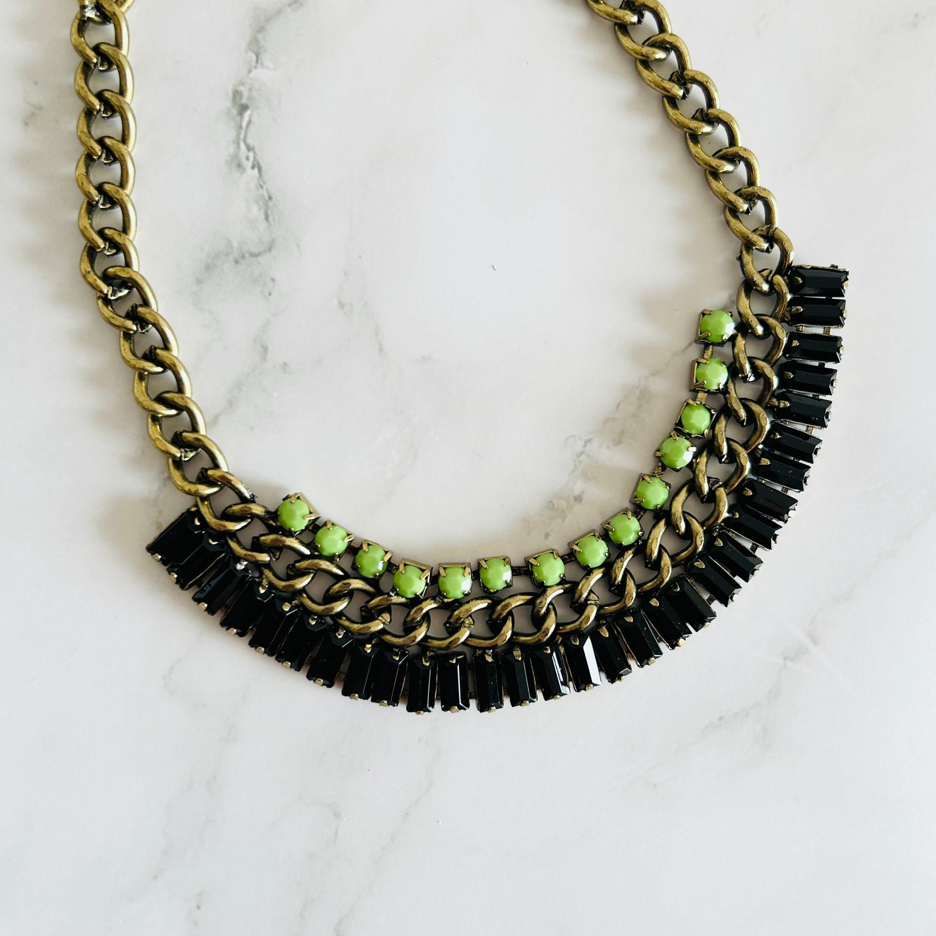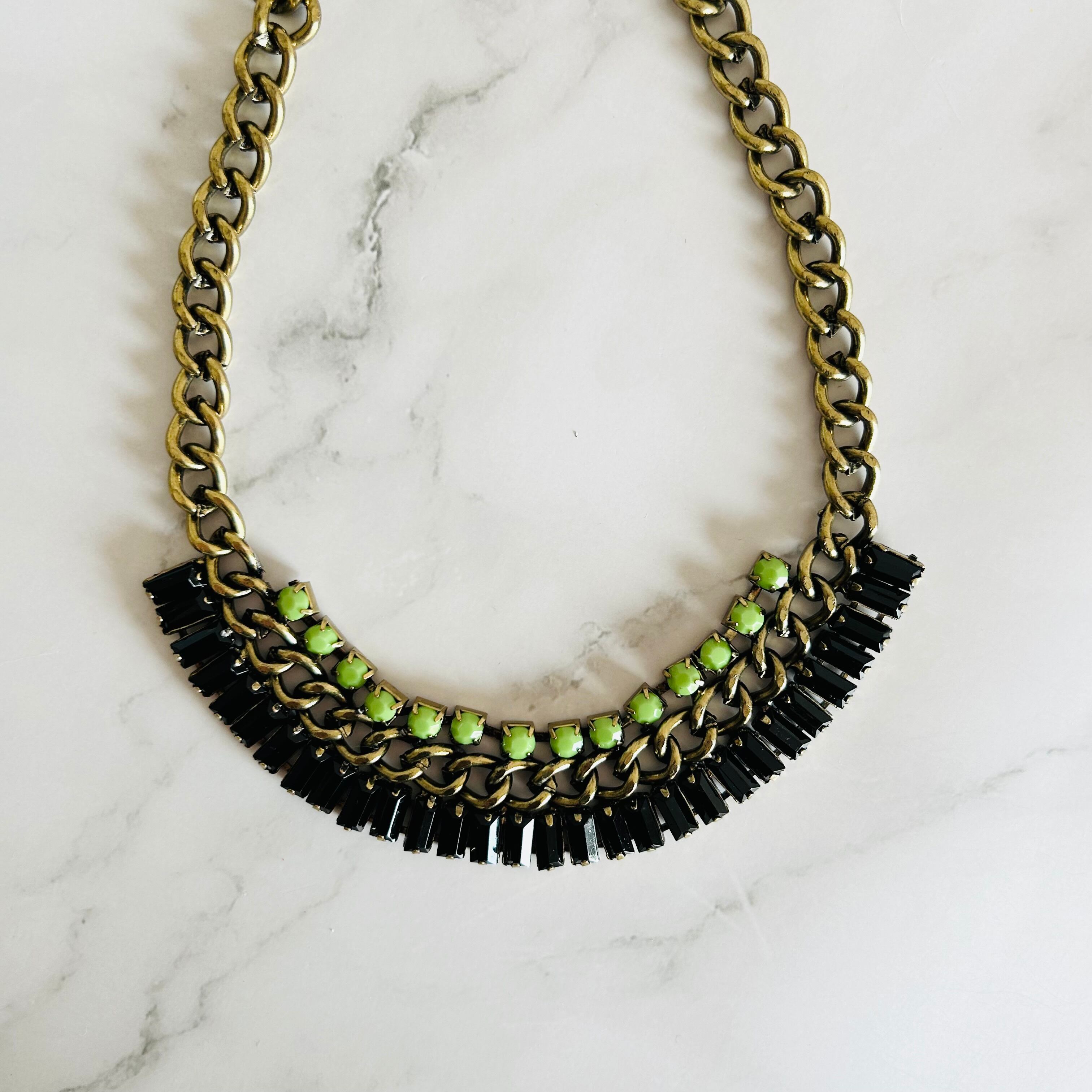ライトグリーン、ブラック✖️アンティークゴールドカラーのネックレスです。