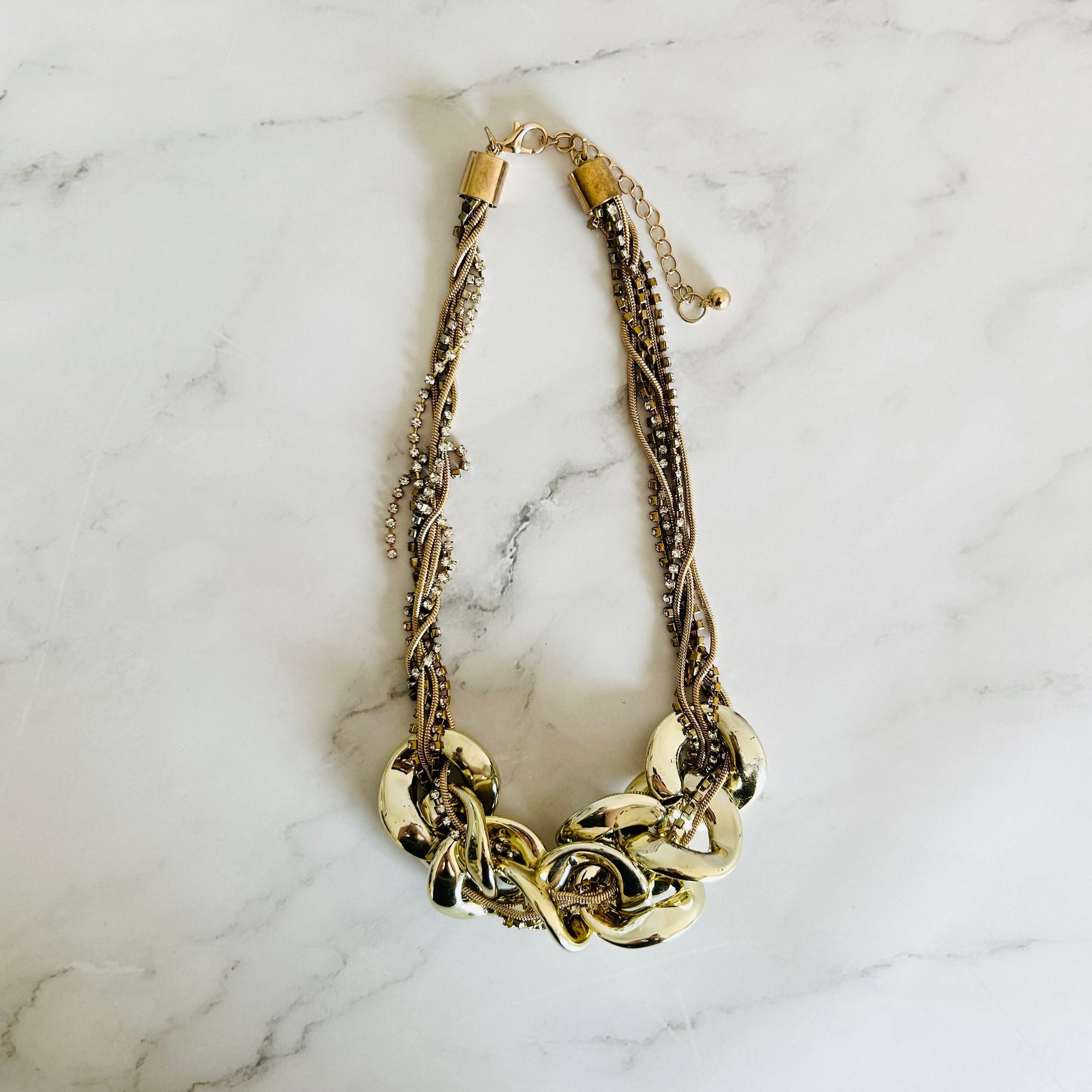 クリア、ゴールドカラー✖️アンティークゴールドカラーのネックレスです。