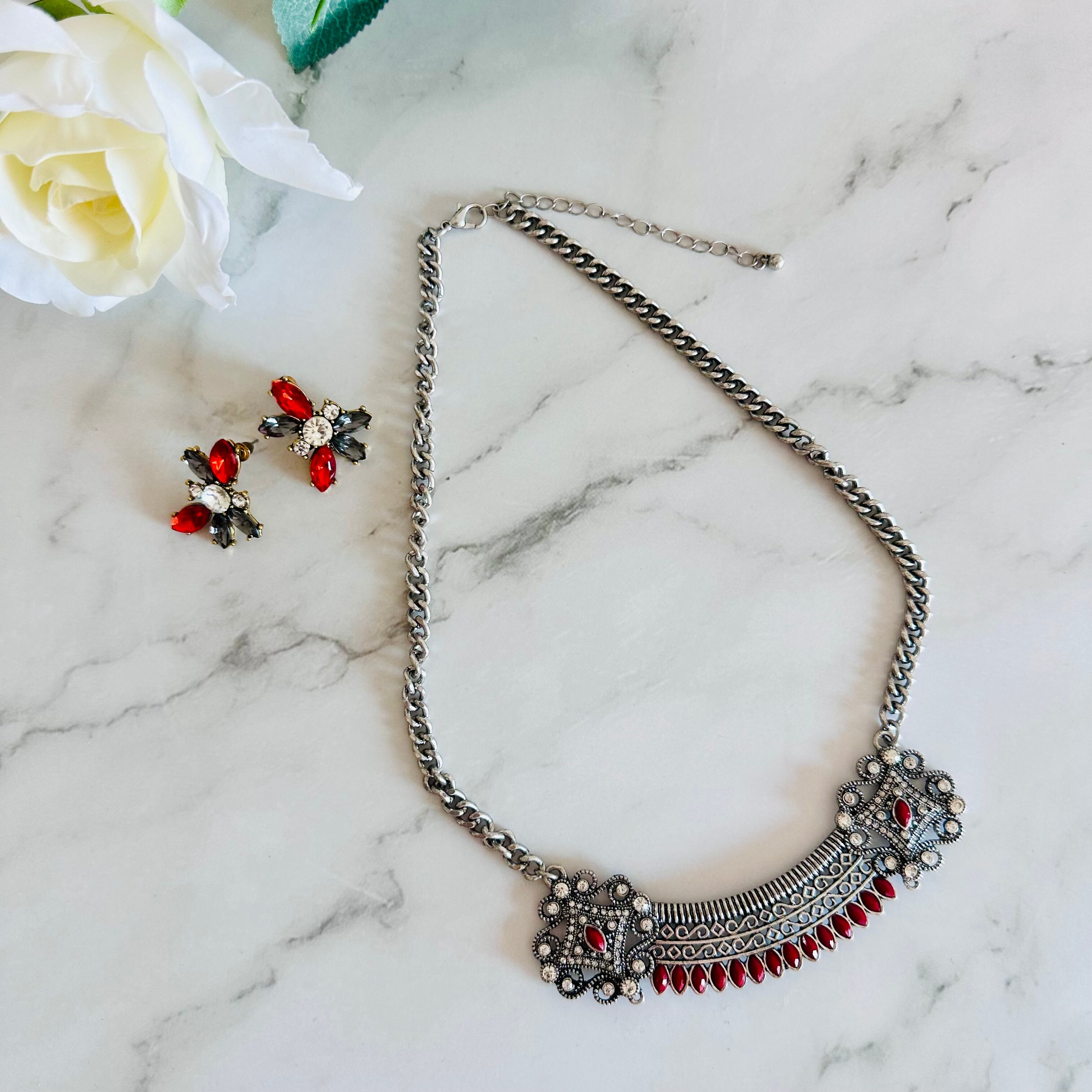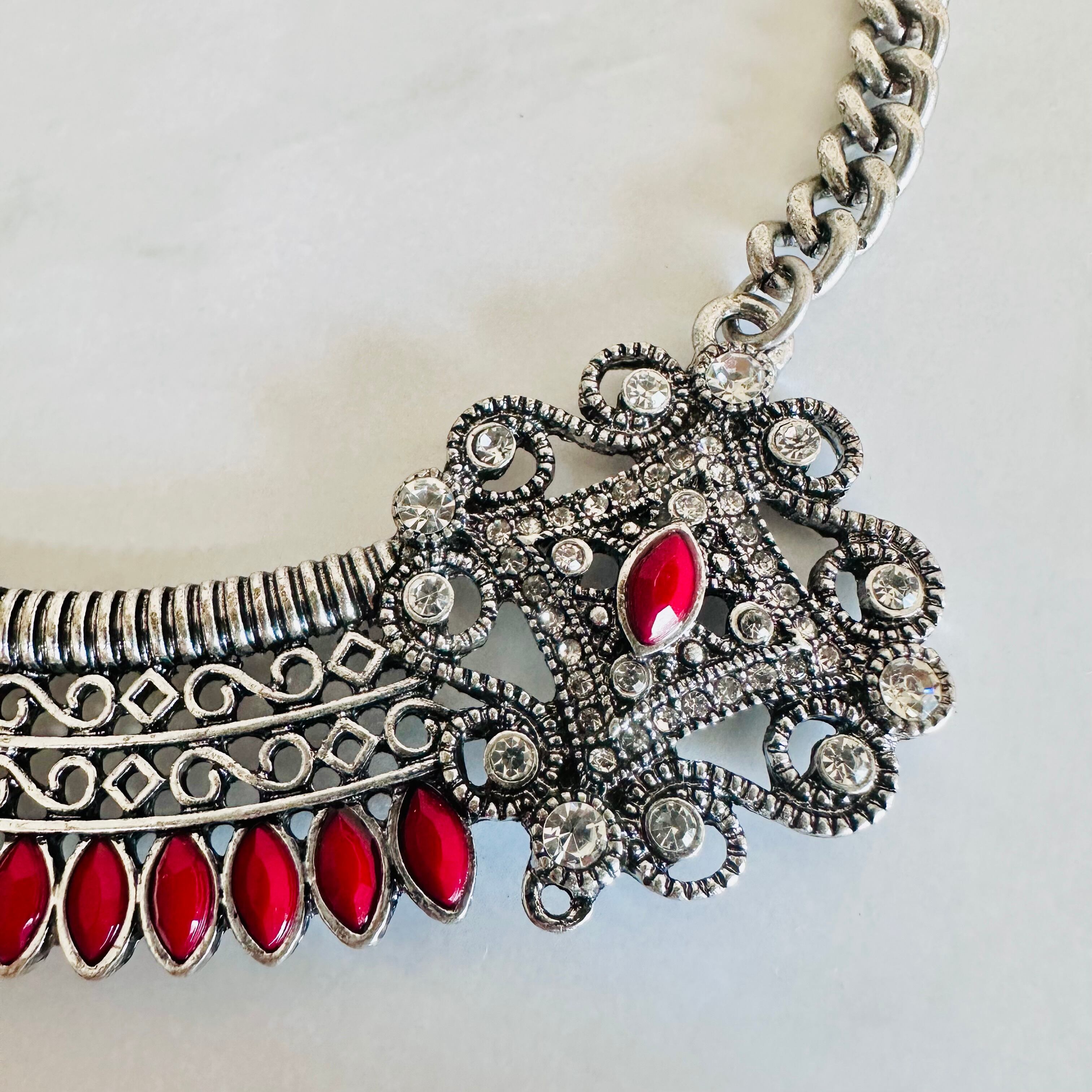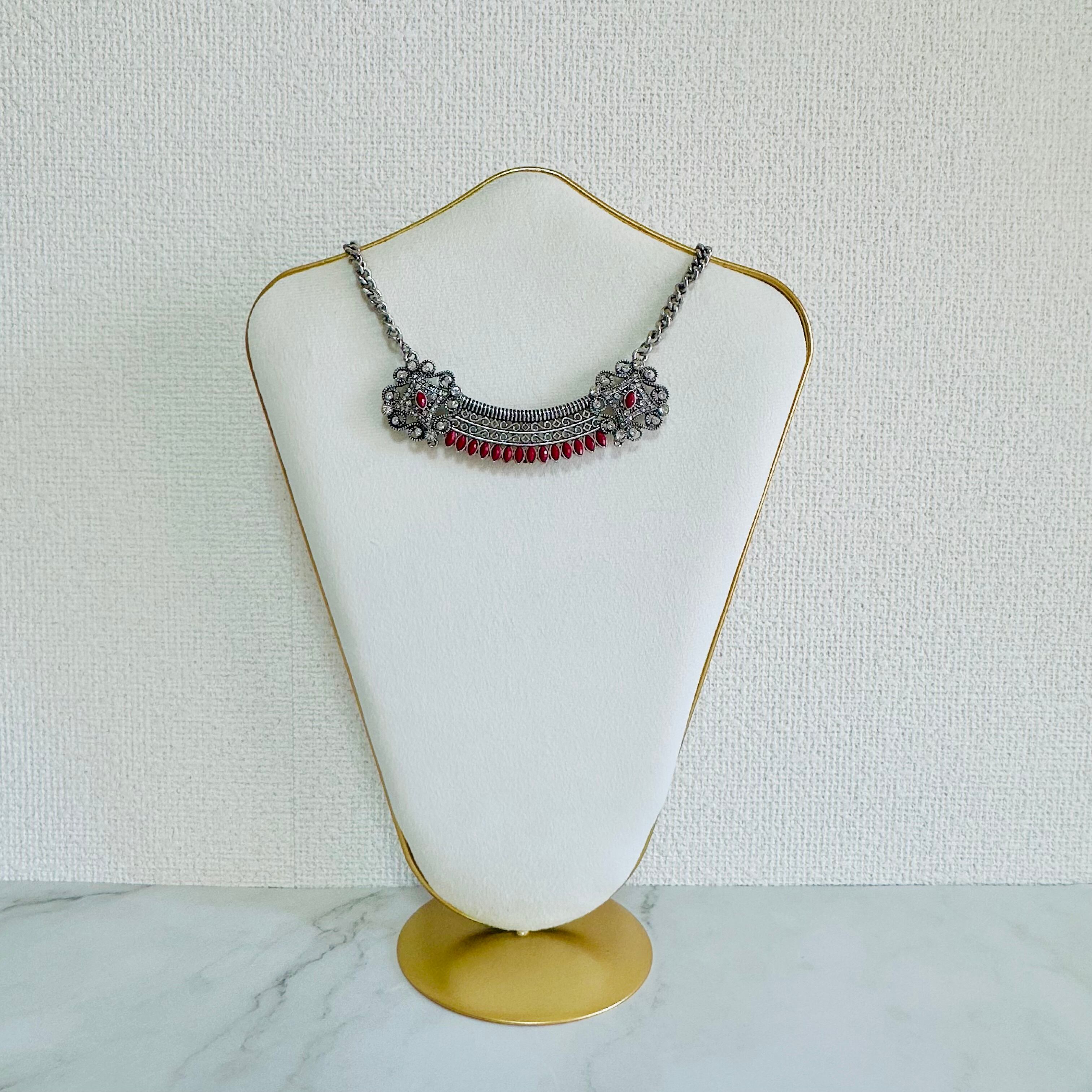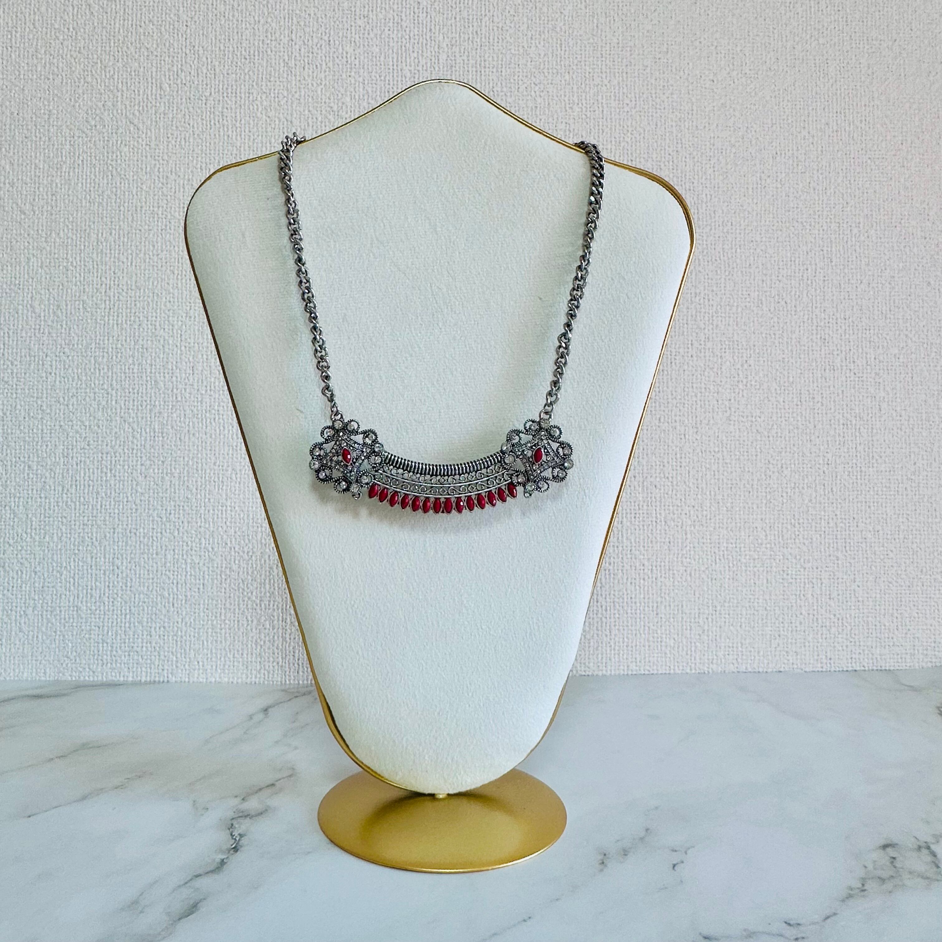 クリア、レッド✖️アンティークシルバーカラーのネックレスです。