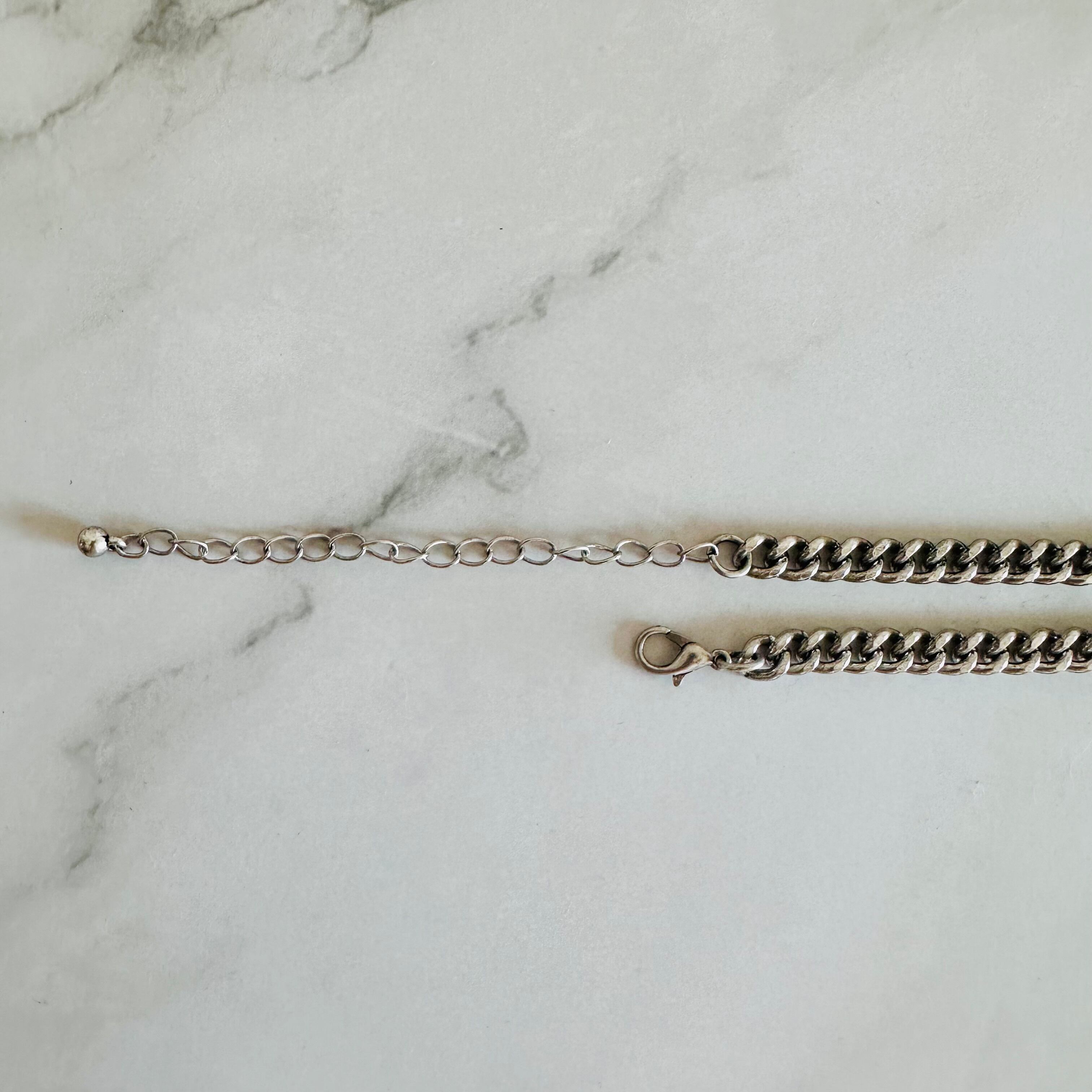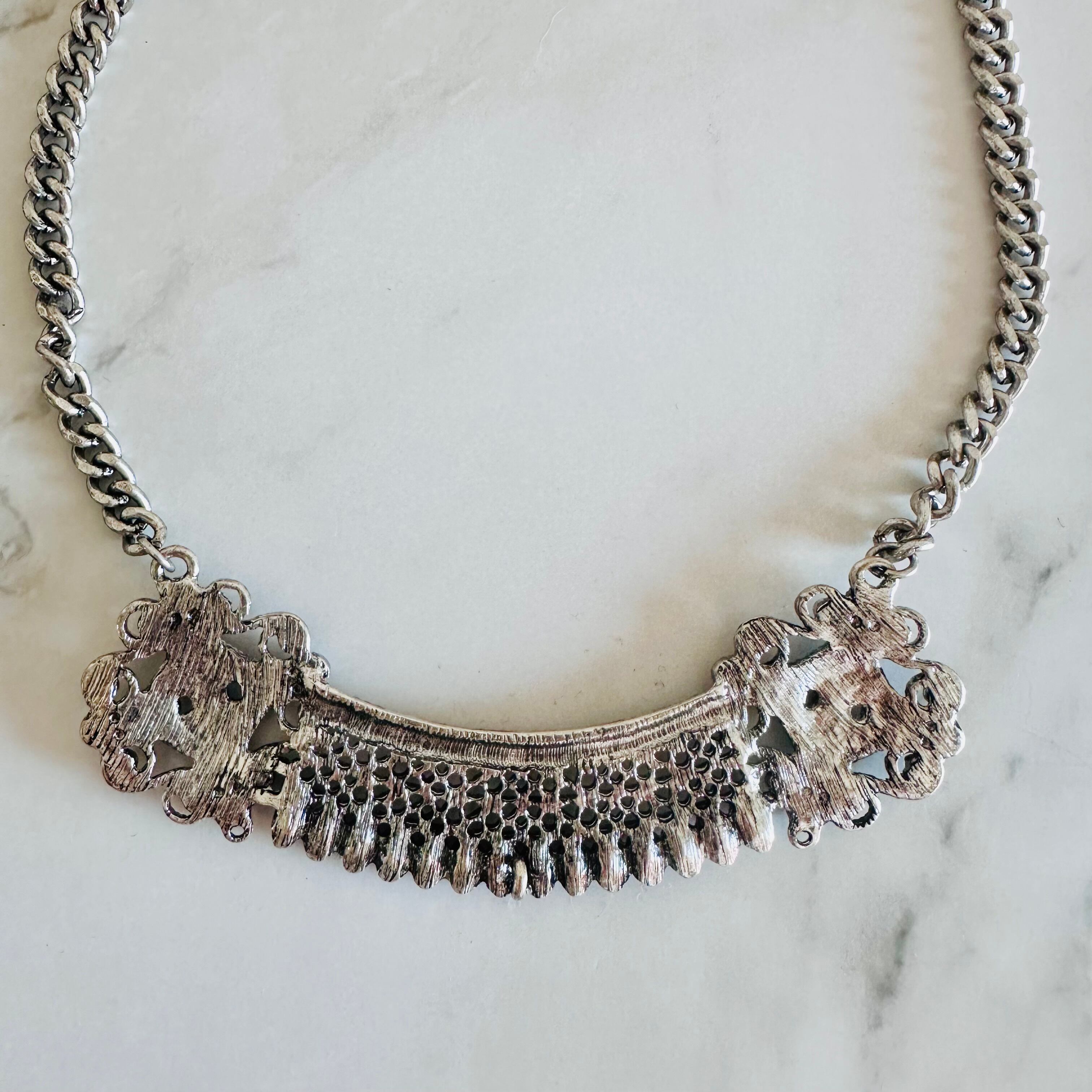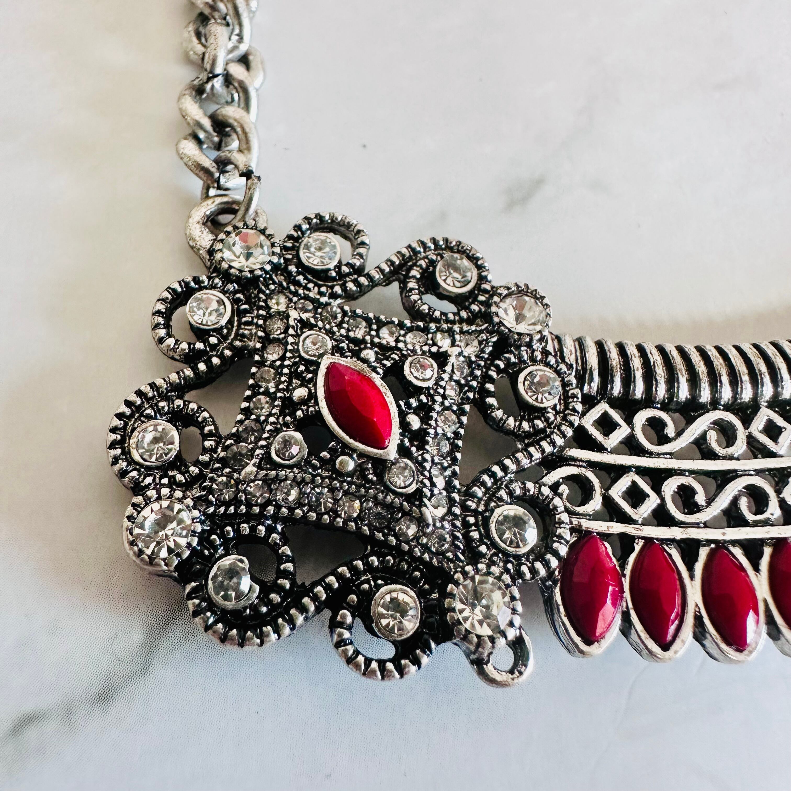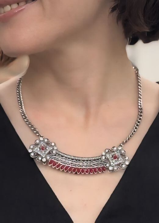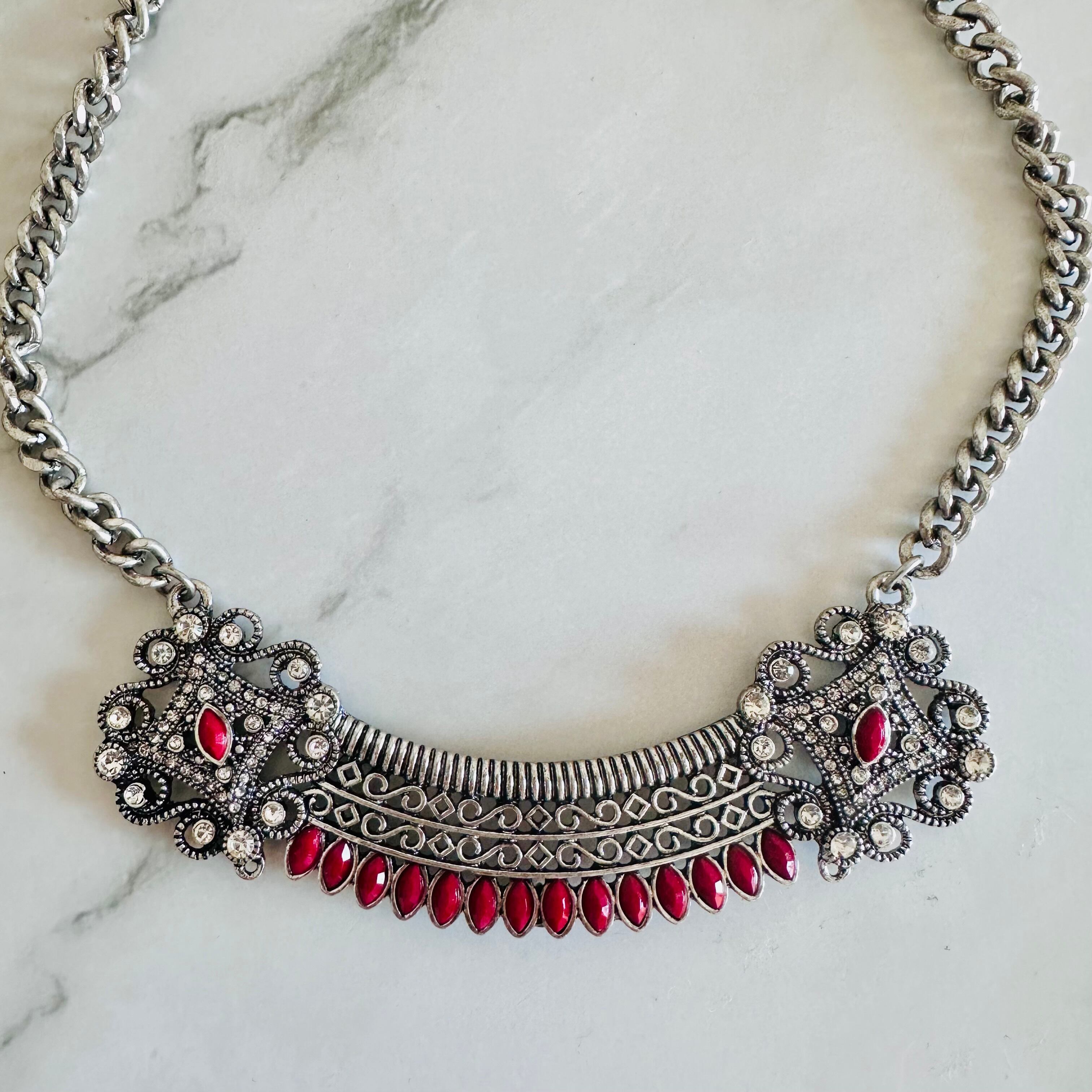 クリア、レッド✖️アンティークシルバーカラーのネックレスです。