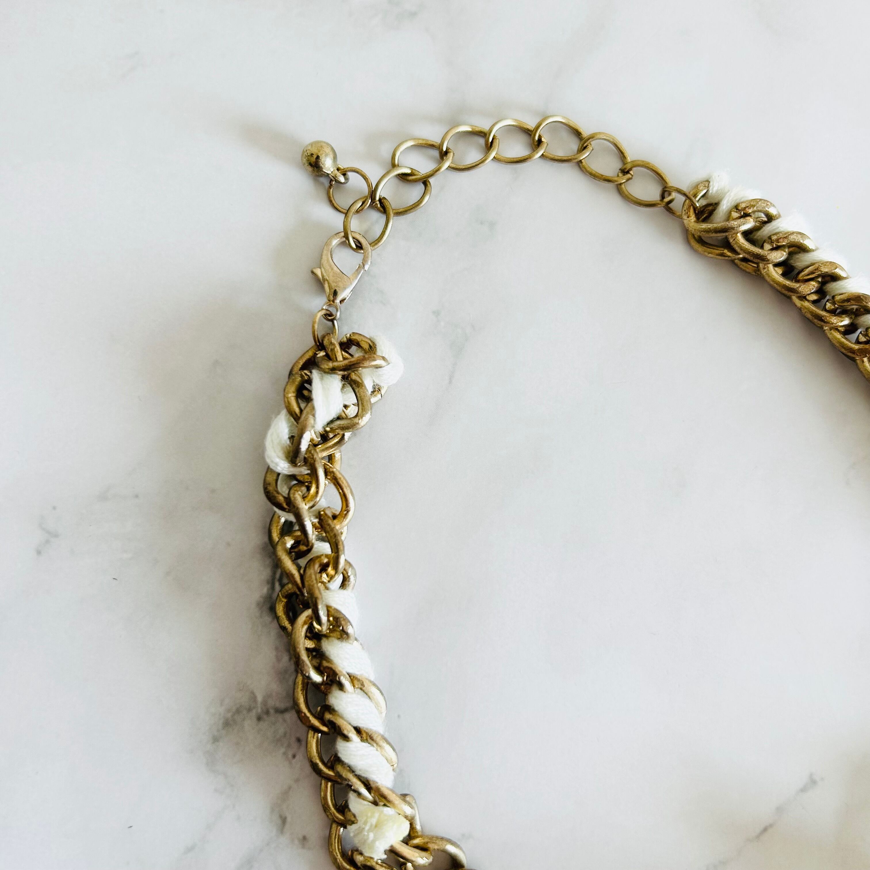 チェーンにはアイボリーの糸を編み込み、より特別な印象に仕上げました♡