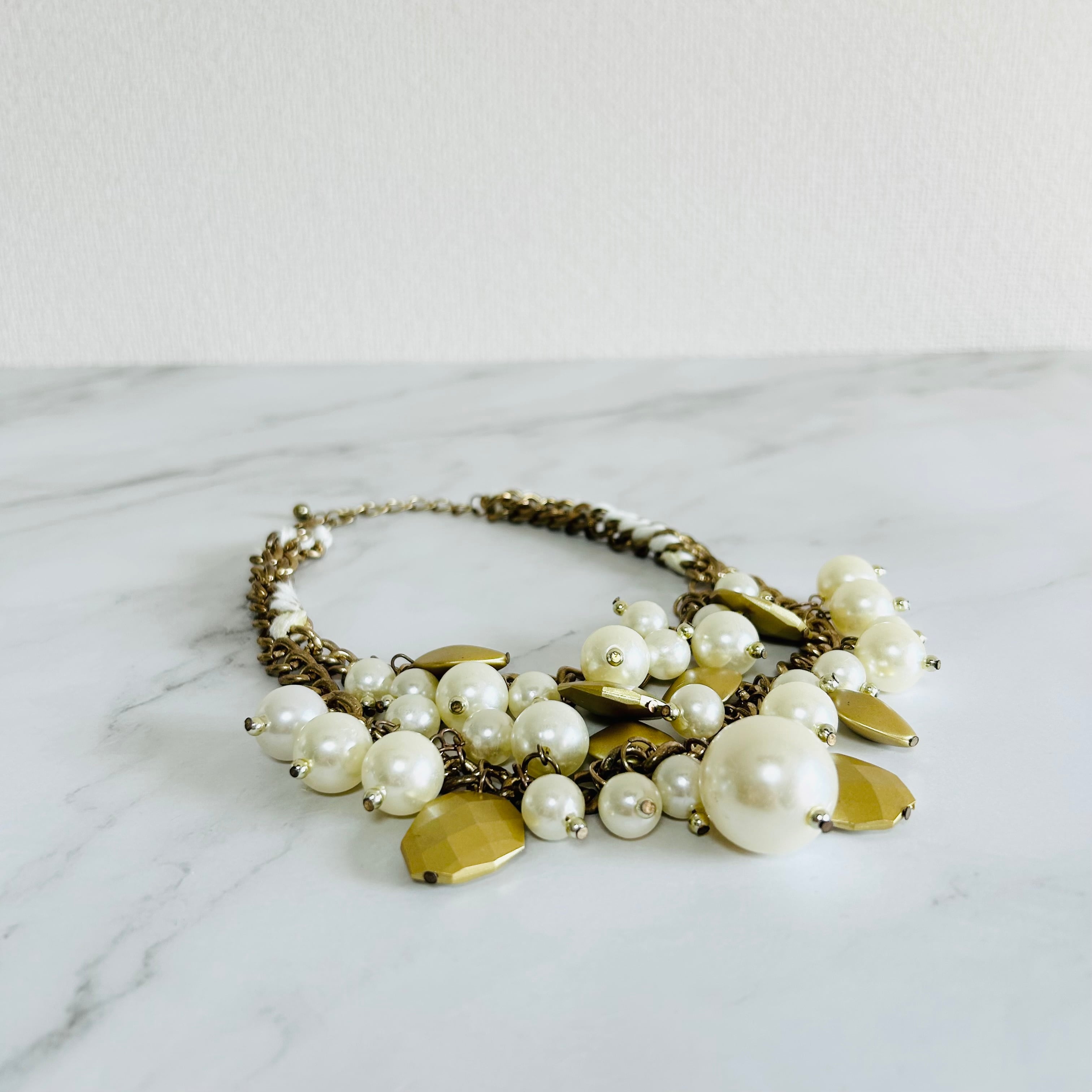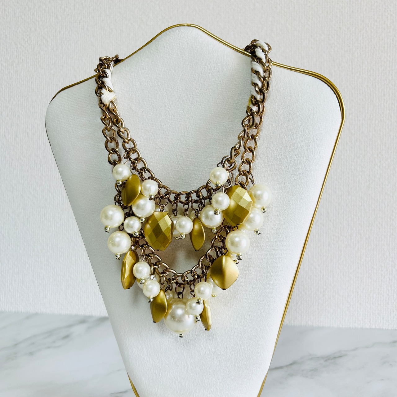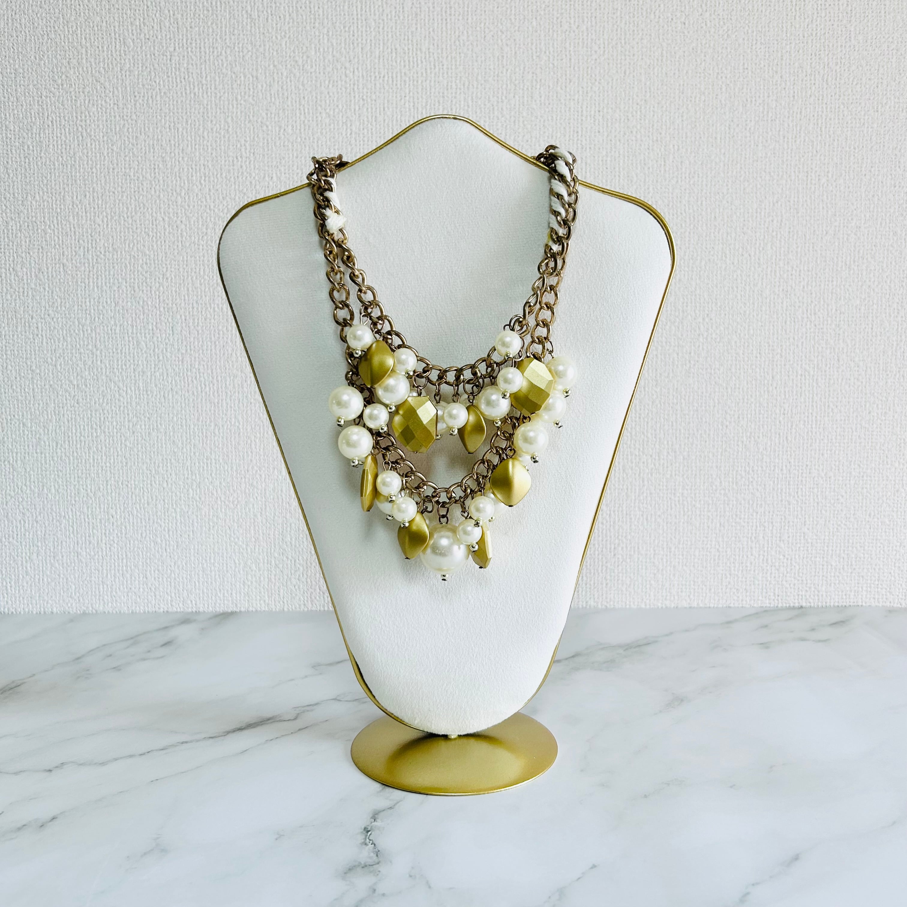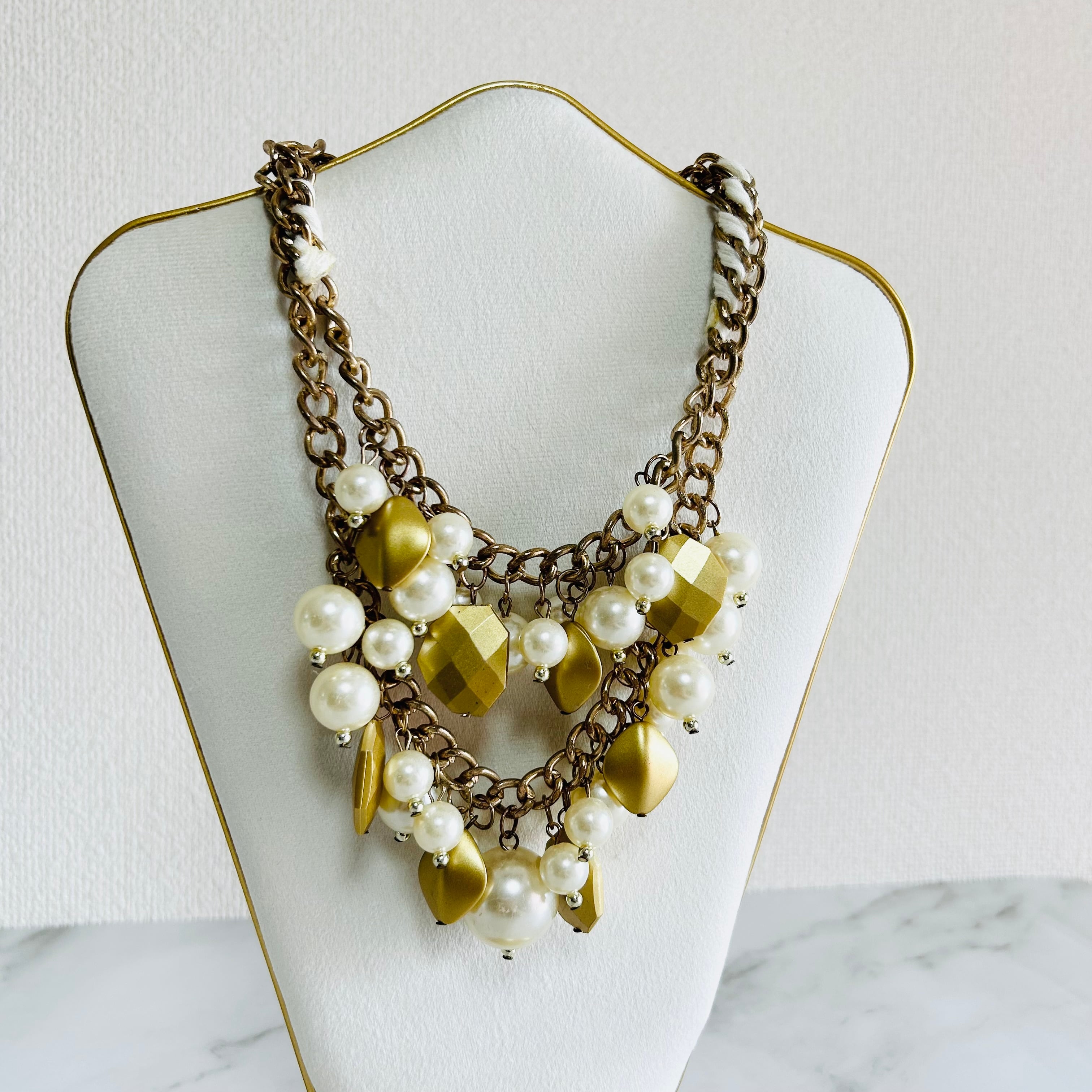 パール、マットゴールド✖️アンティークゴールドカラーのネックレスです。
