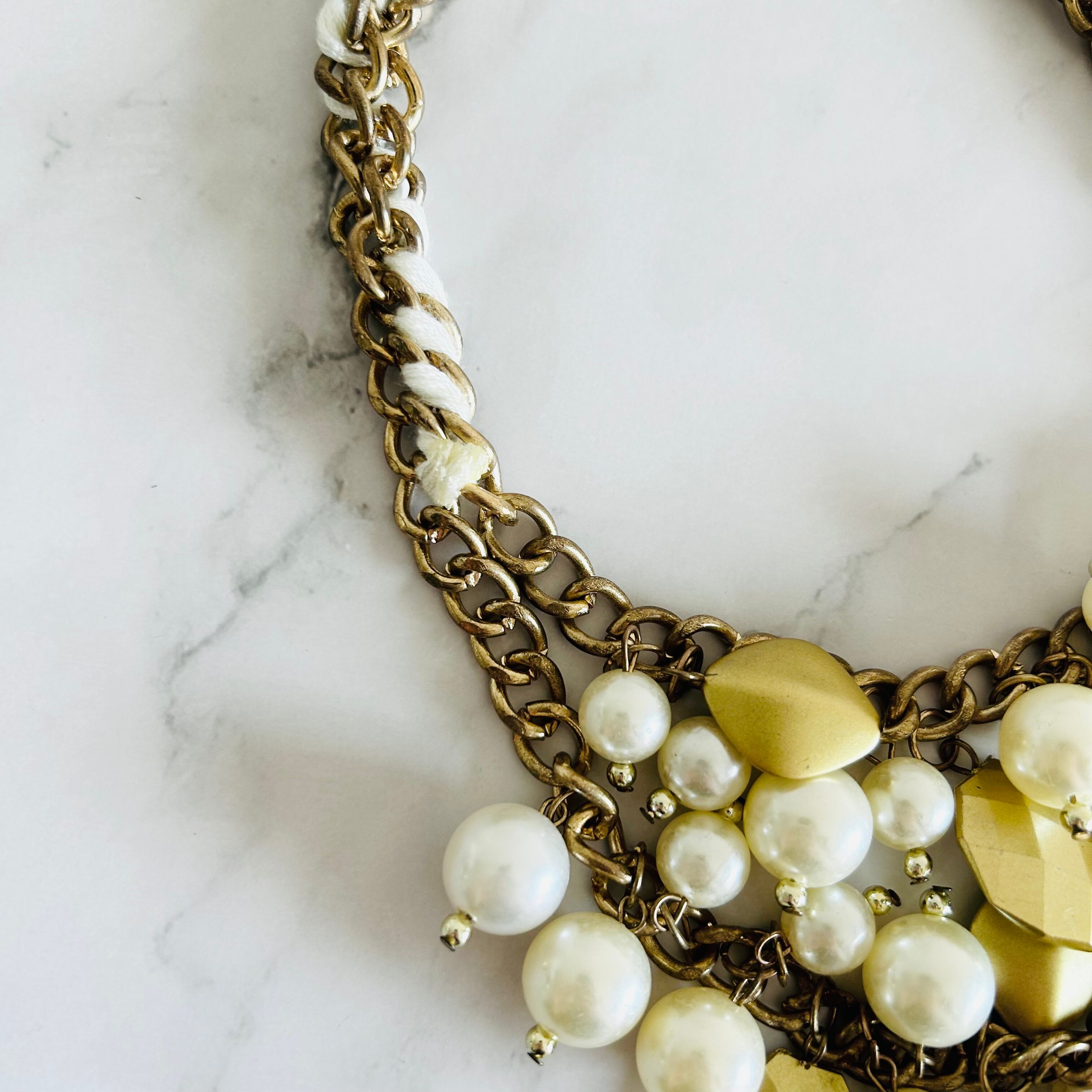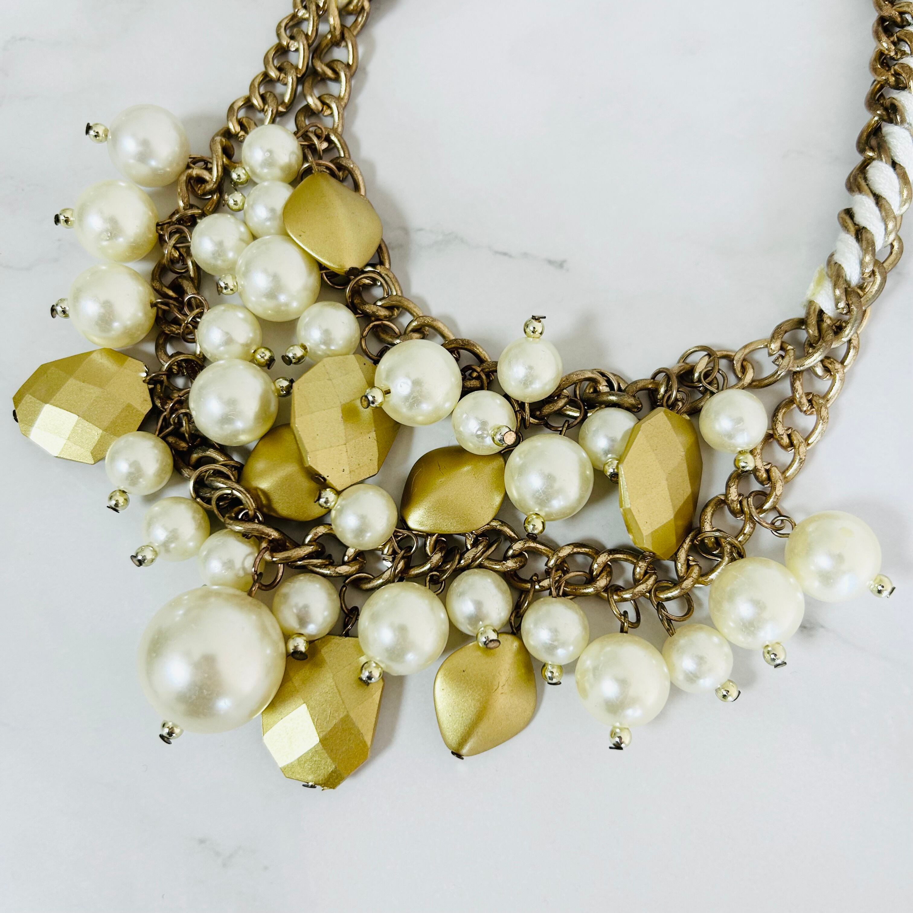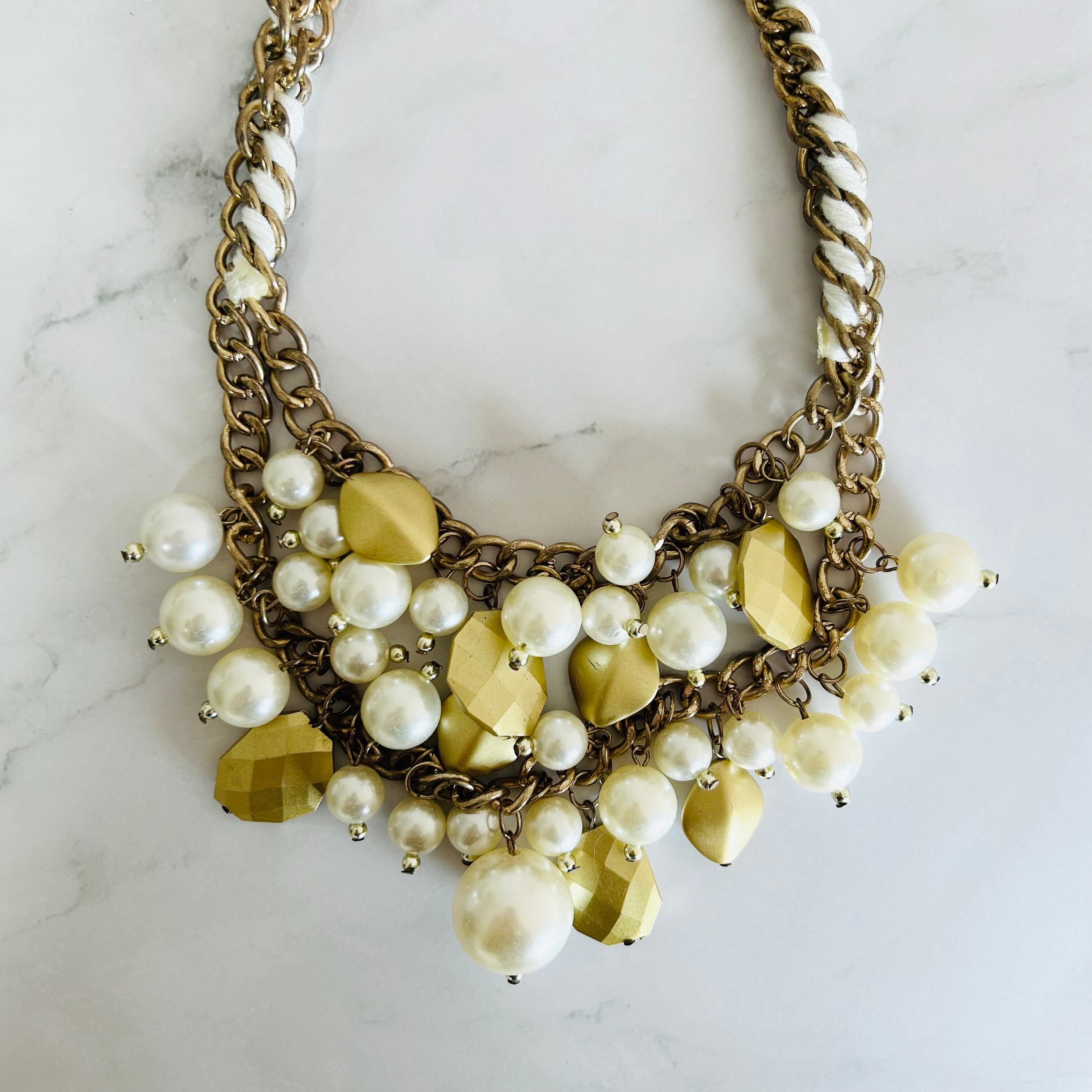 パールとマットな質感のゴールドパーツをアンティークなチャンキーチェーンと組み合わせたデザインです✨