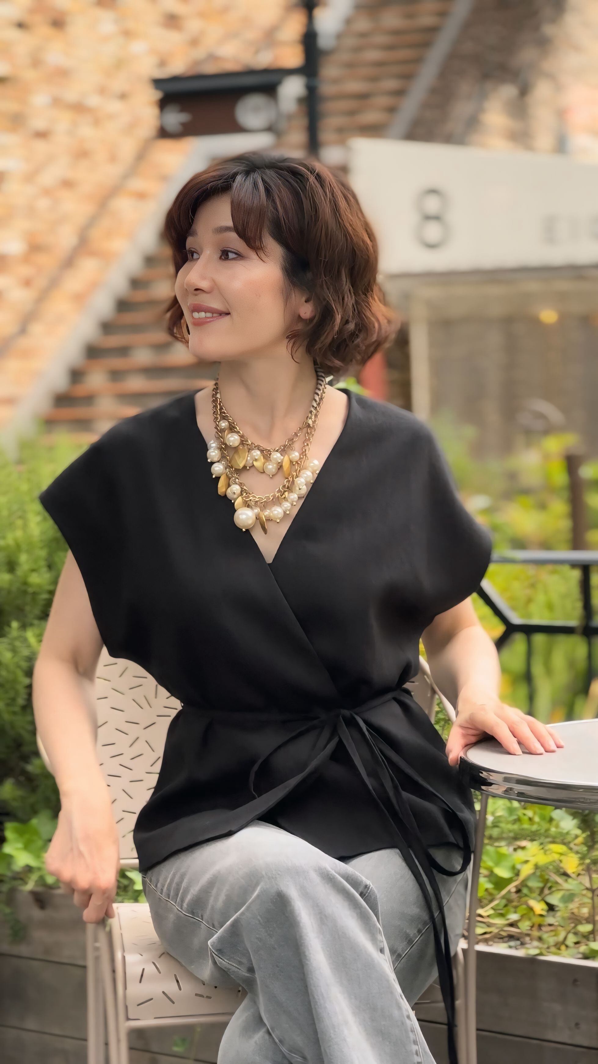 クルーネックのシンプルなTシャツやニットはもちろん、ワンピースに合わせてもとても素敵です☆
