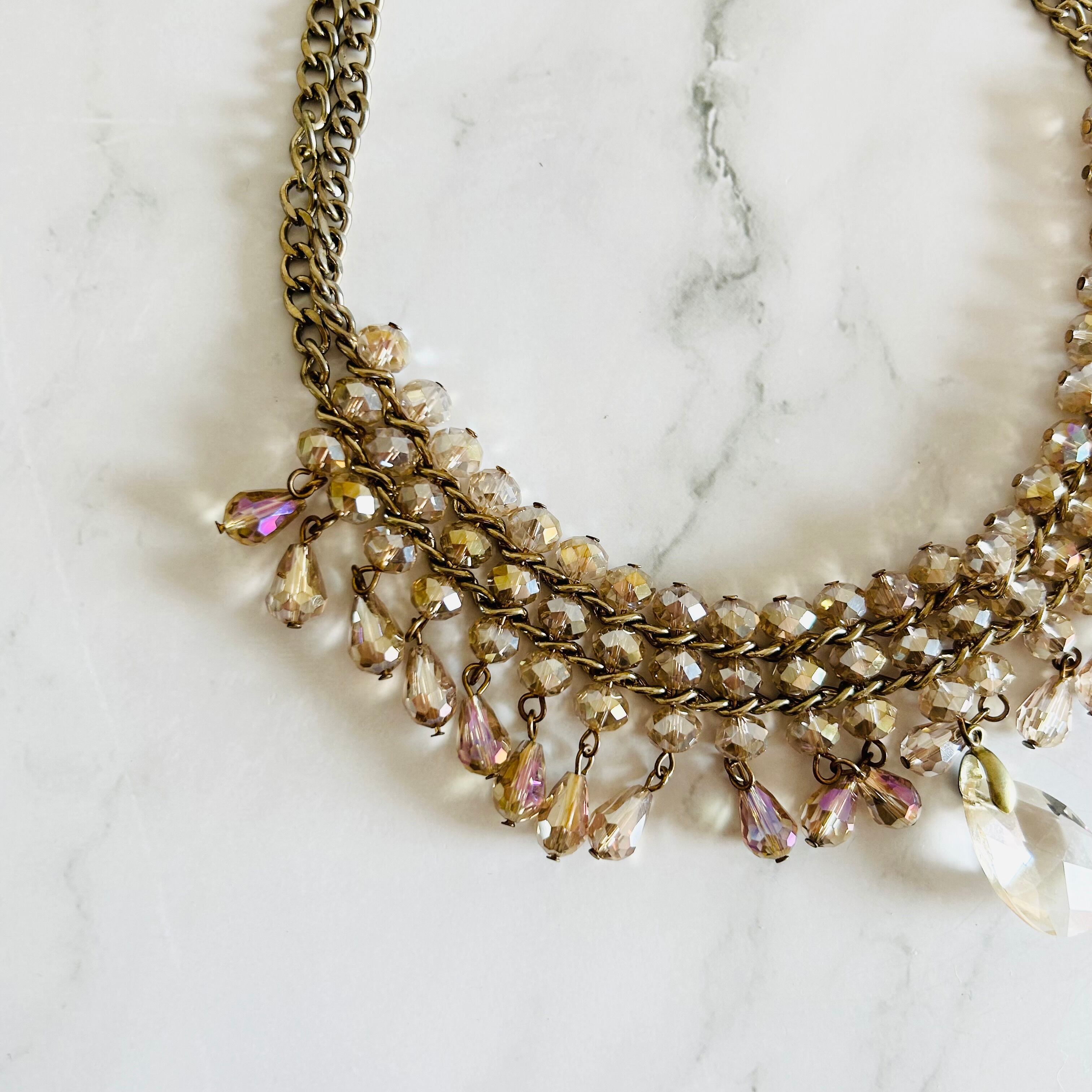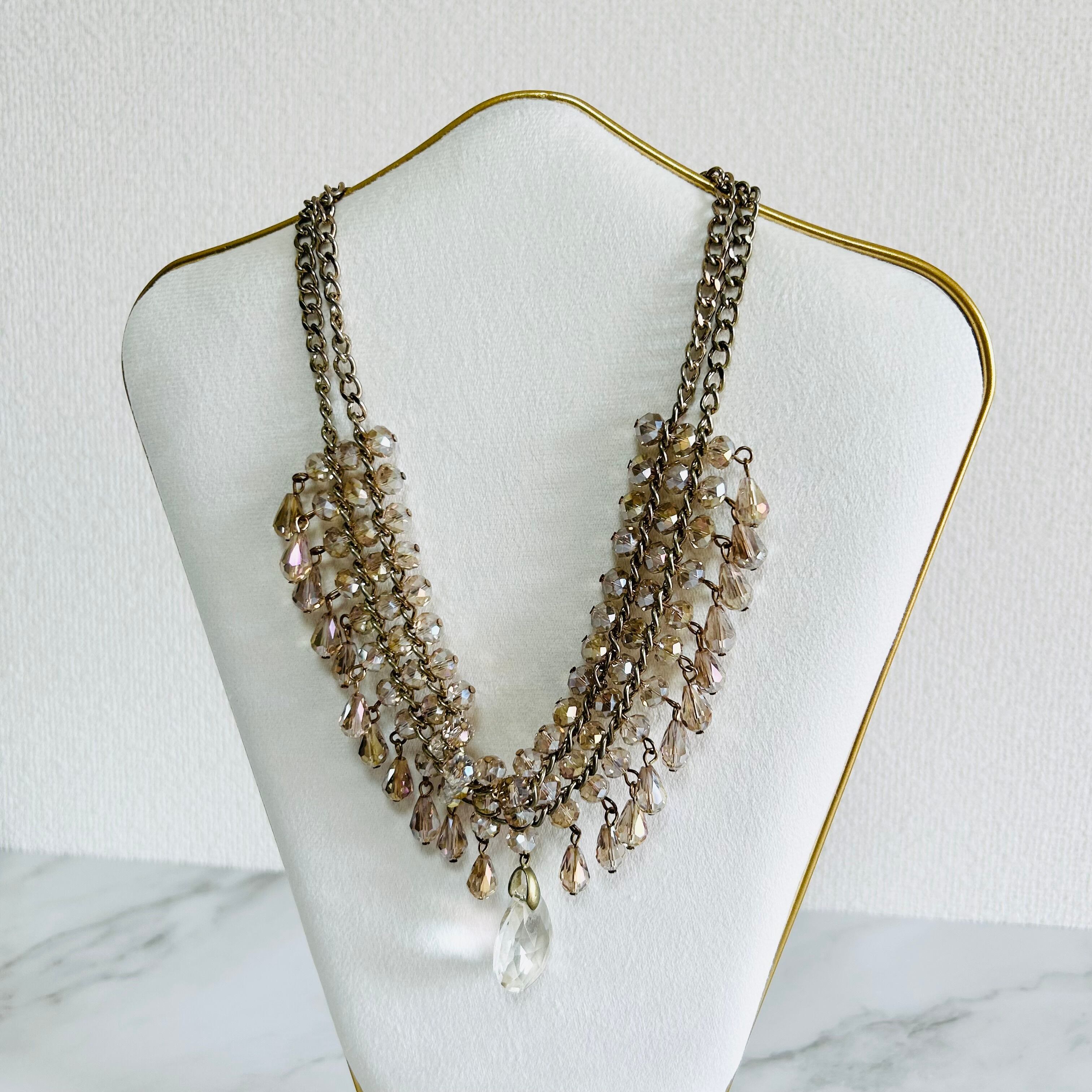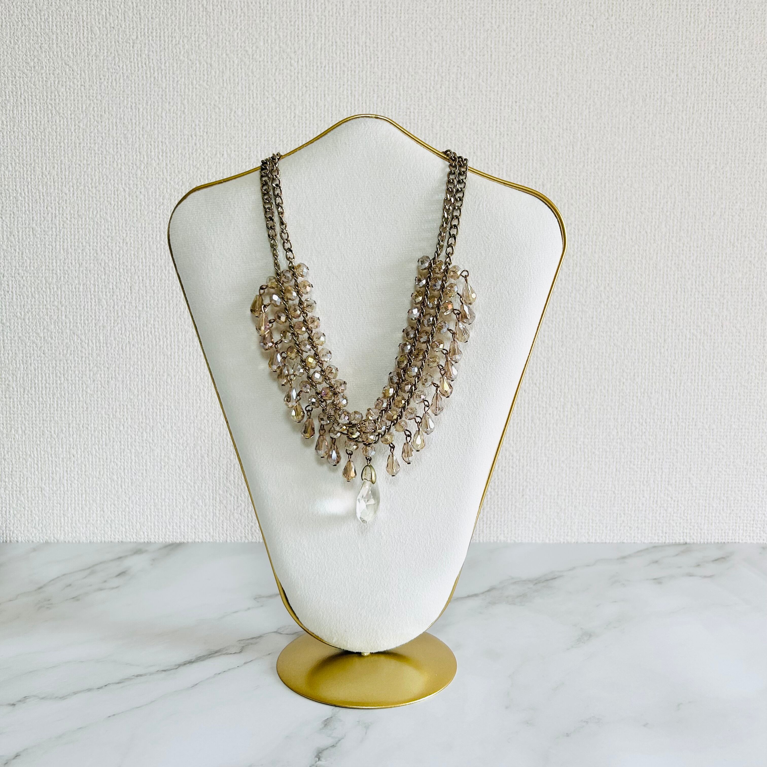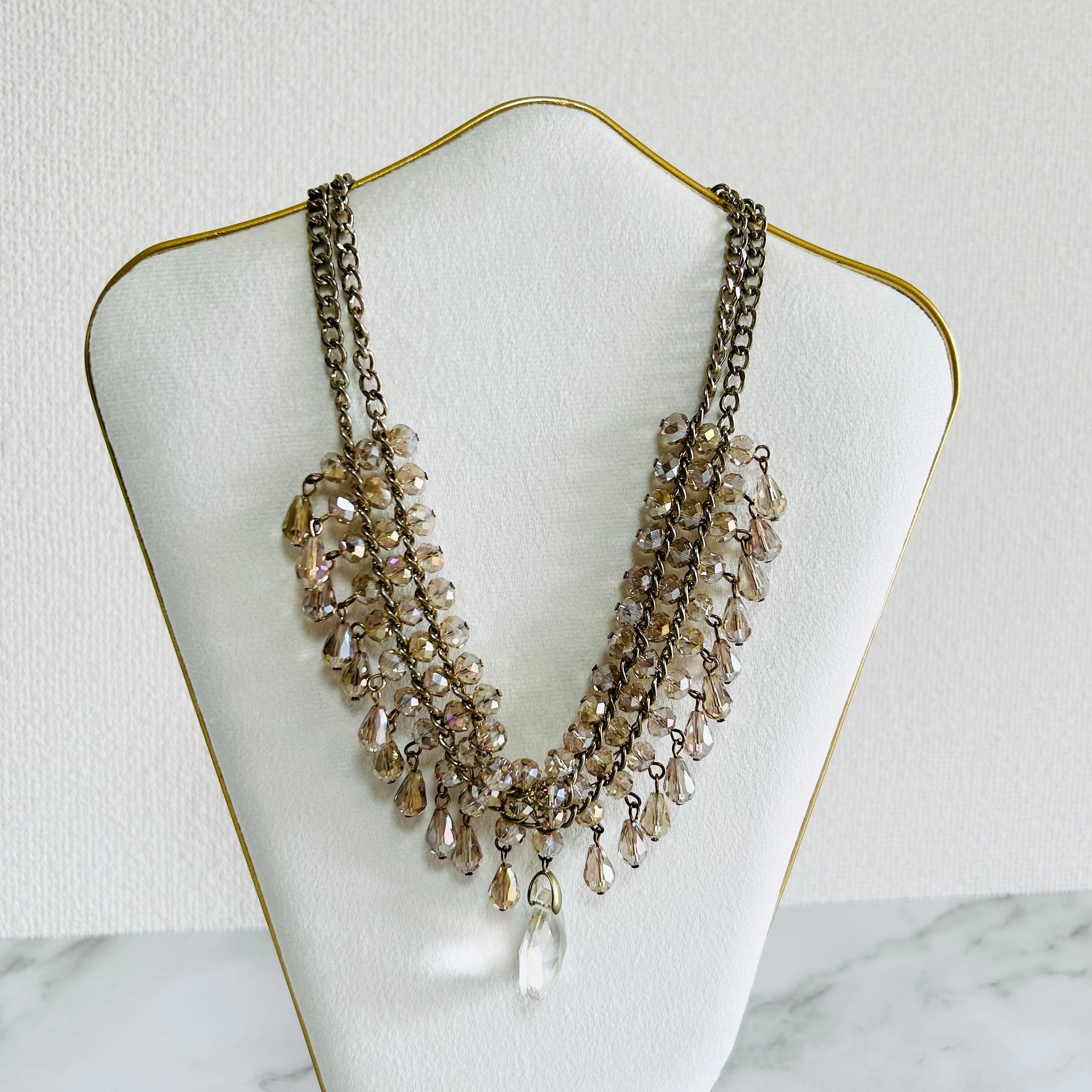 ベージュ系オーロラカラー✖️アンティークゴールドカラーのネックレスです。