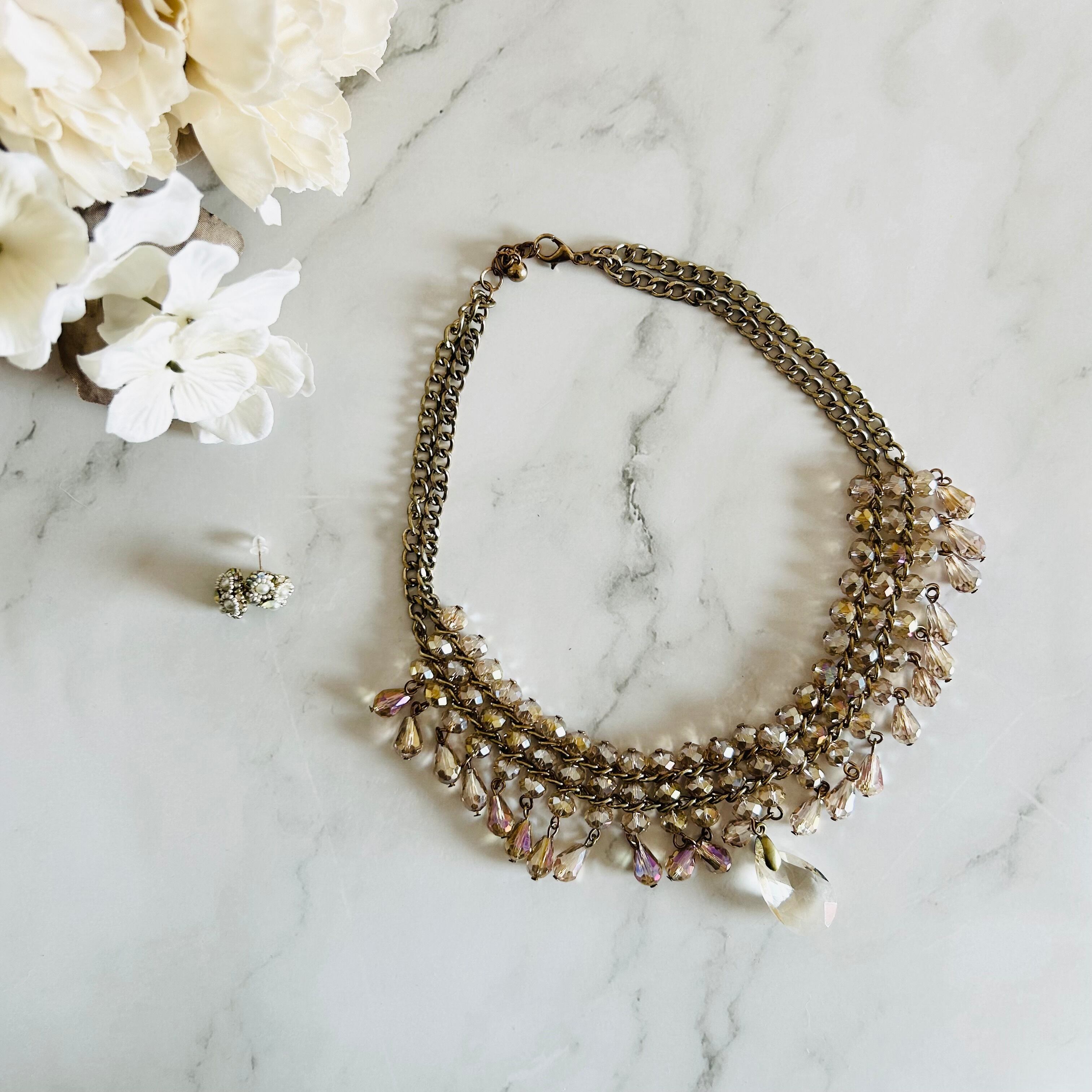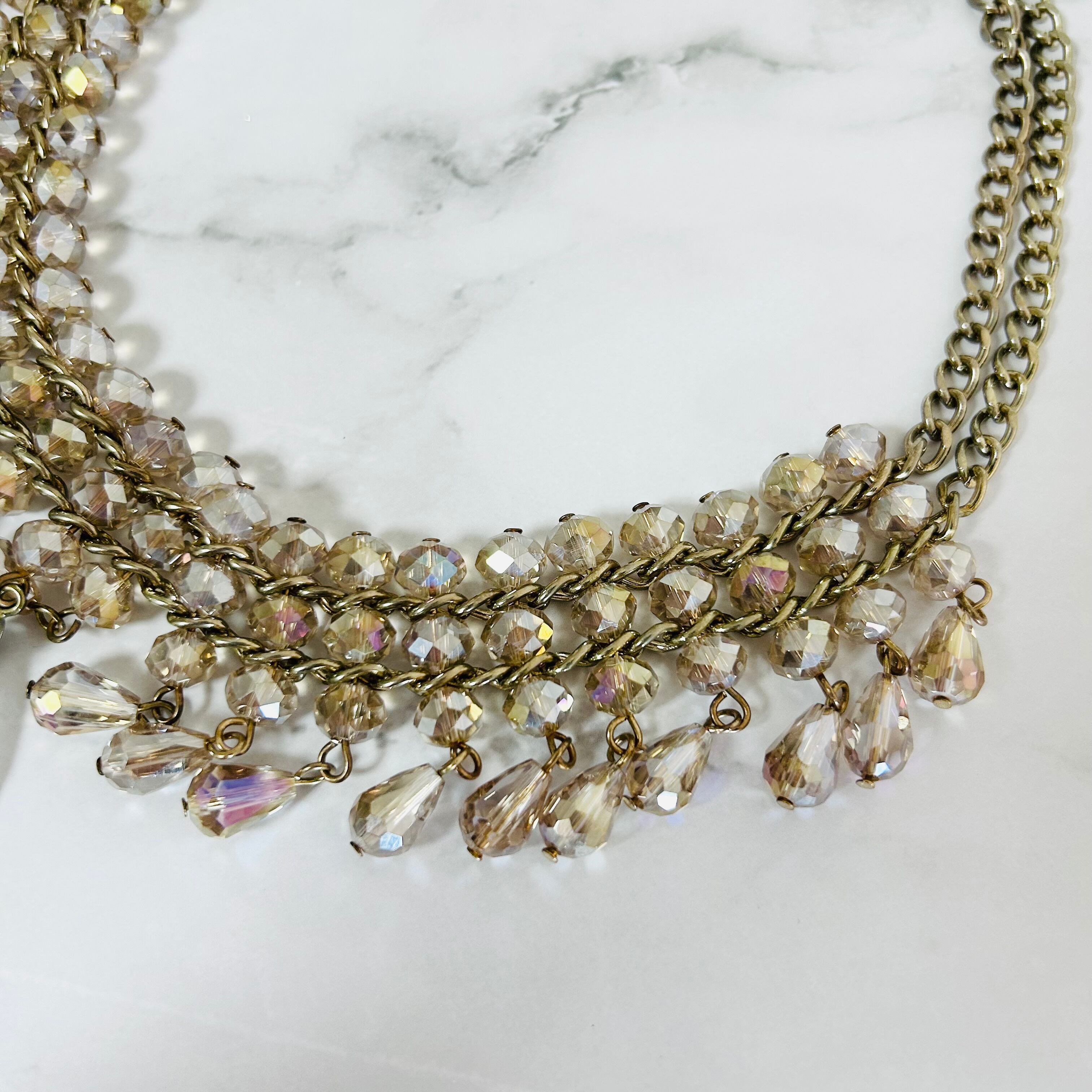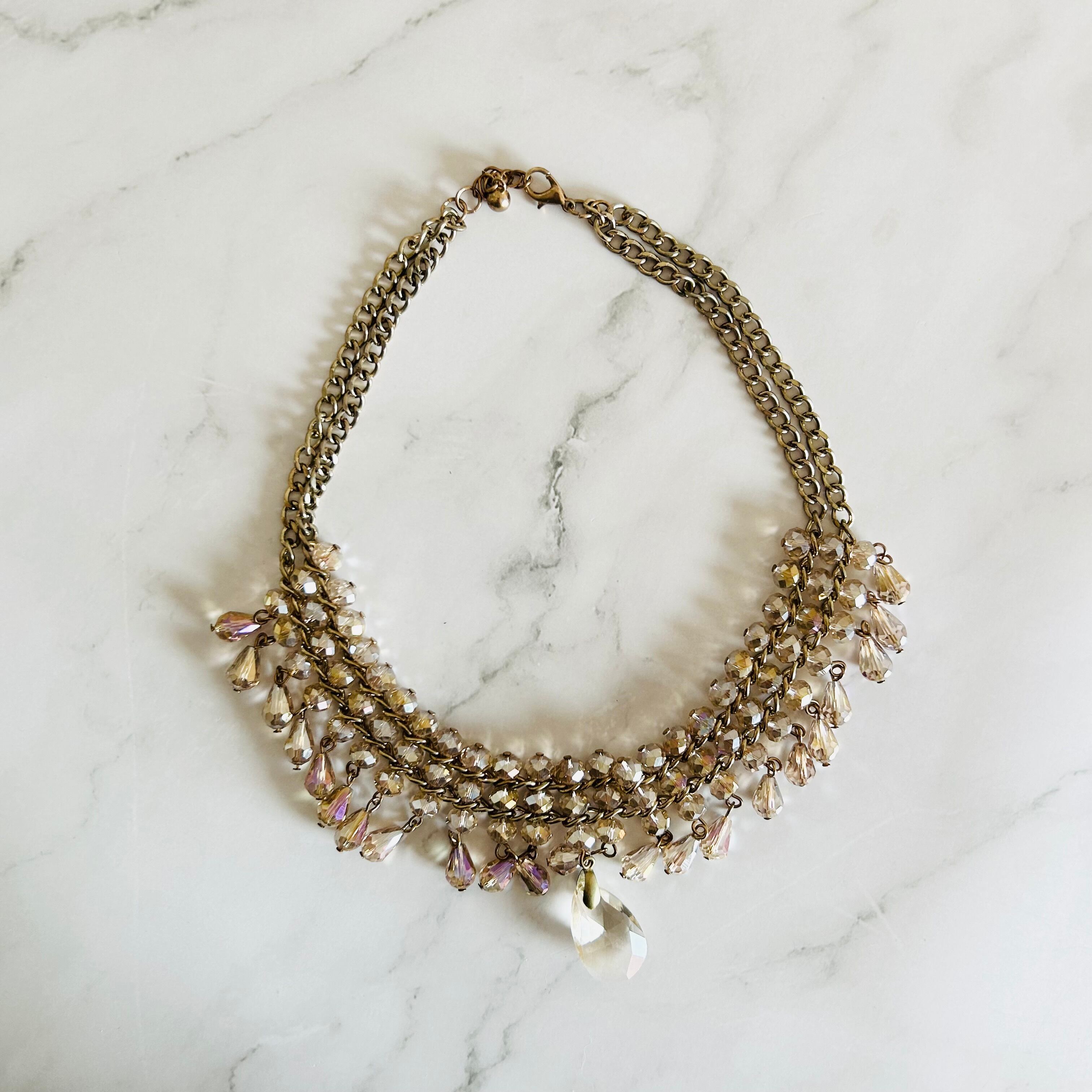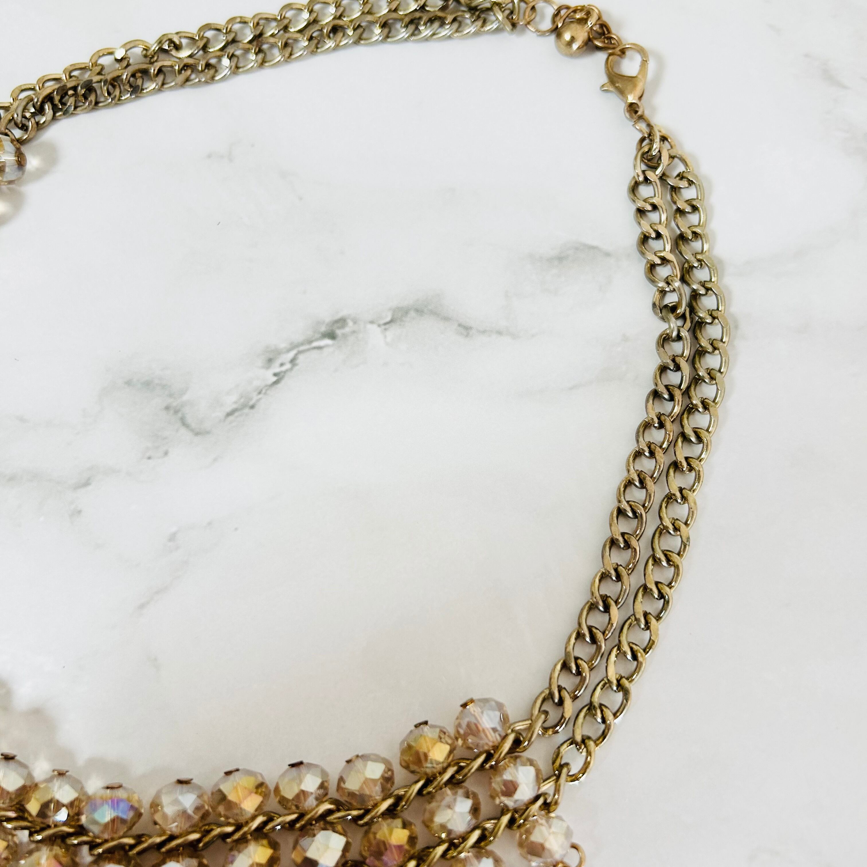 ベージュ系オーロラカラー✖️アンティークゴールドカラーのネックレスです。