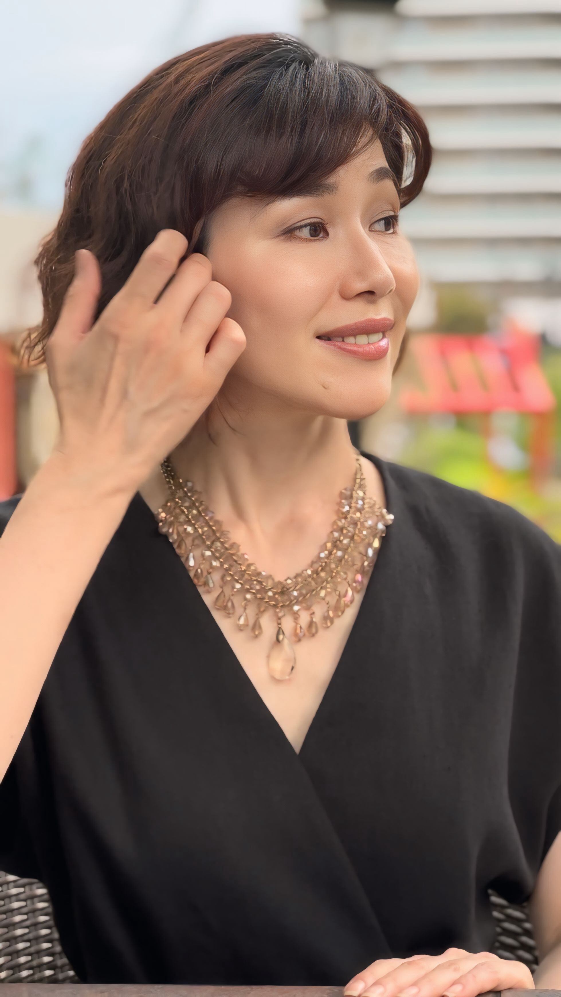 光が当たる度にさまざまな表情で輝くパーツは、まるでオーラが輝いているかのようです♡