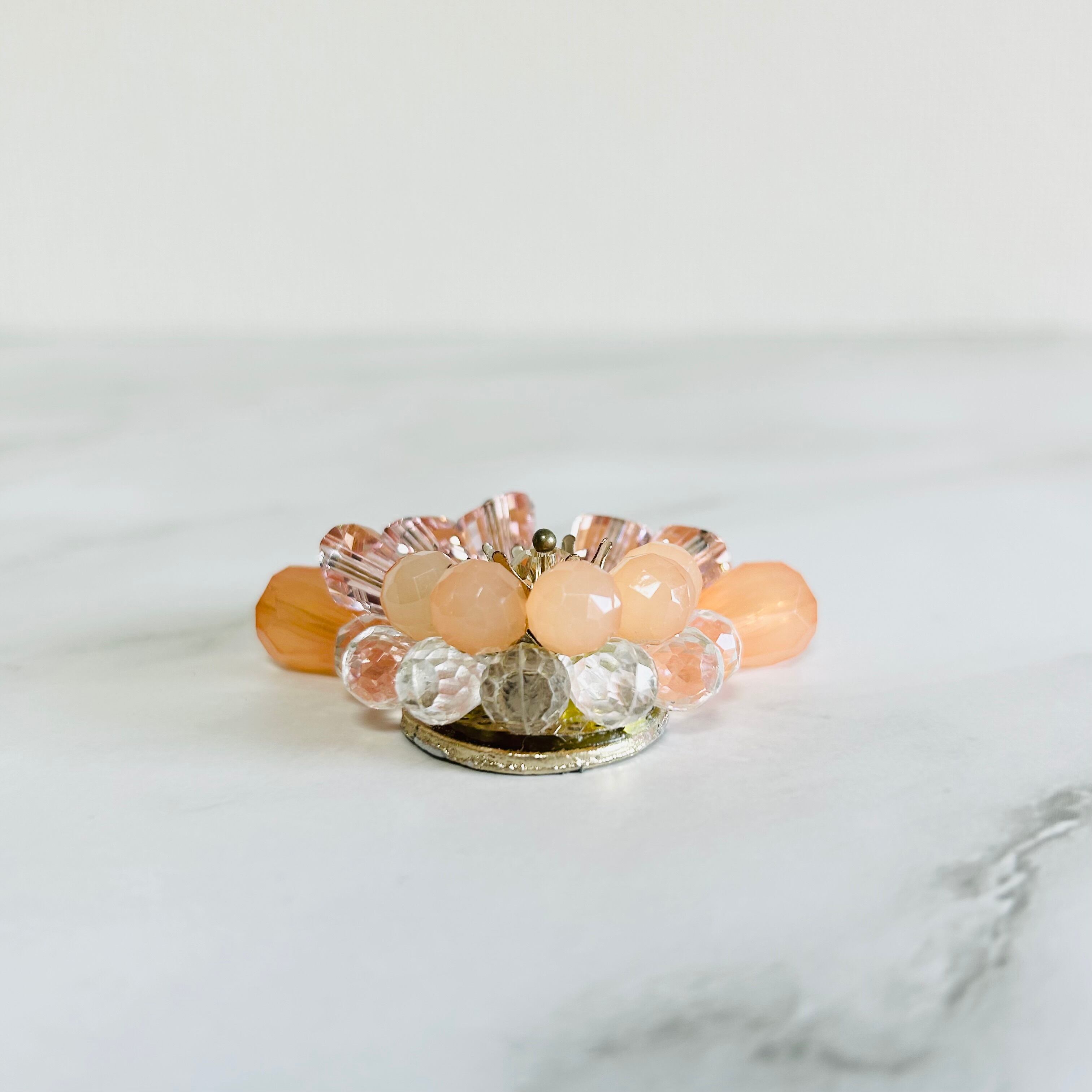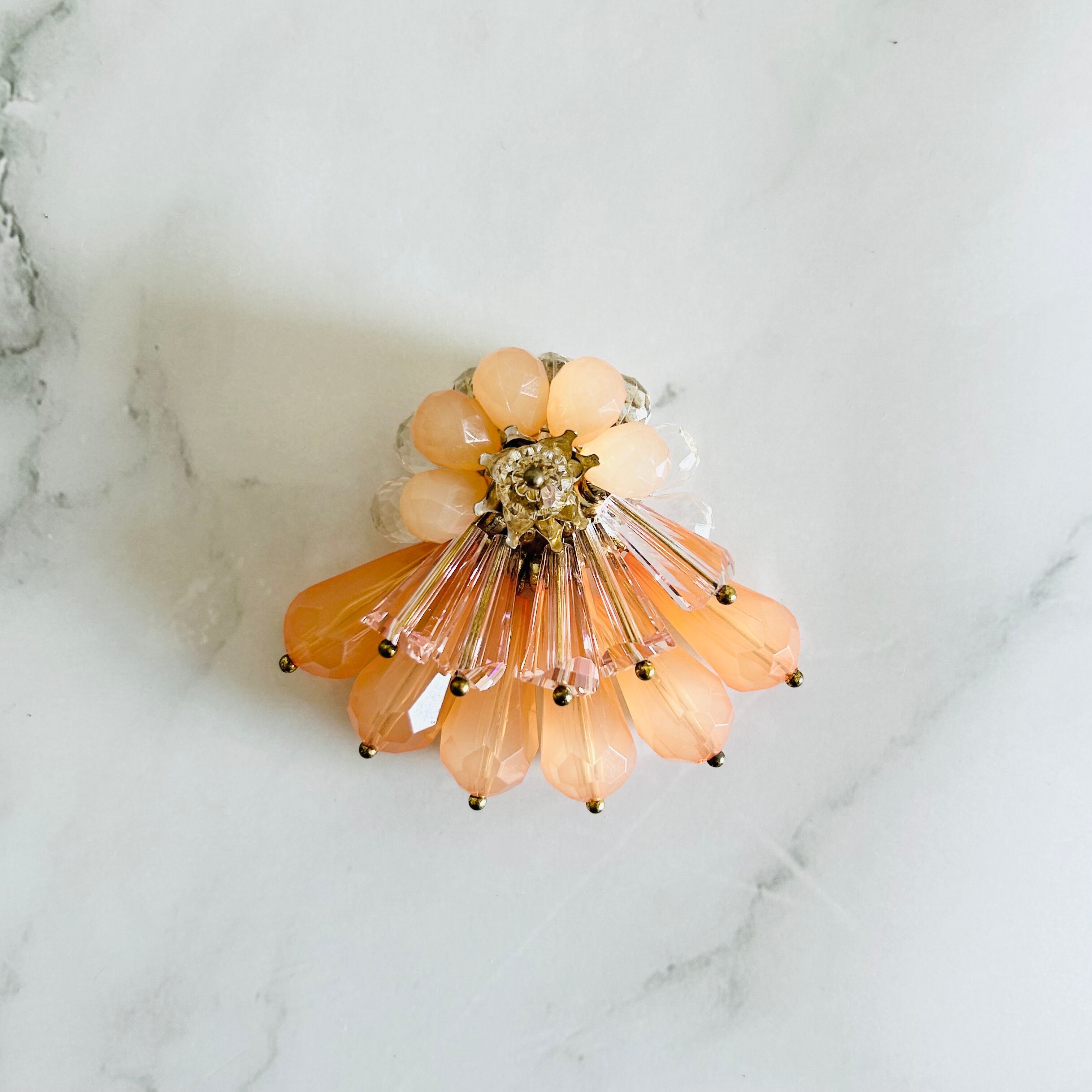 サーモンピンク✖️クリアカラー✖️アンティークゴールドカラーのブローチです。