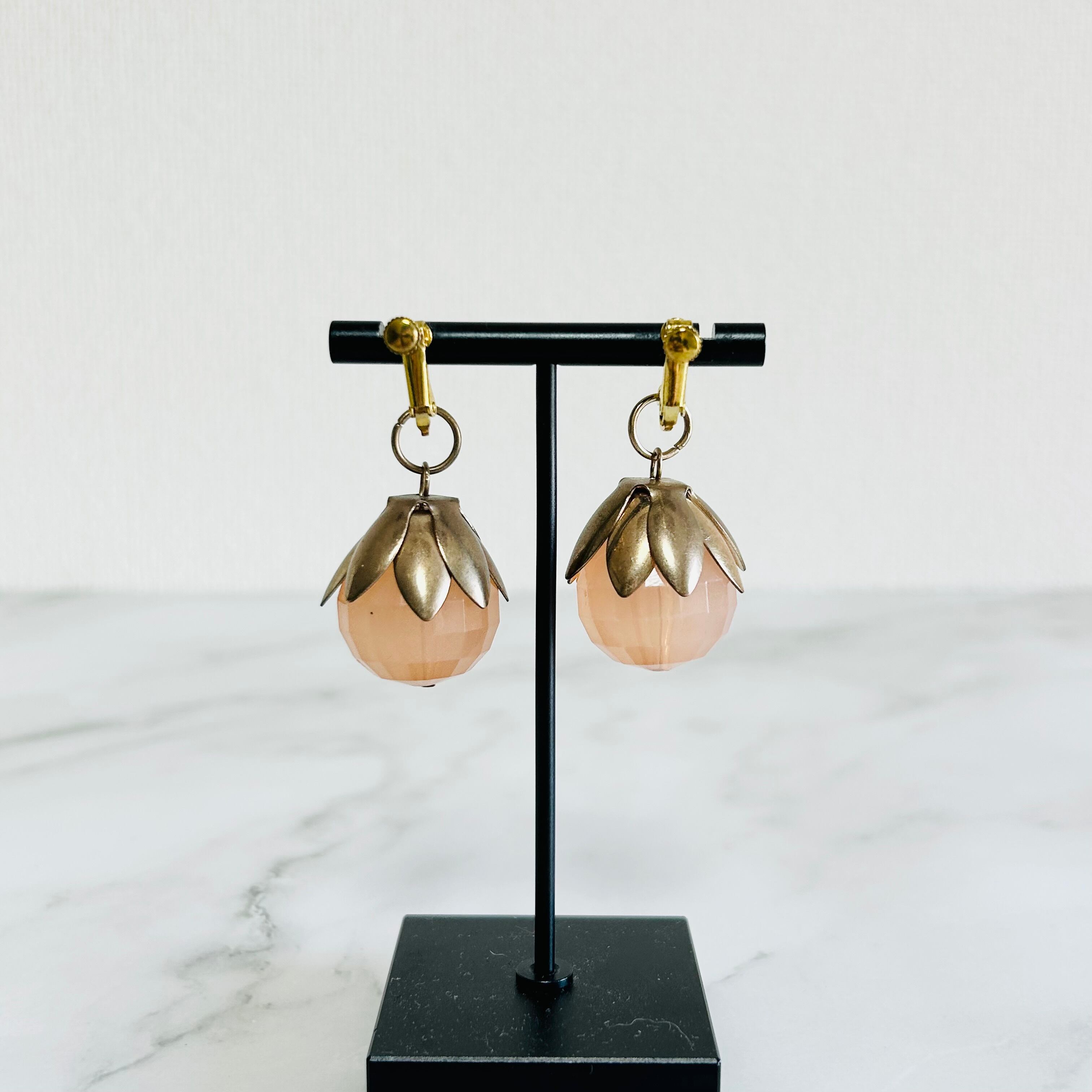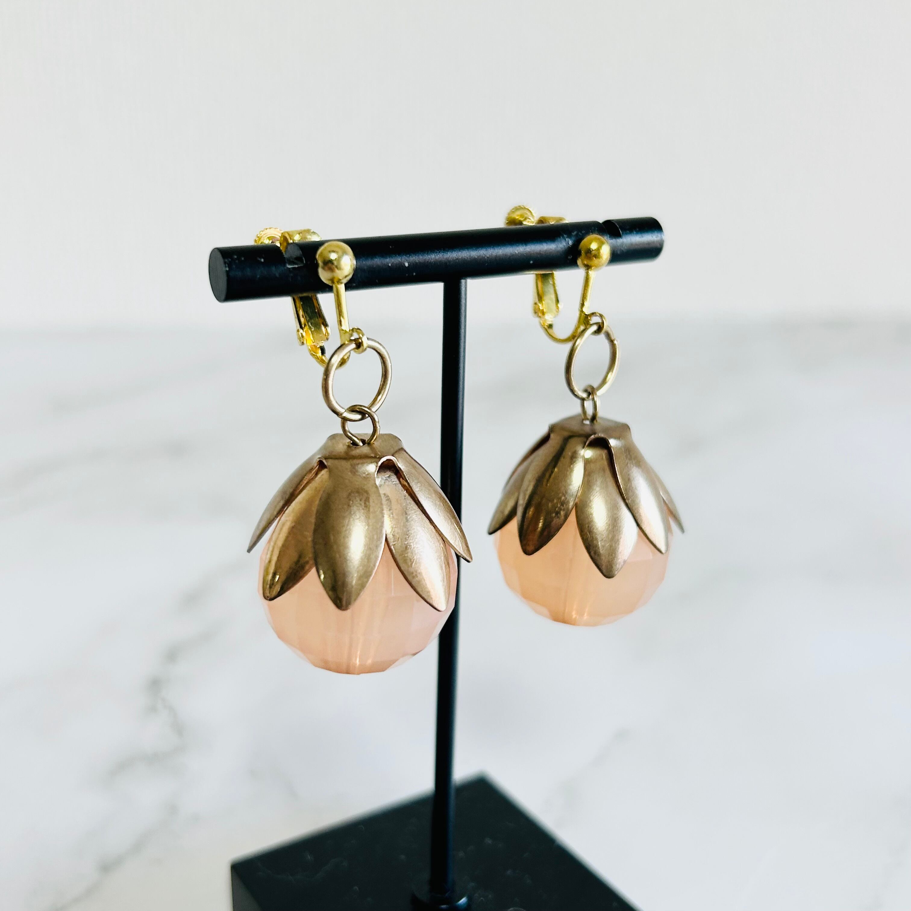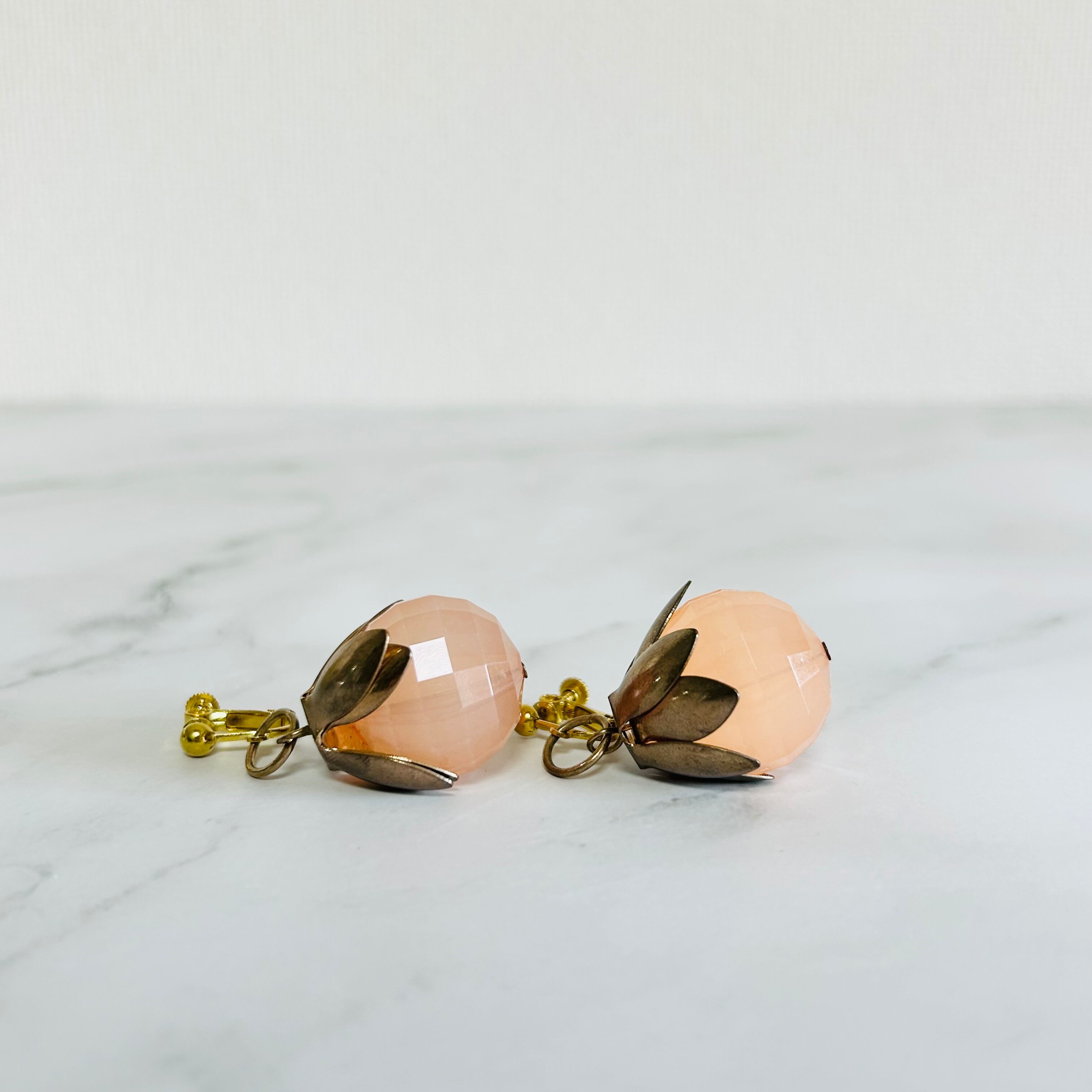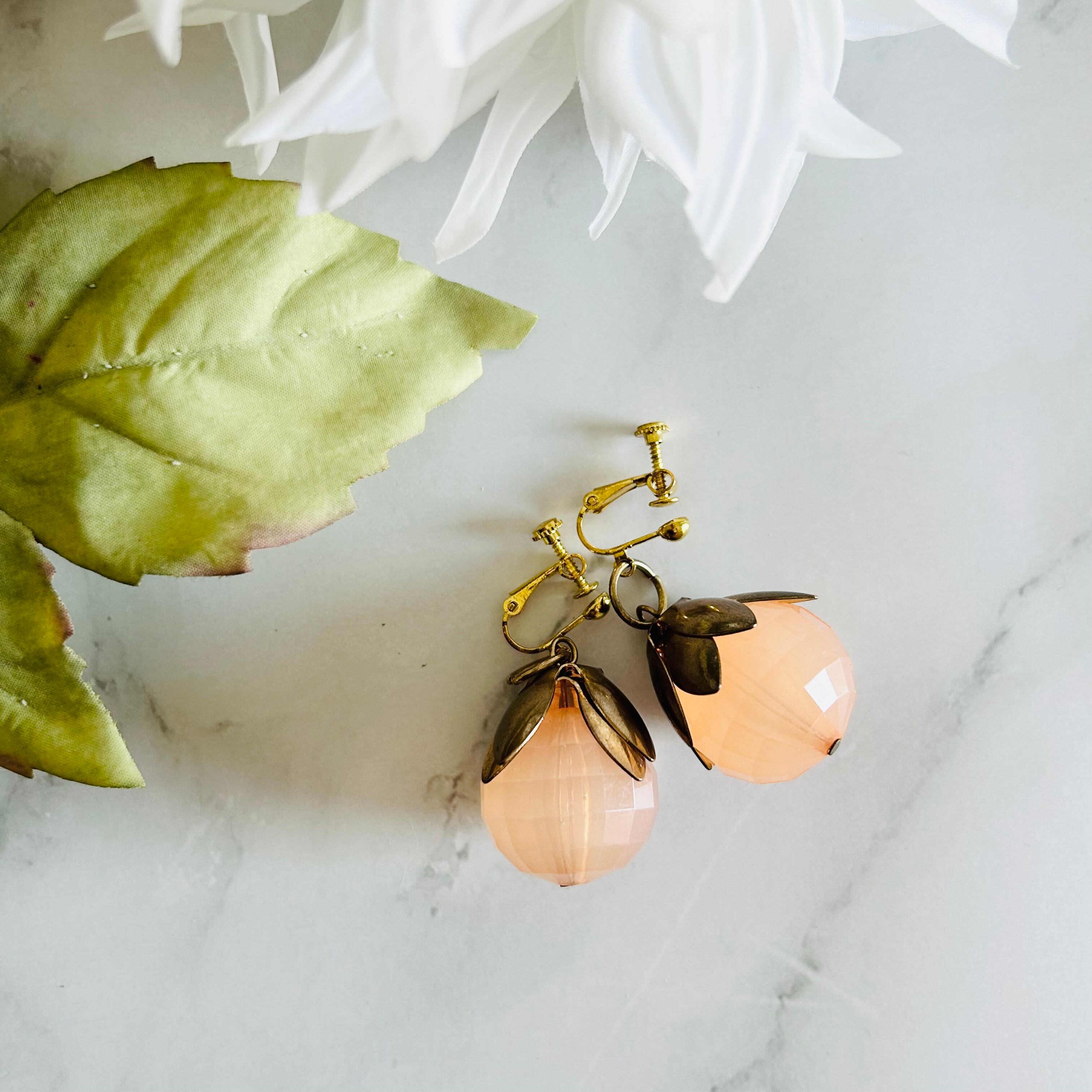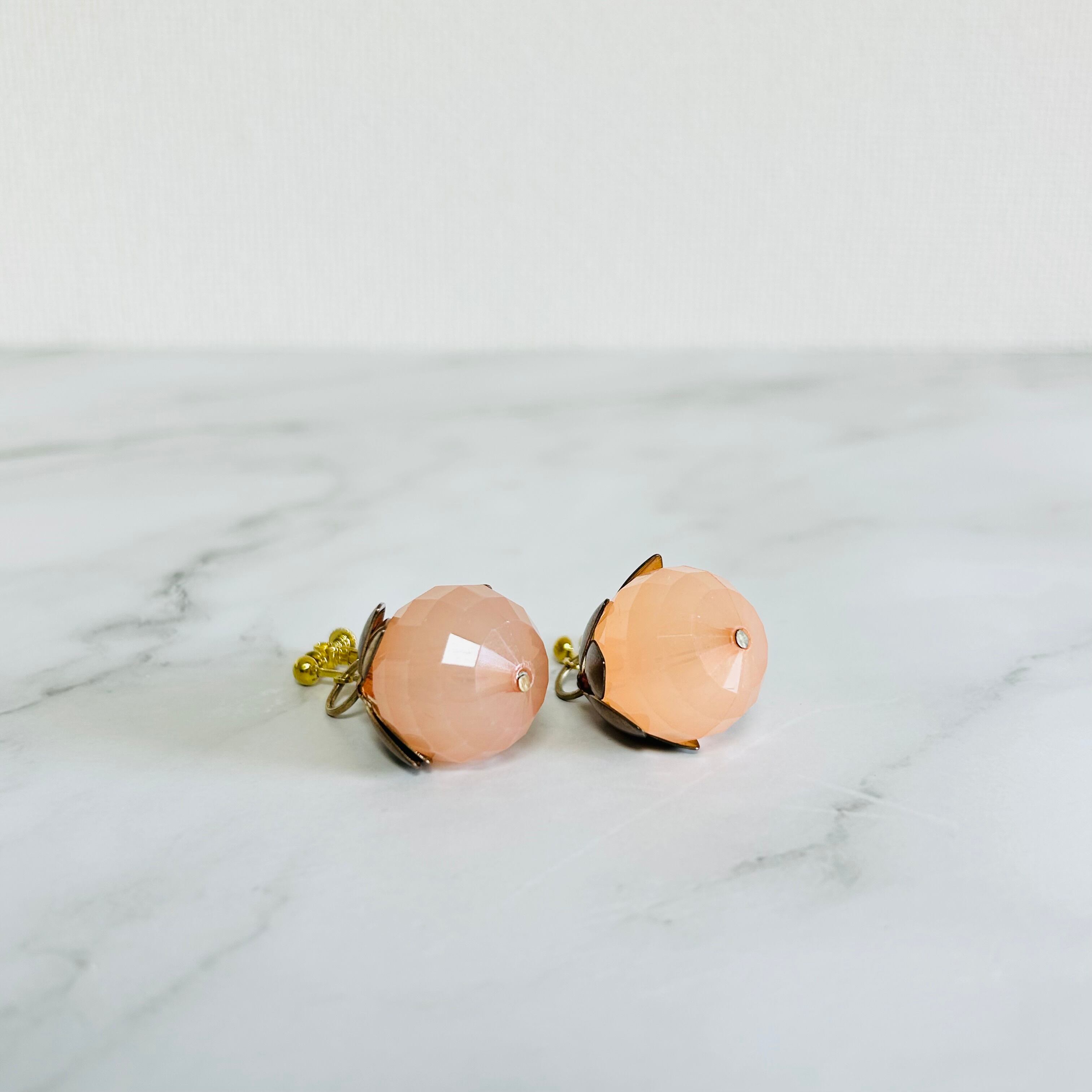 ミルキーオレンジ✖️アンティークゴールドカラーのイヤリングです。