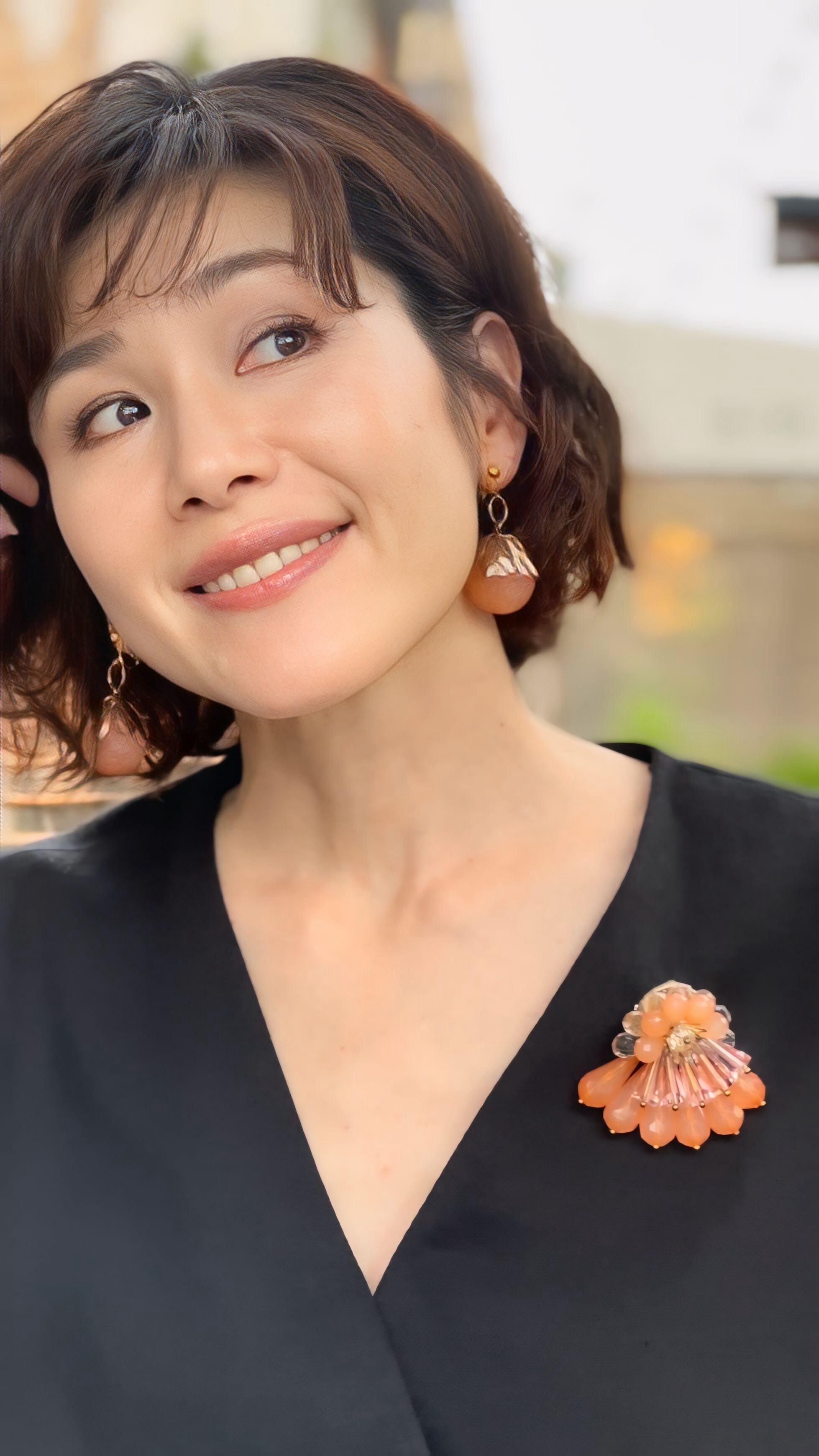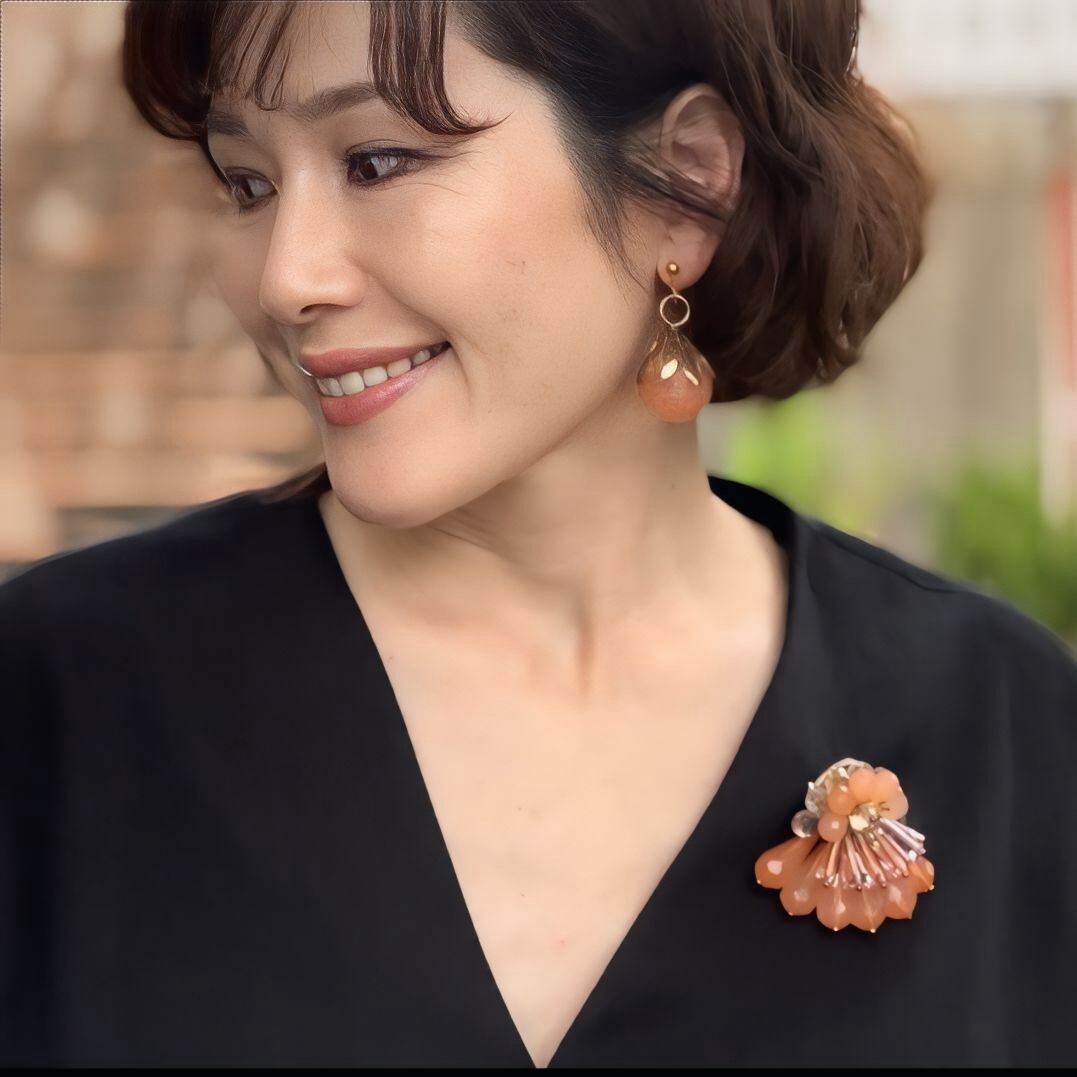 透明感のある淡いオレンジの色合いはお顔まわりに若々しく優しい印象を与えてくれます。