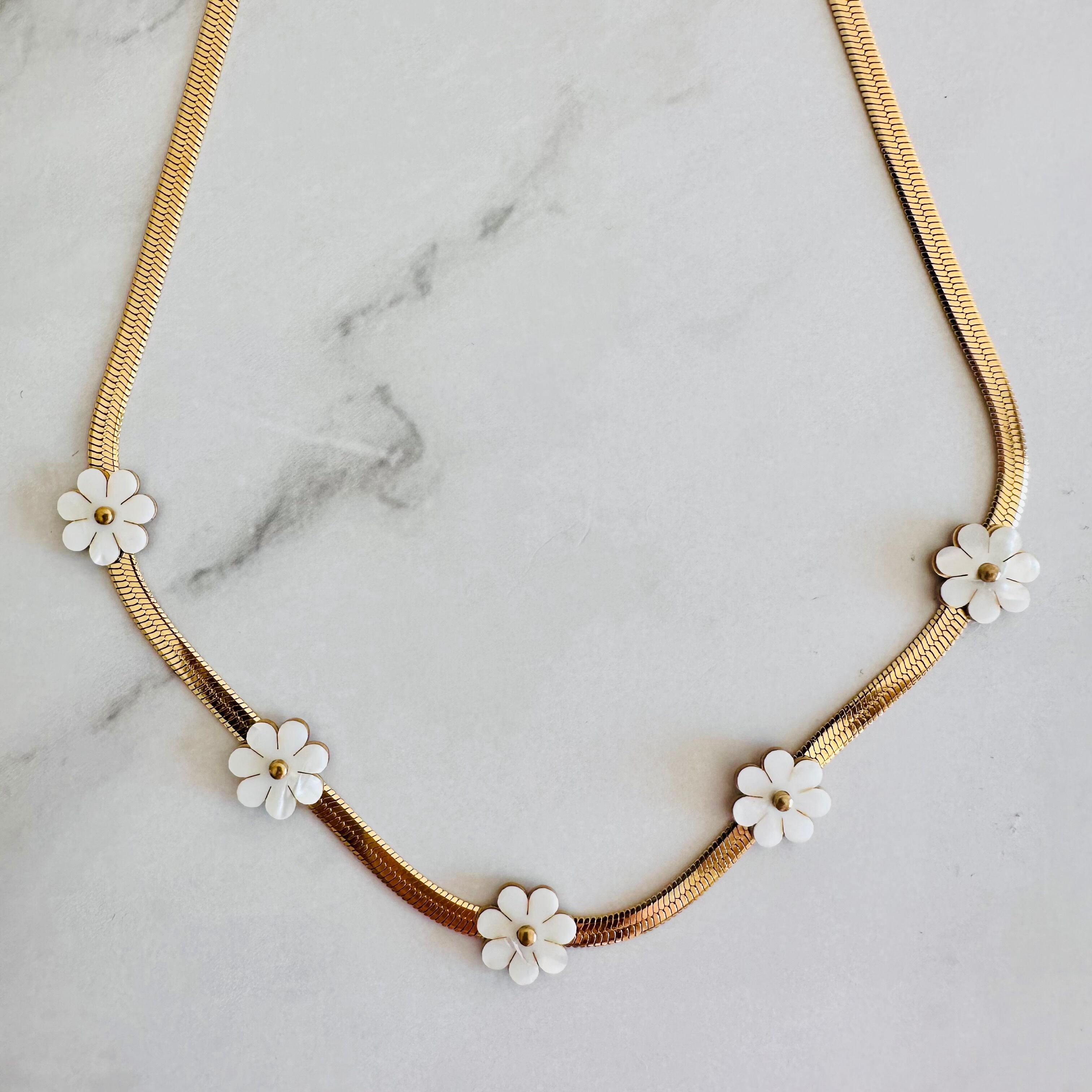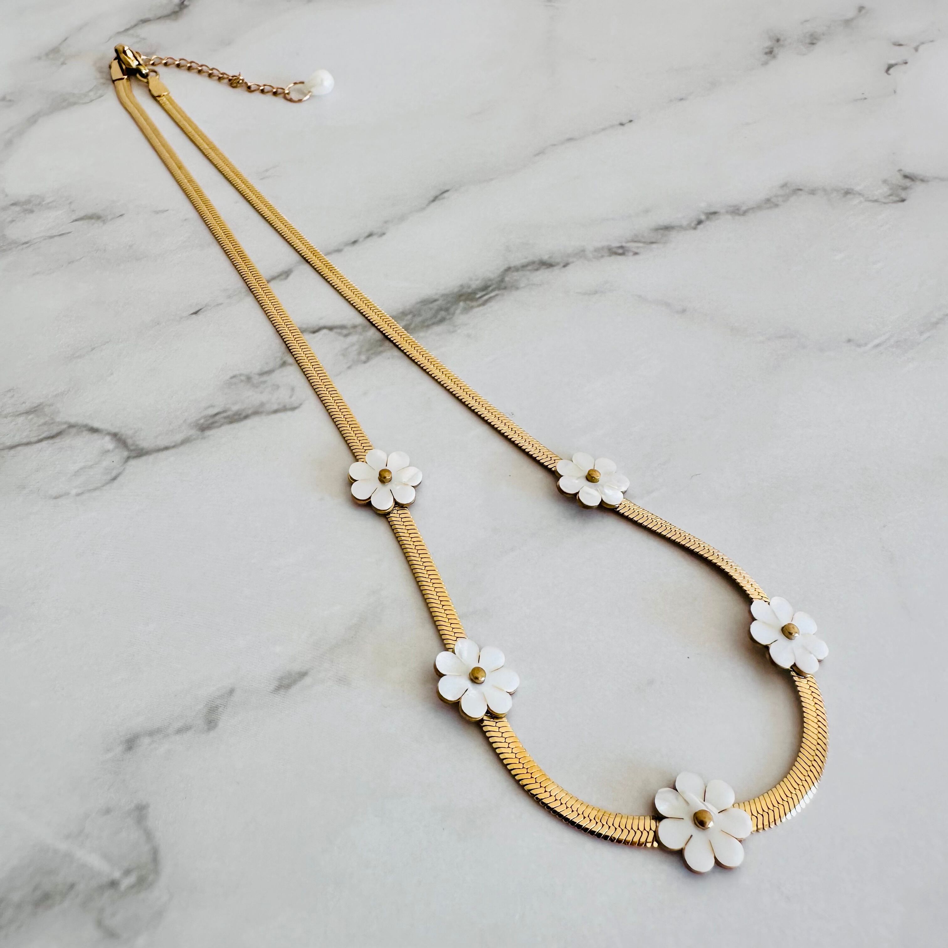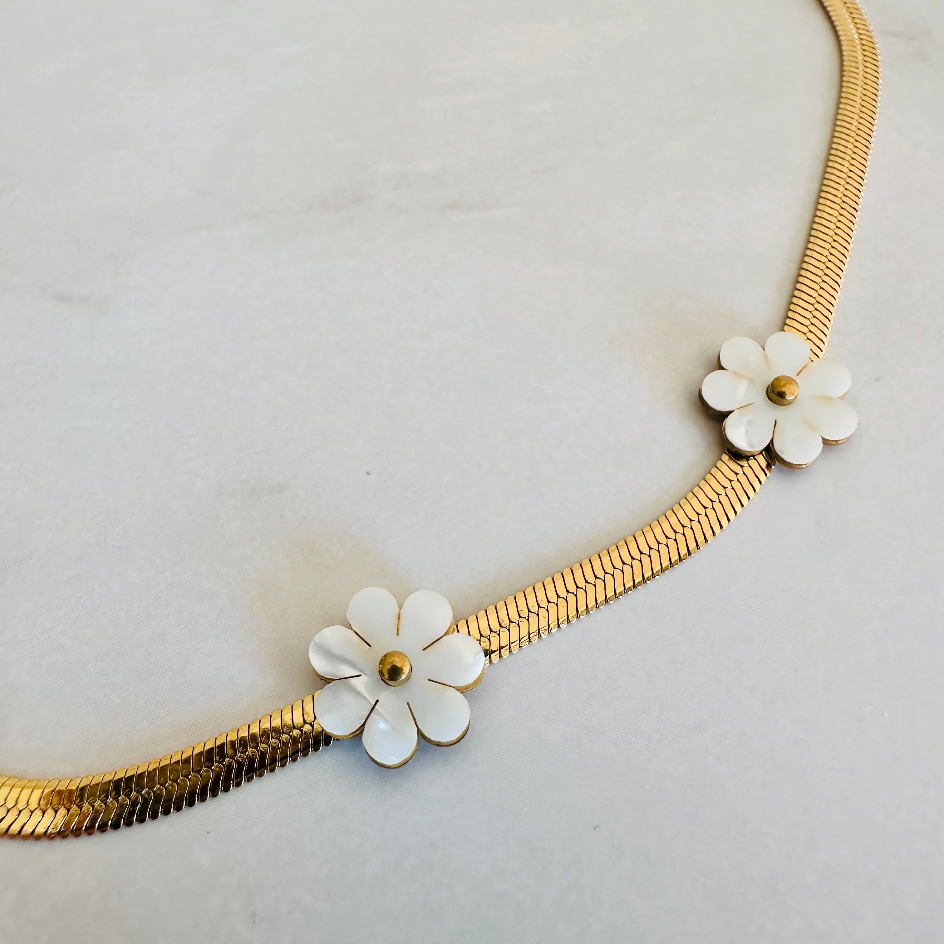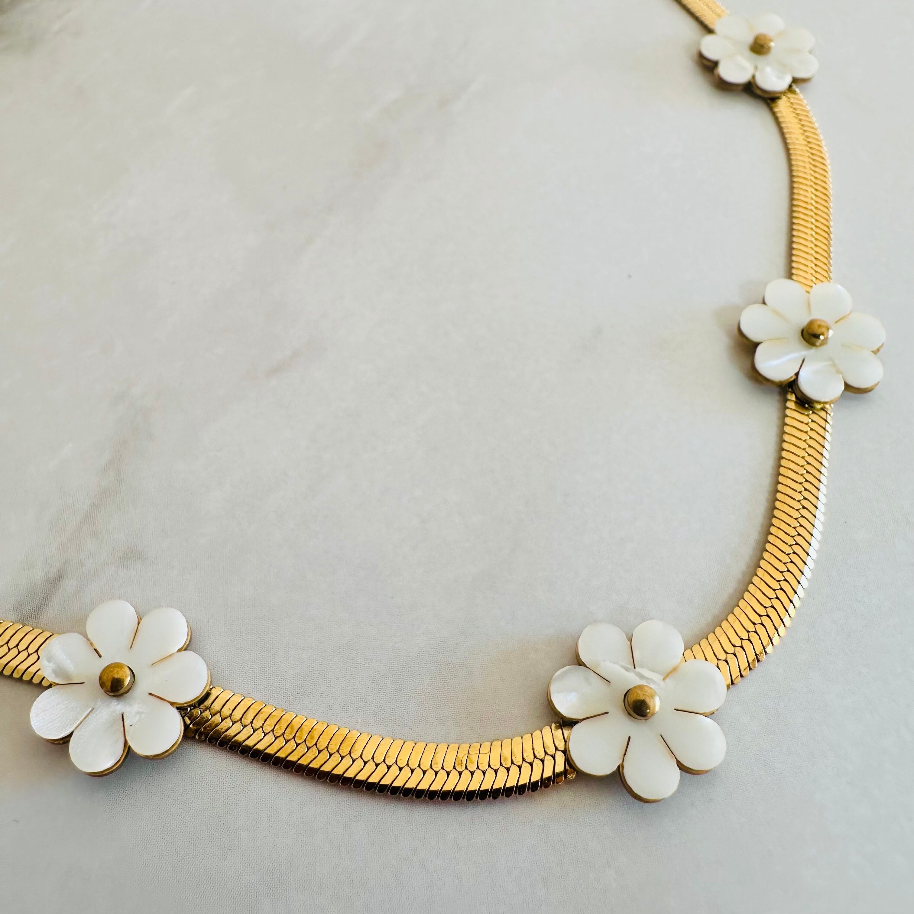 シェル素材の小ぶりなフラワーモチーフが並んだ可憐で上品なデザインです✨