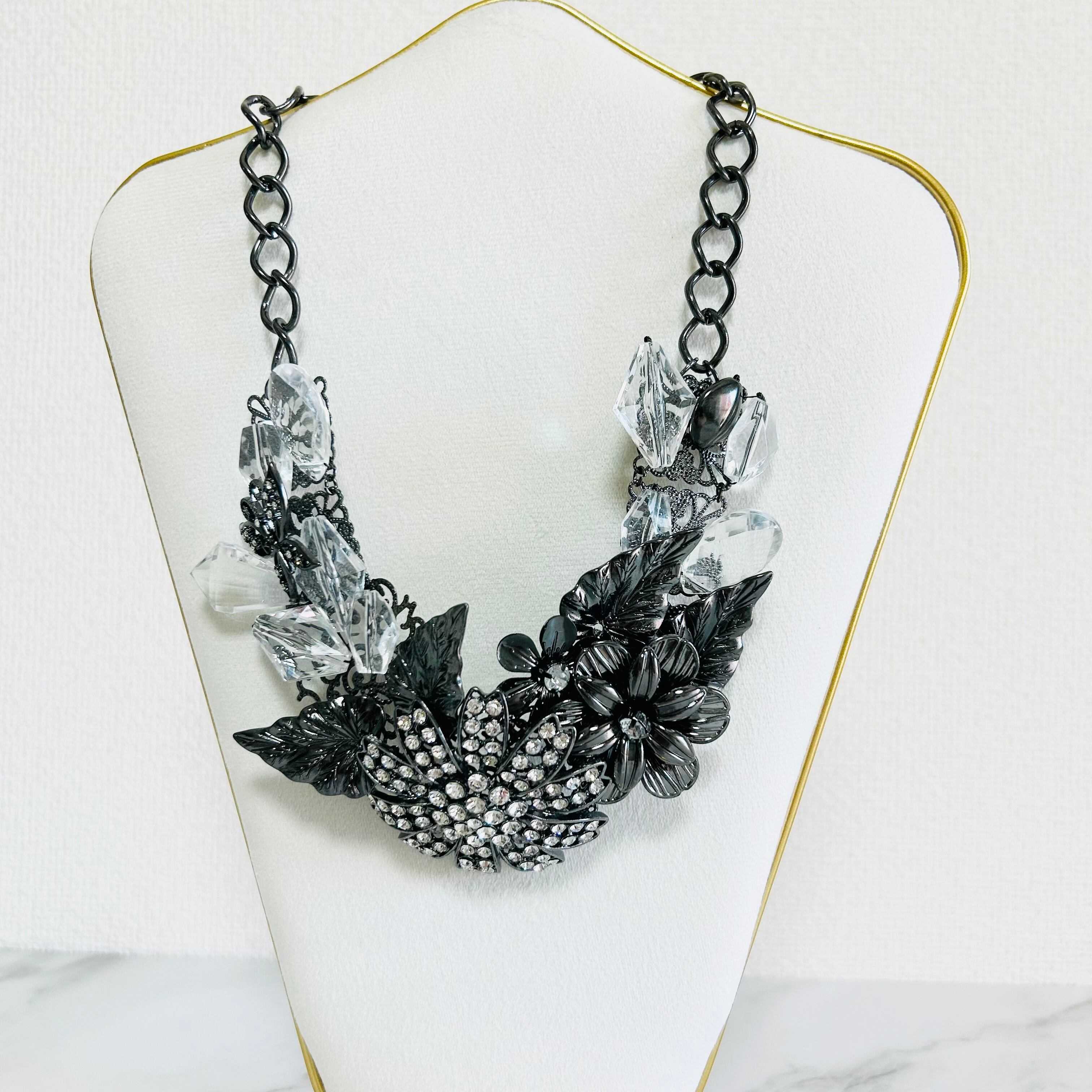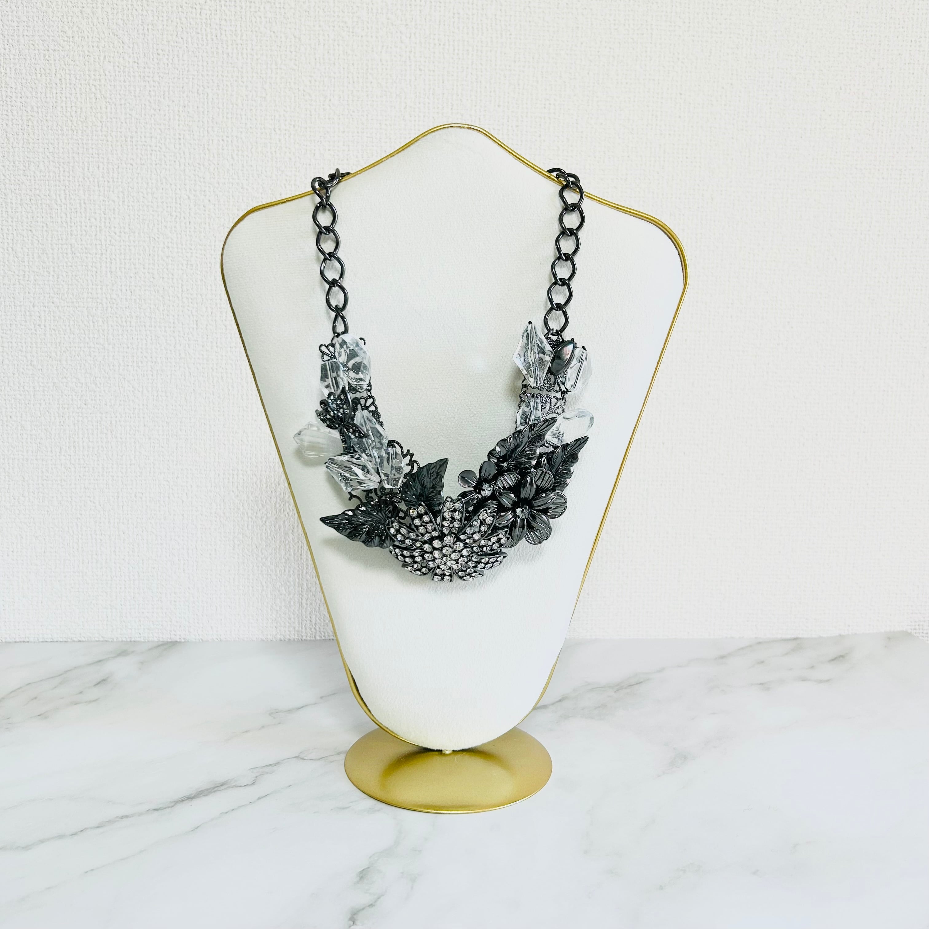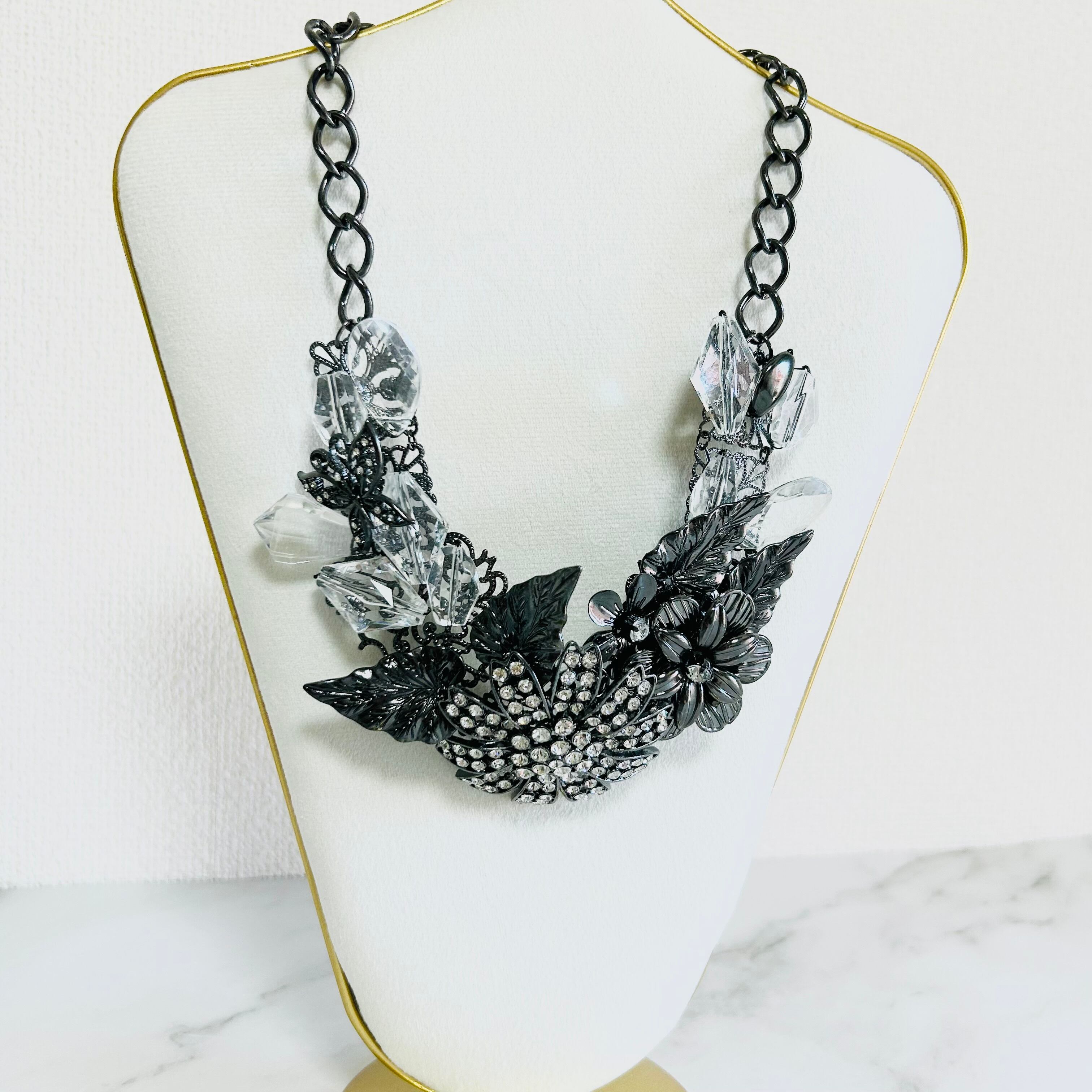 メタルブラック、クリアカラー✖️メタリックシルバーカラーのネックレスです。