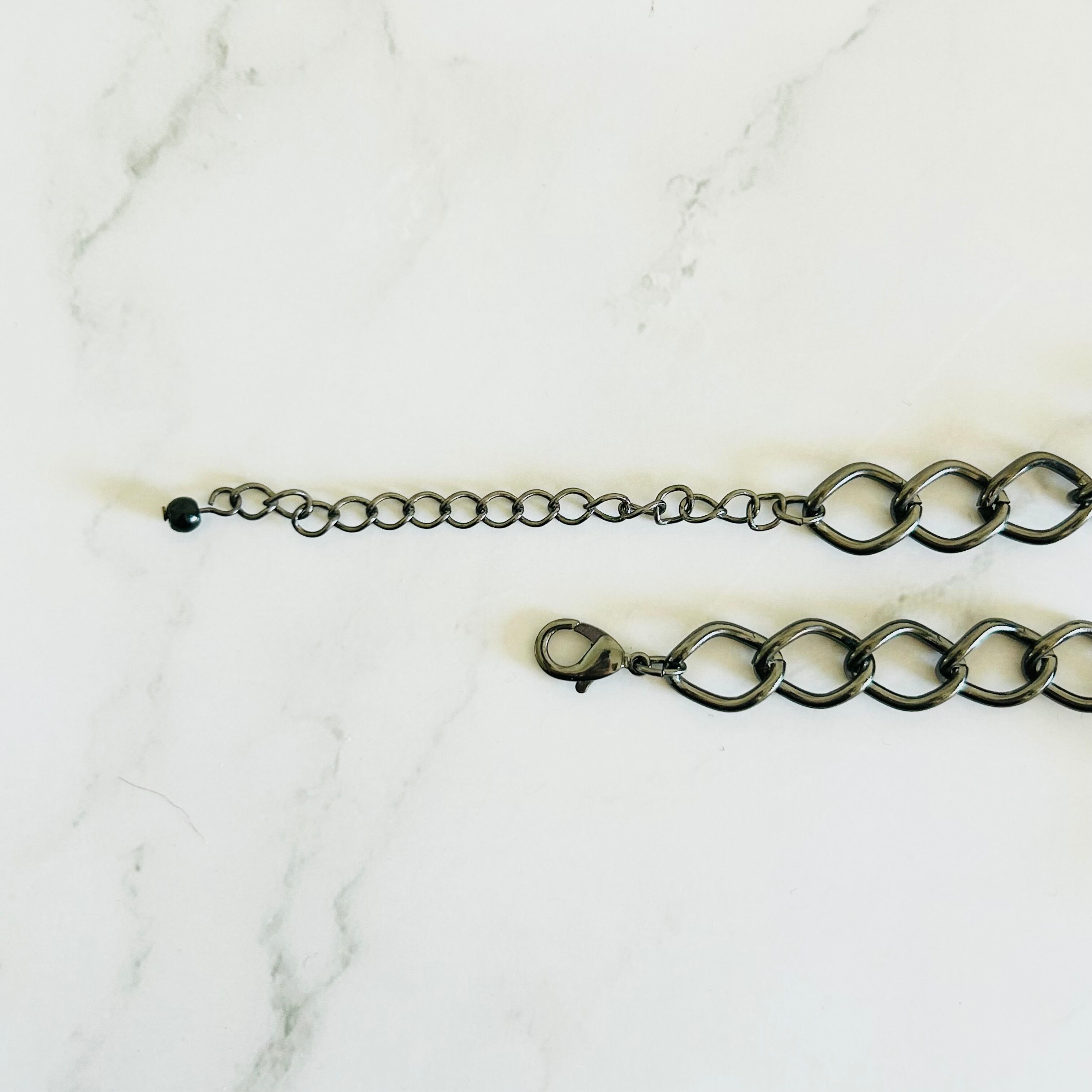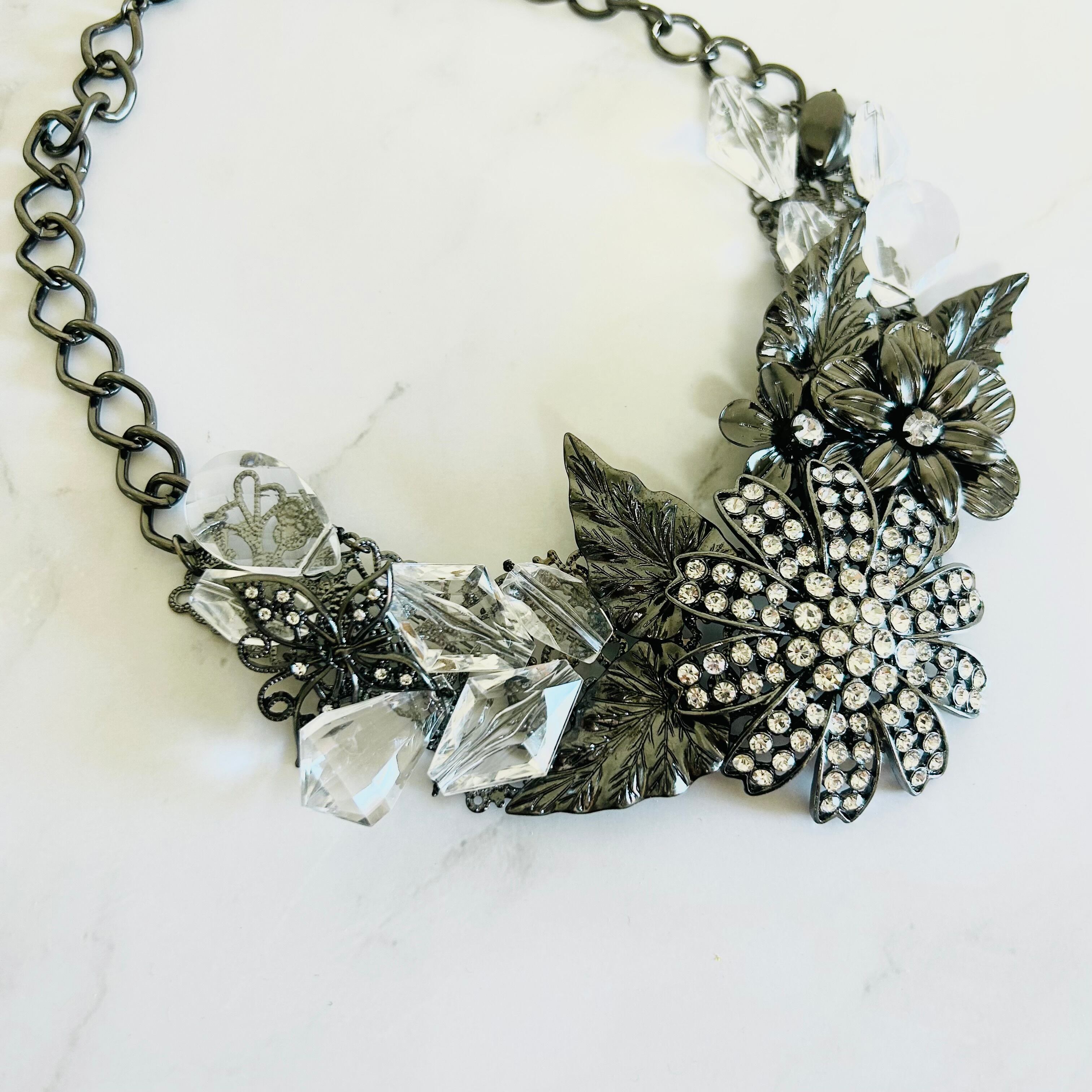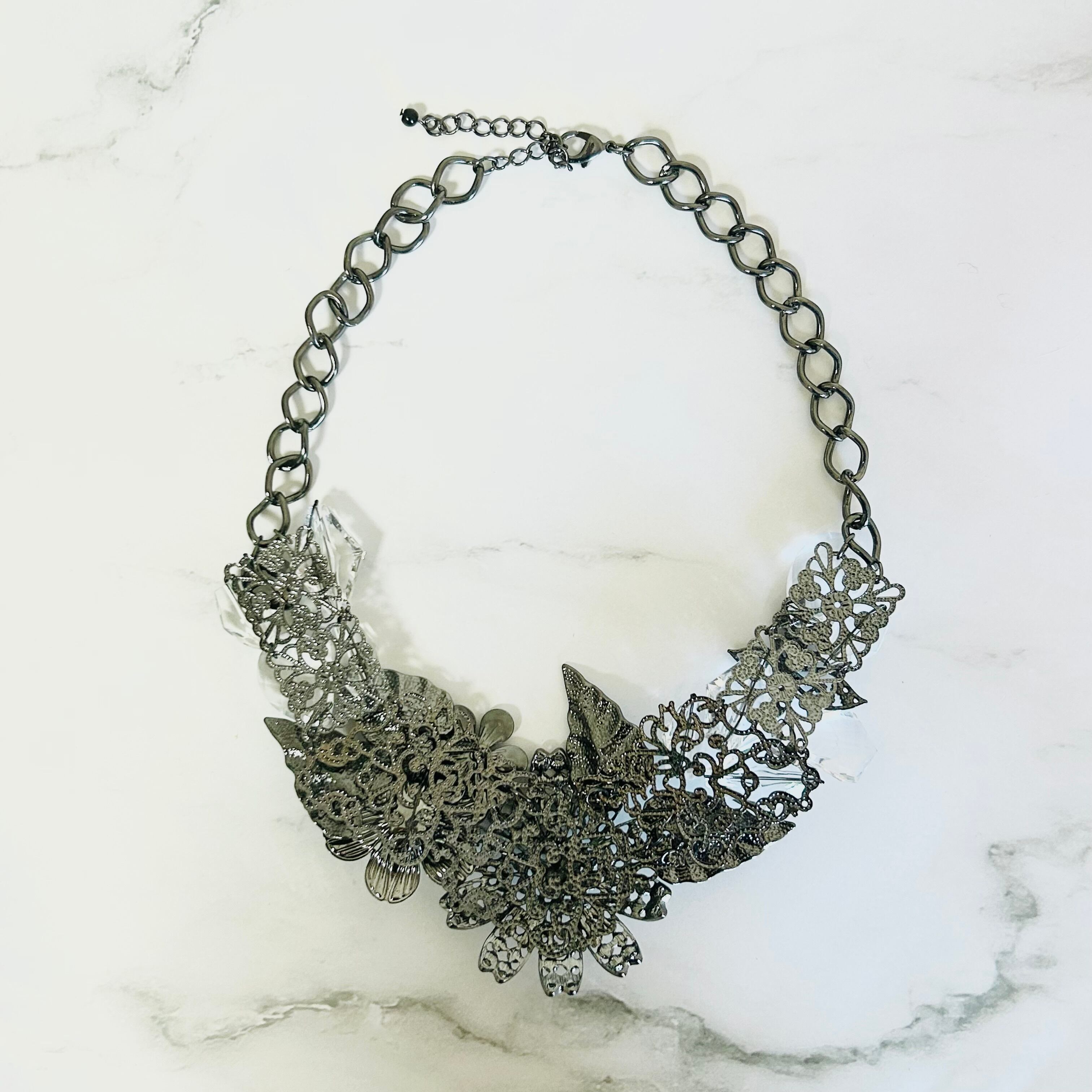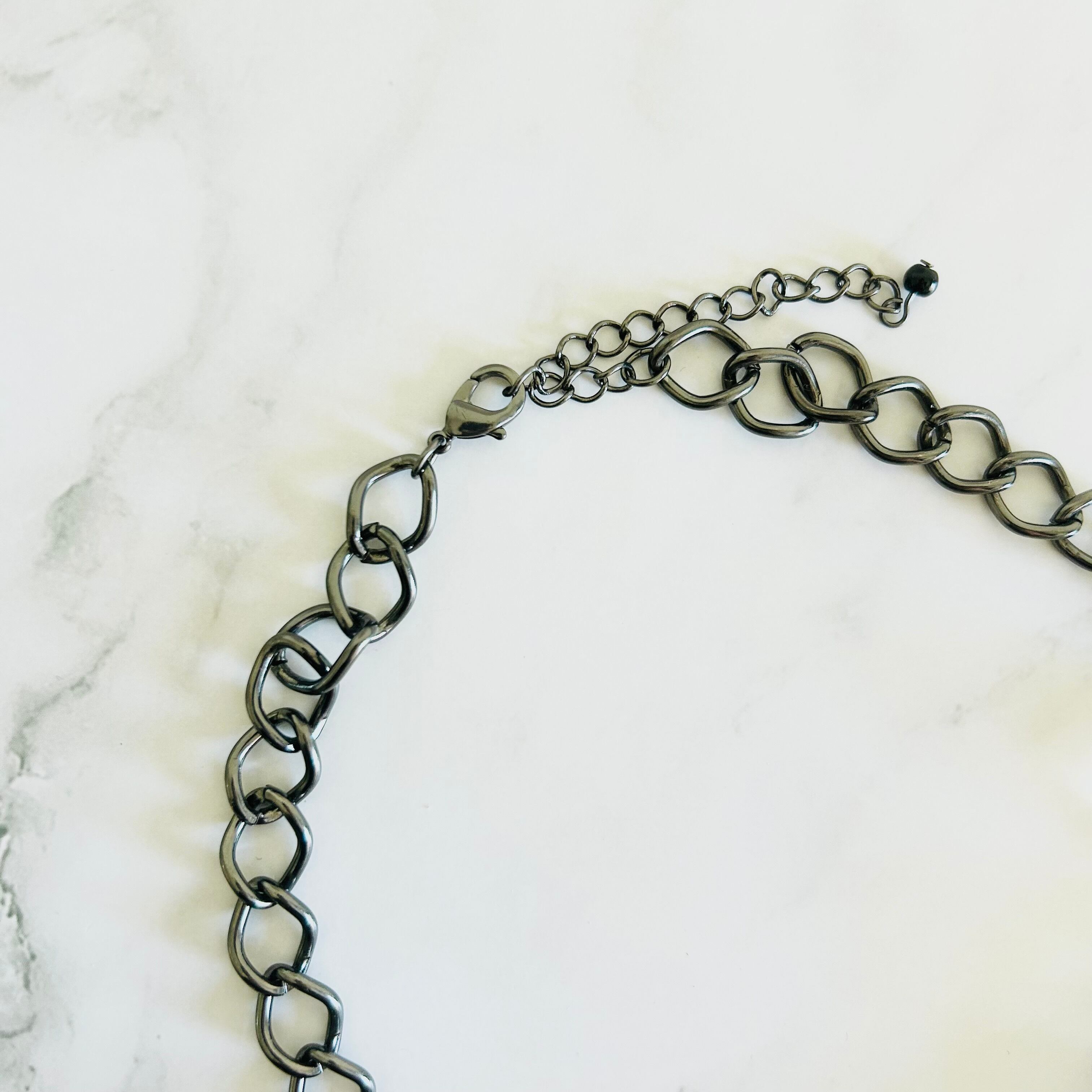 メタルブラック、クリアカラー✖️メタリックシルバーカラーのネックレスです。