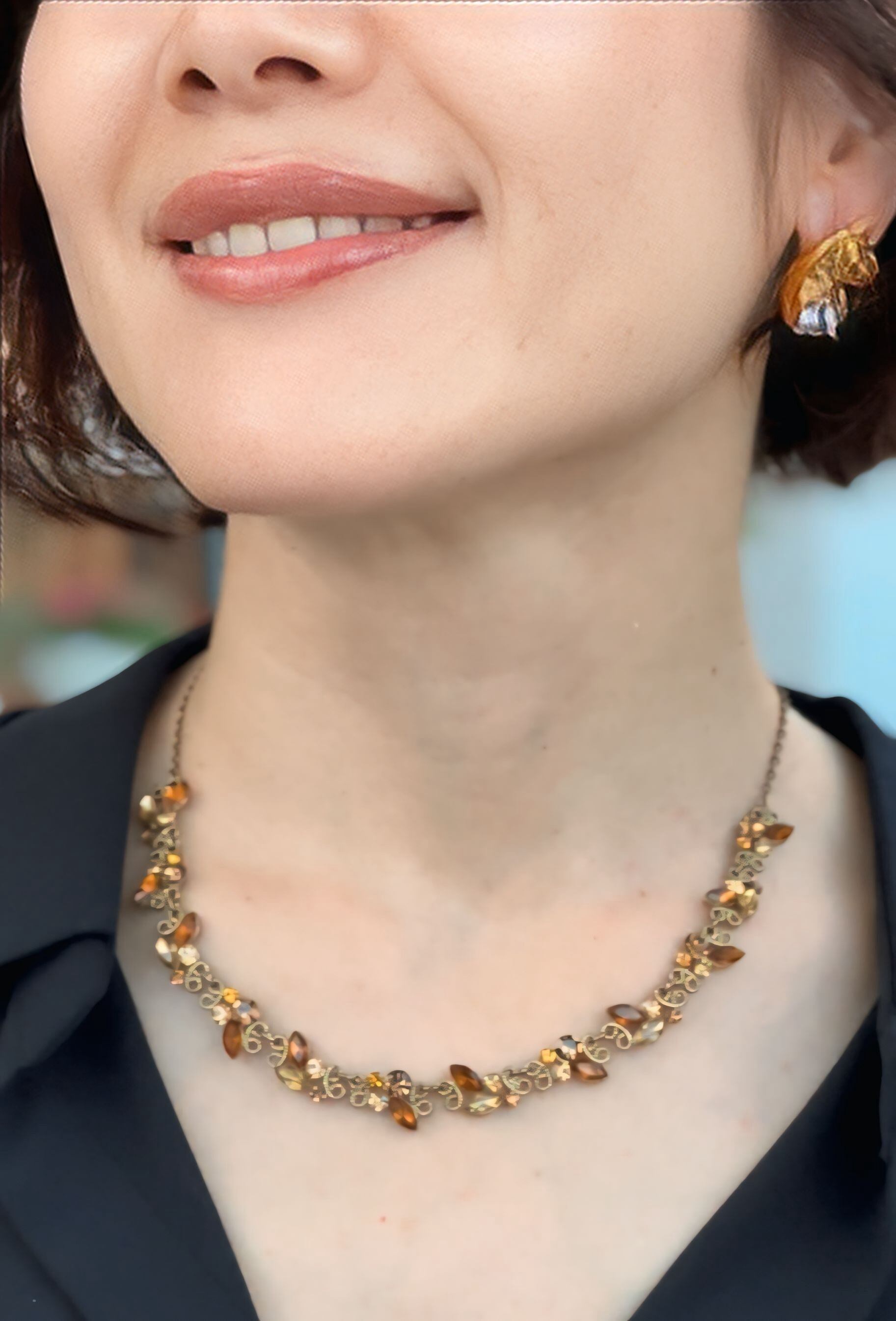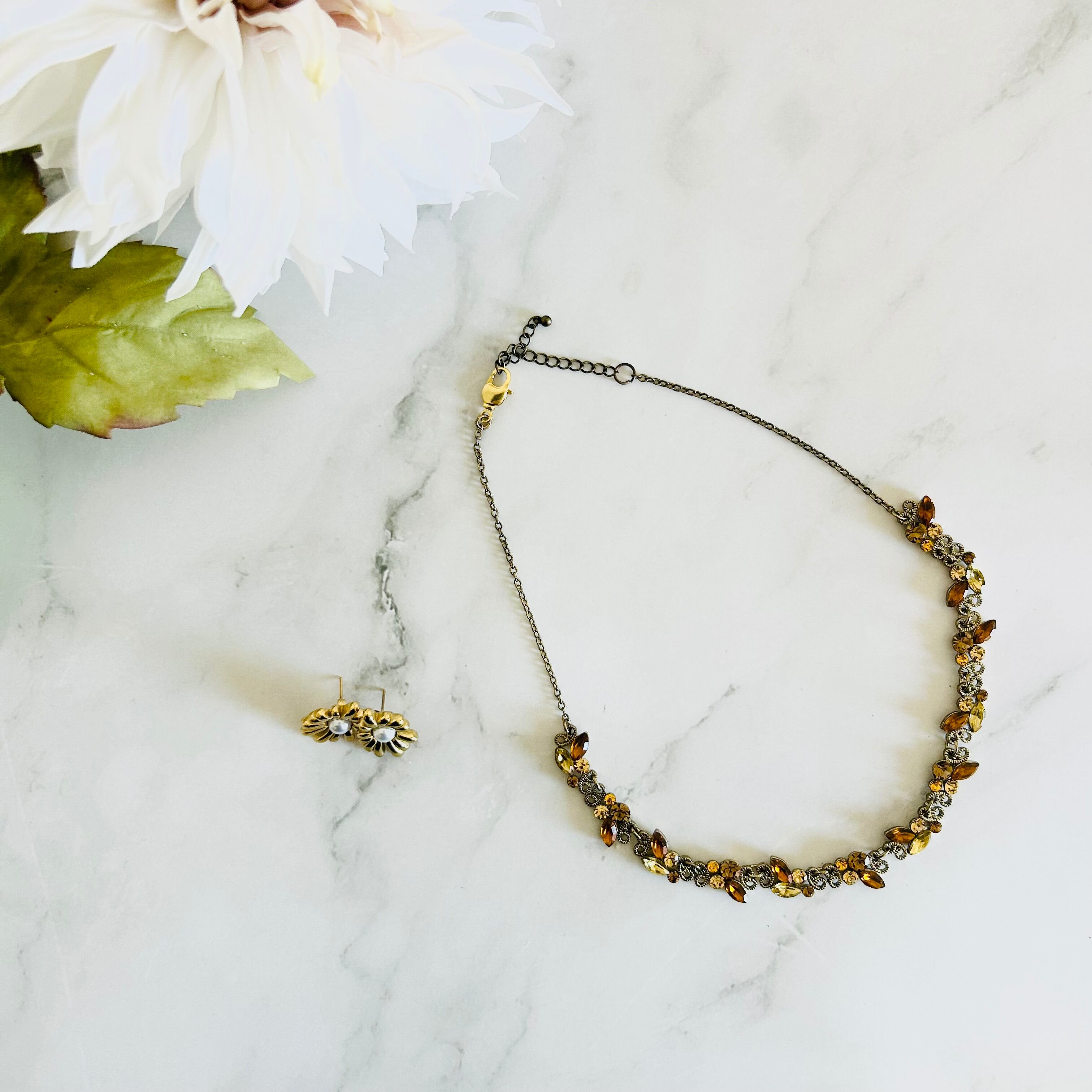 ブラウン系✖️アンティークゴールドカラーのネックレスです。
