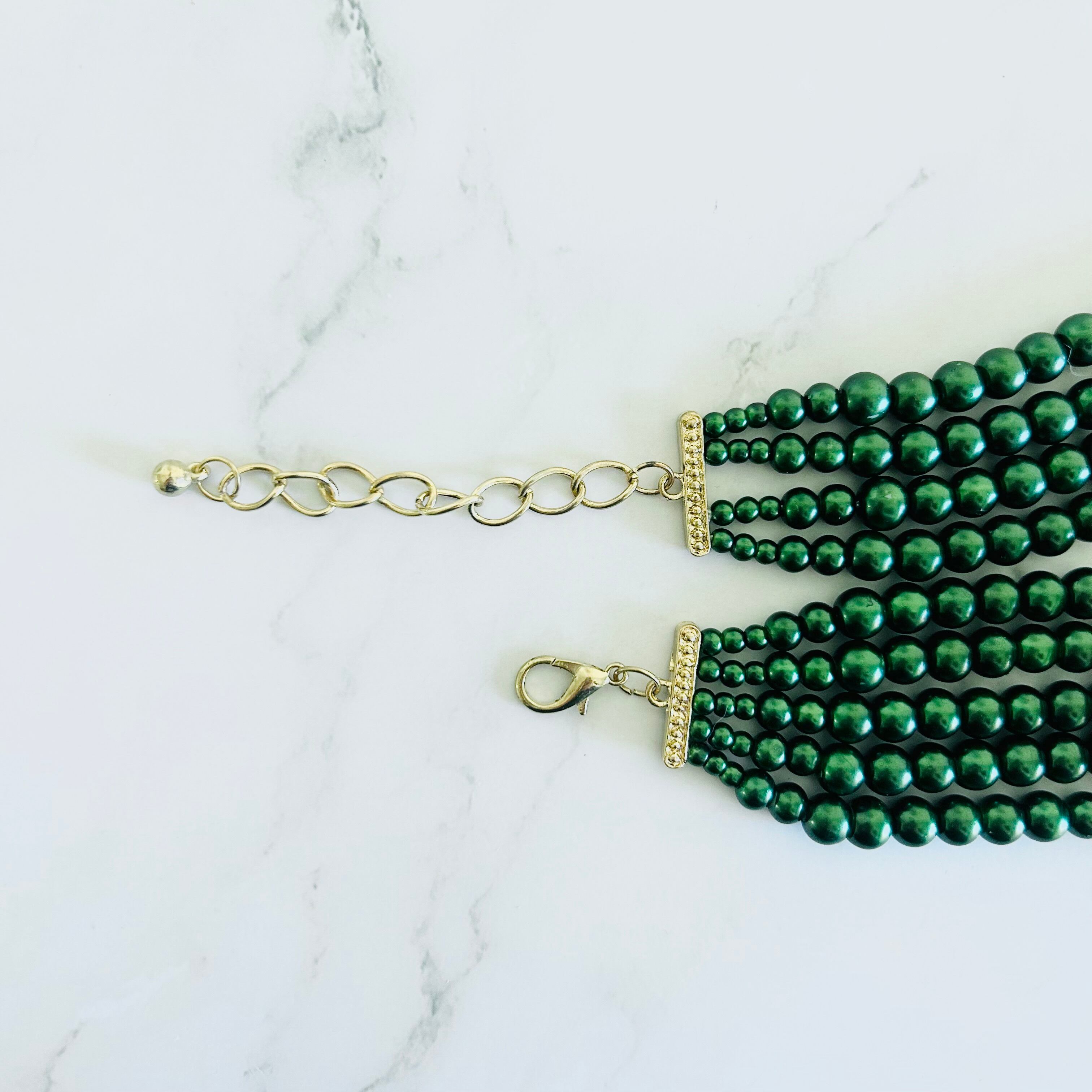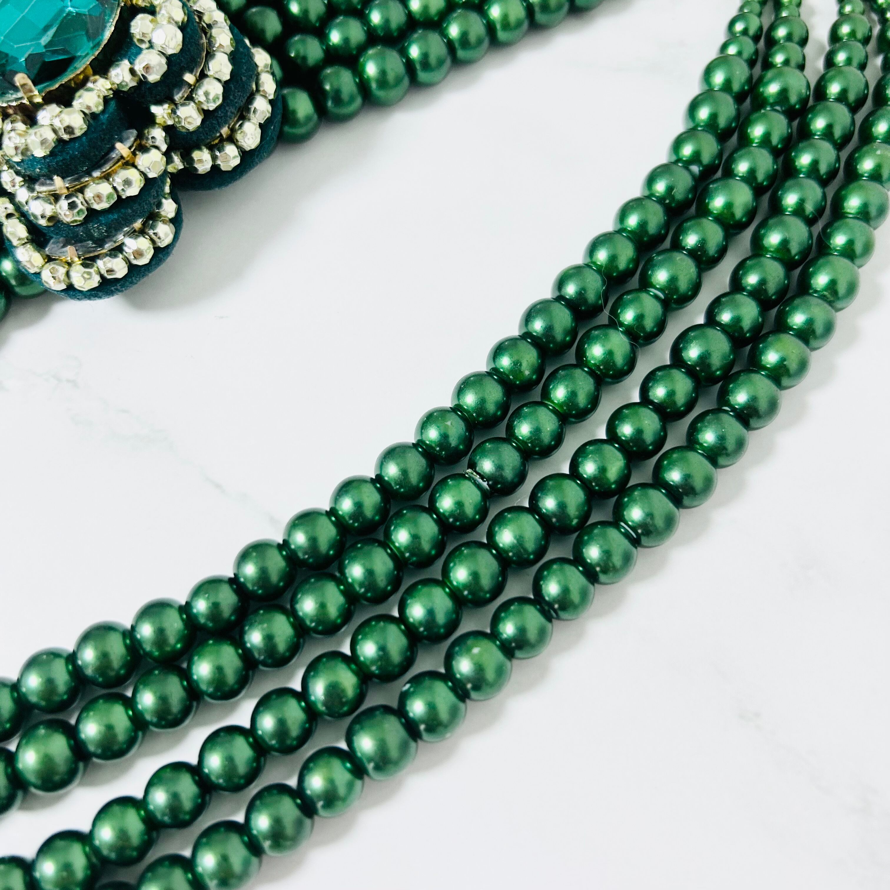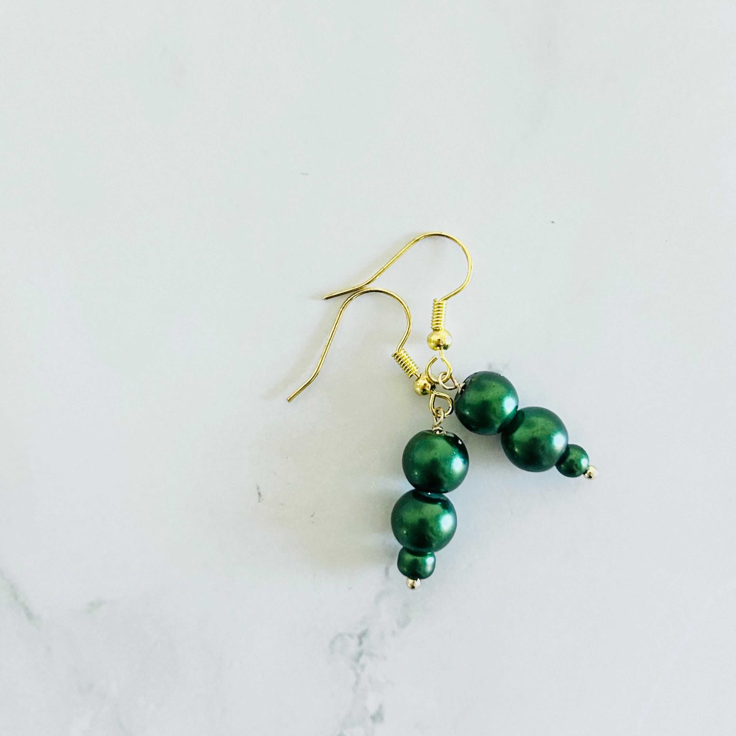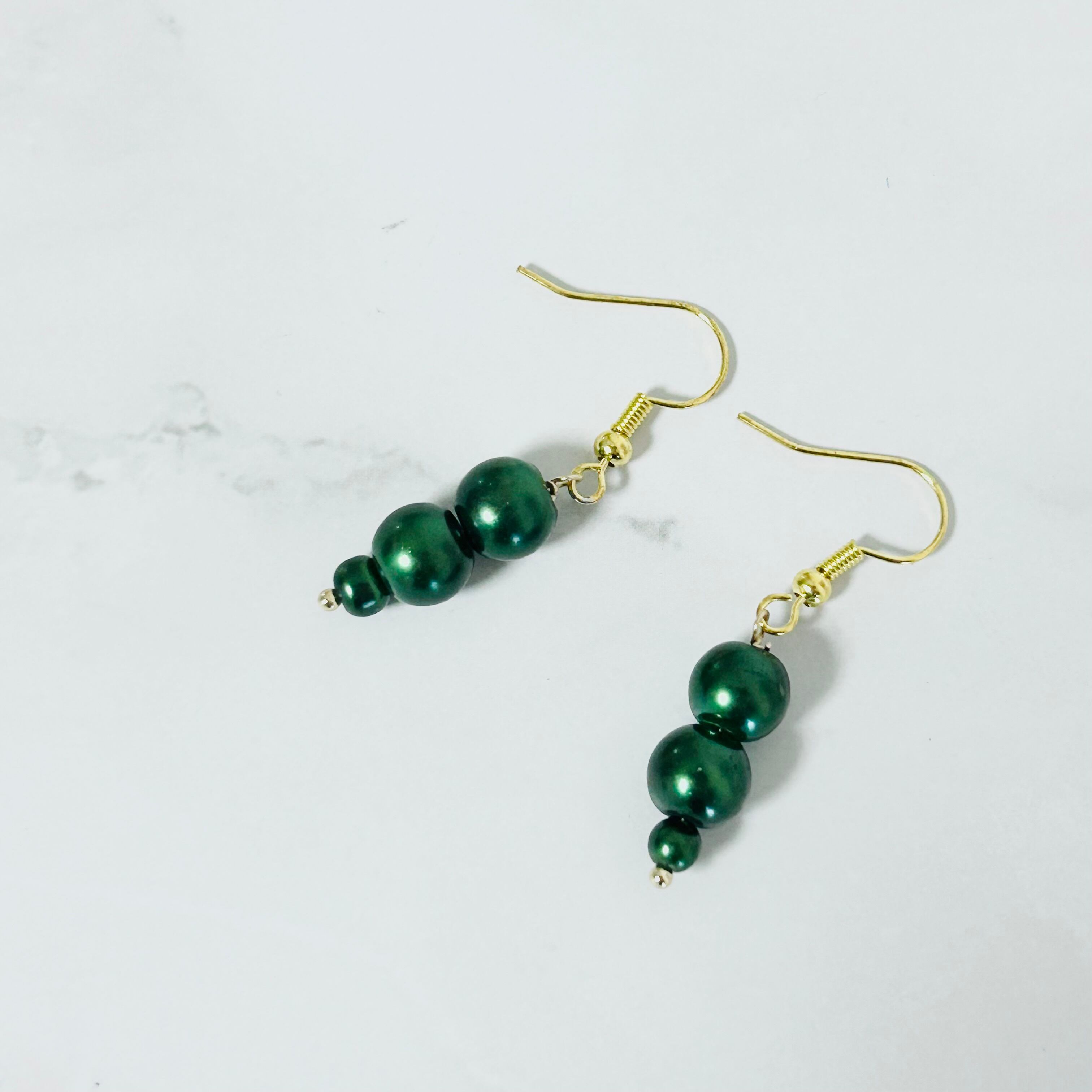 メタリックグリーン✖️アンティークゴールドカラーのネックレスと同じパールを使用したピアスのセットです。
