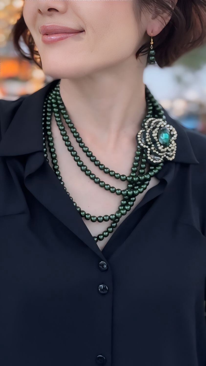 上品なパールの艶めきが、首元を優雅に演出してくれます。