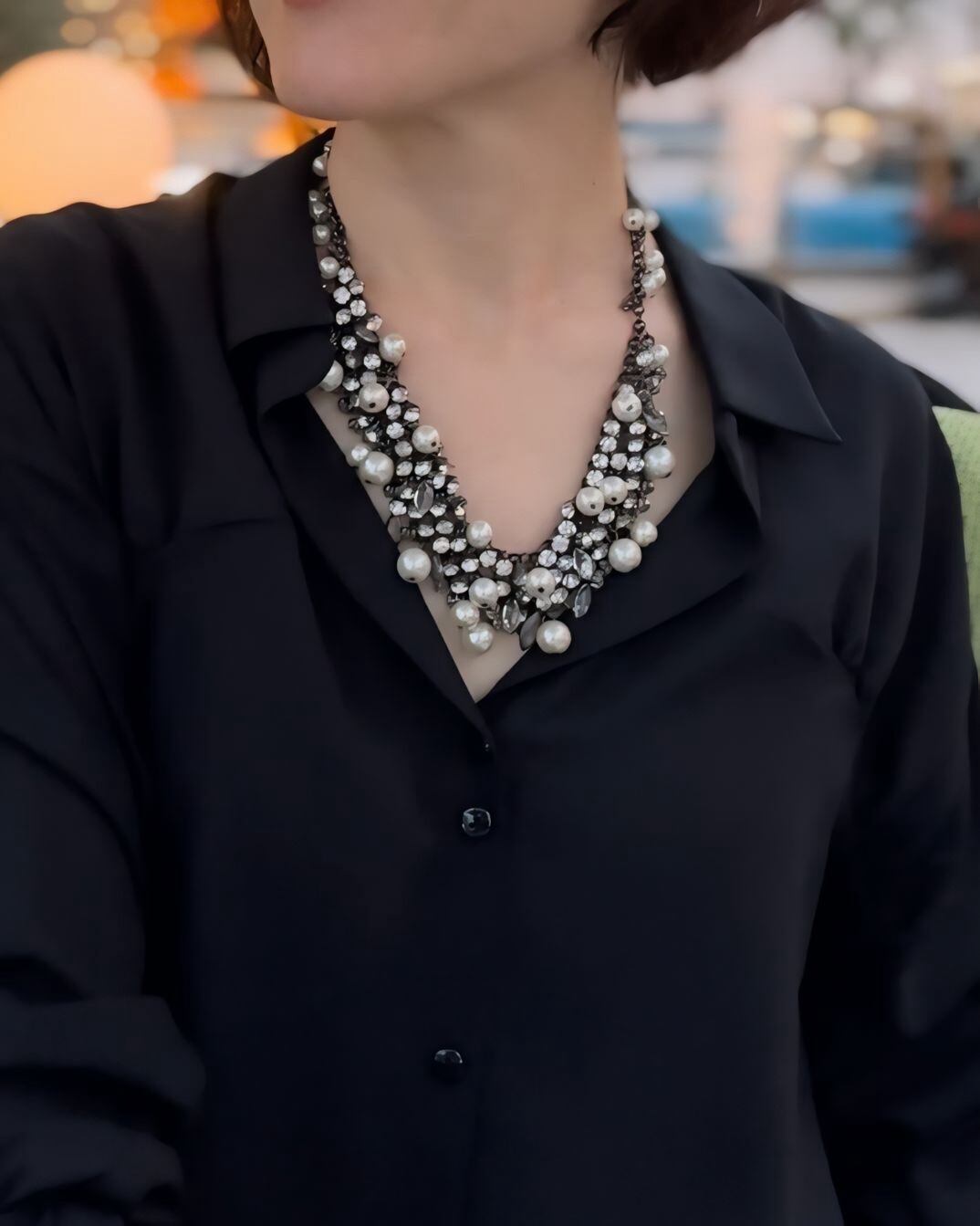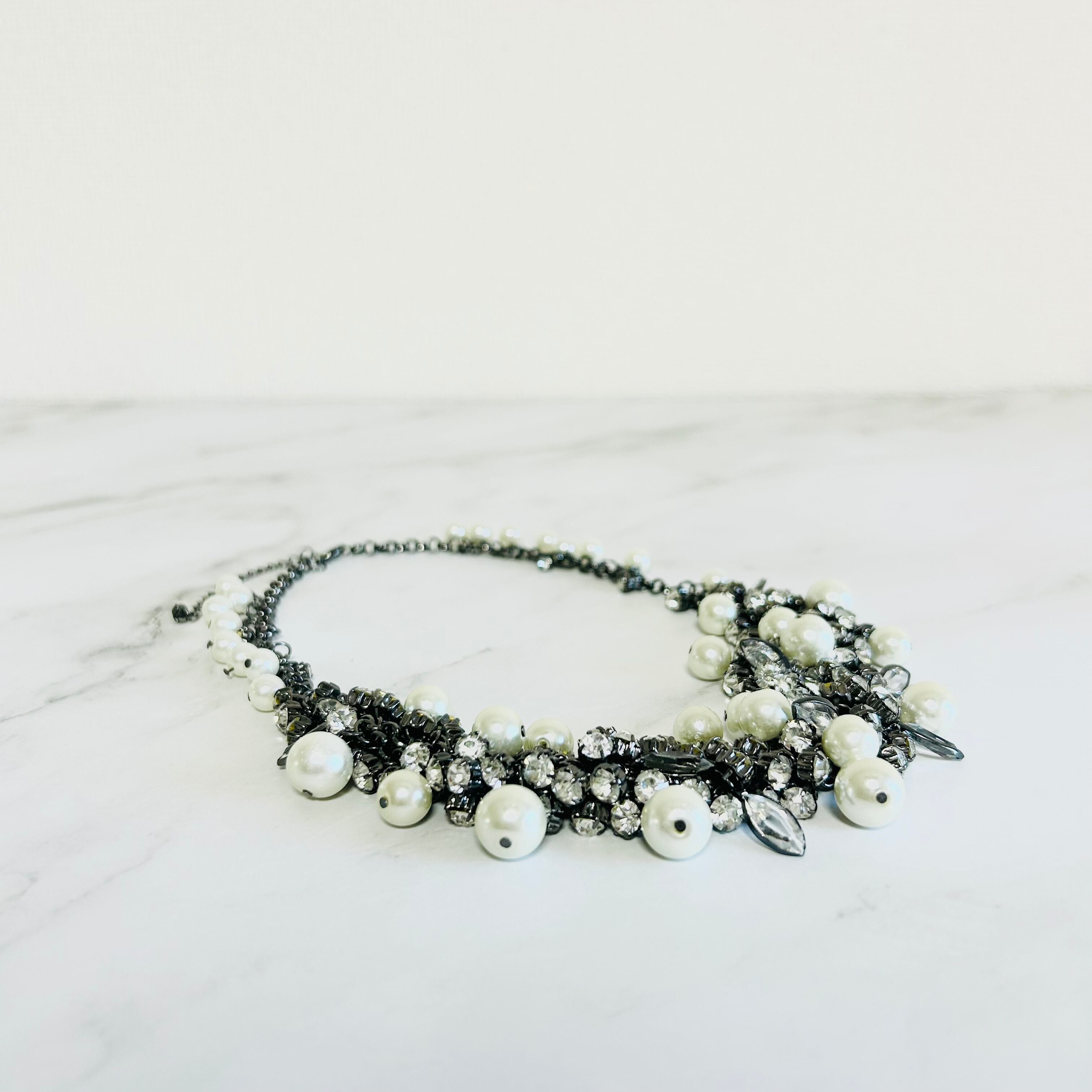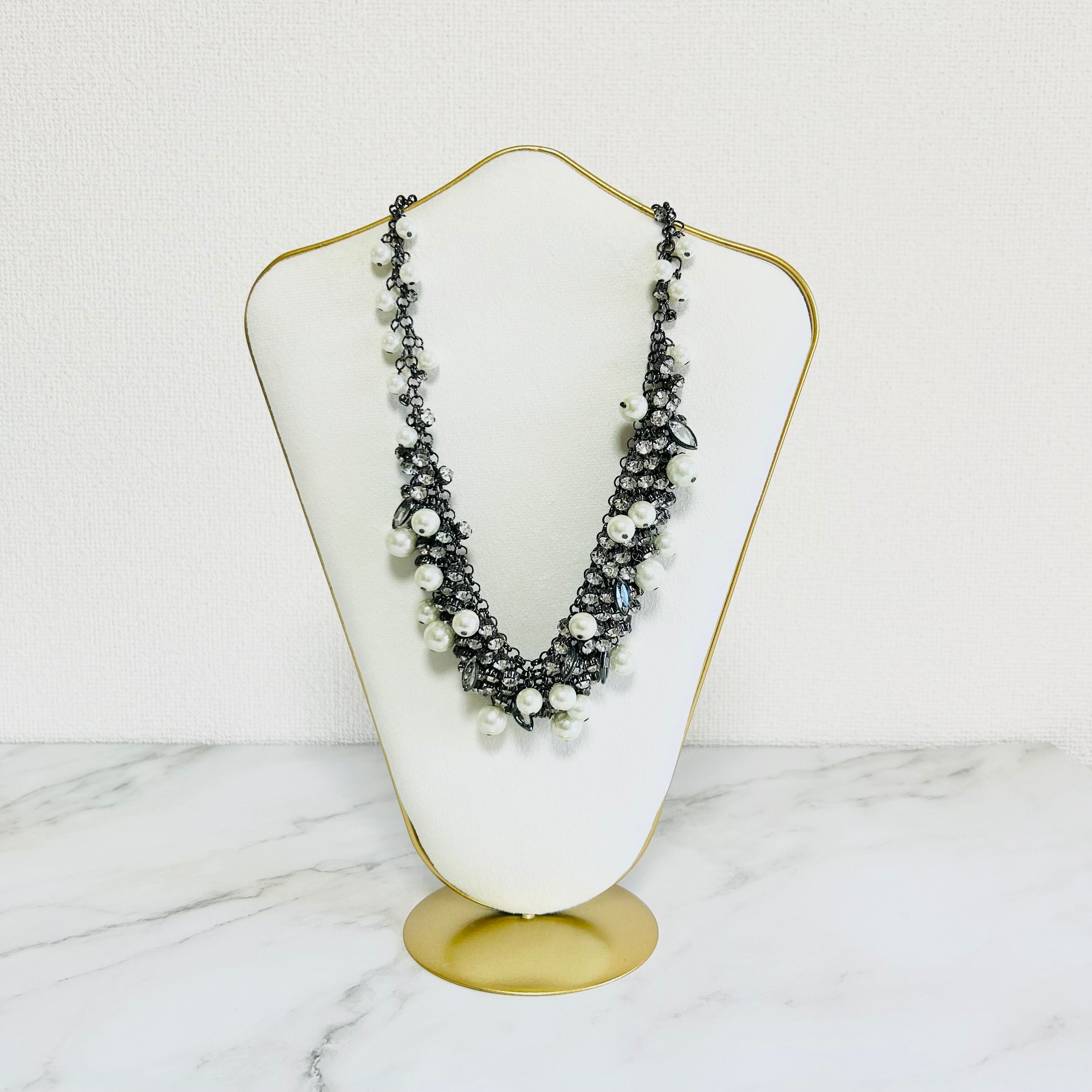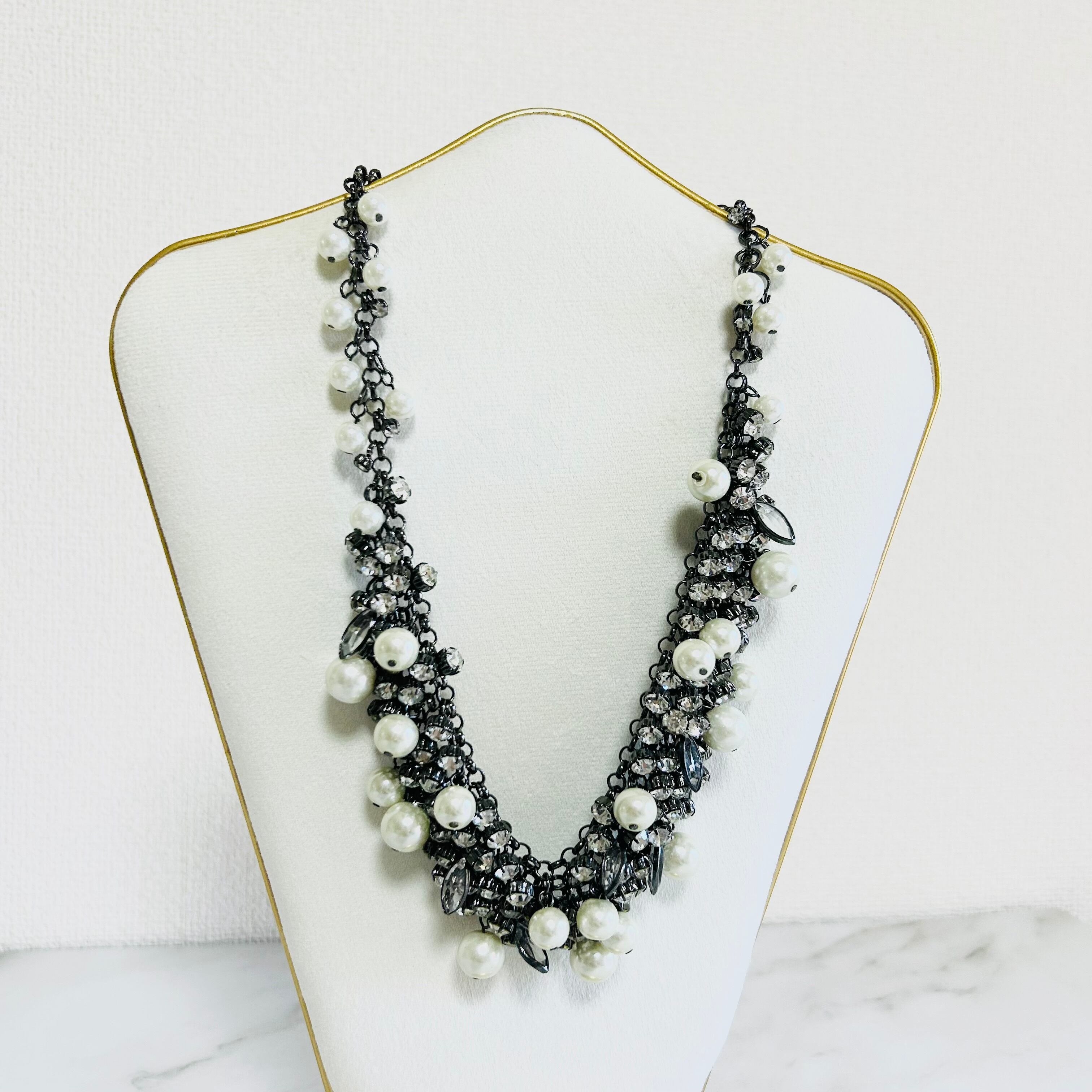 パールカラー、クリスタル✖️ブラックメタルカラーのネックレスです。