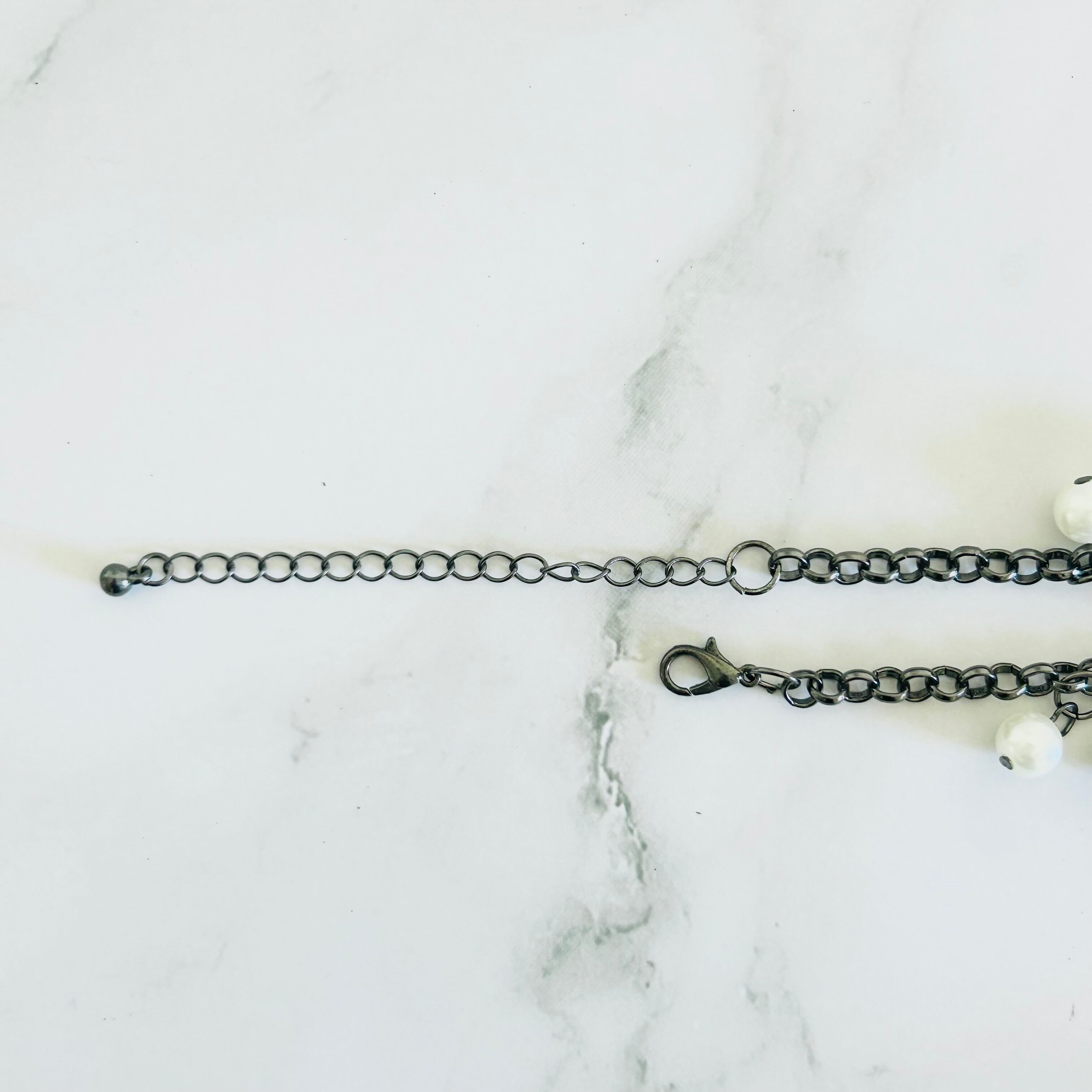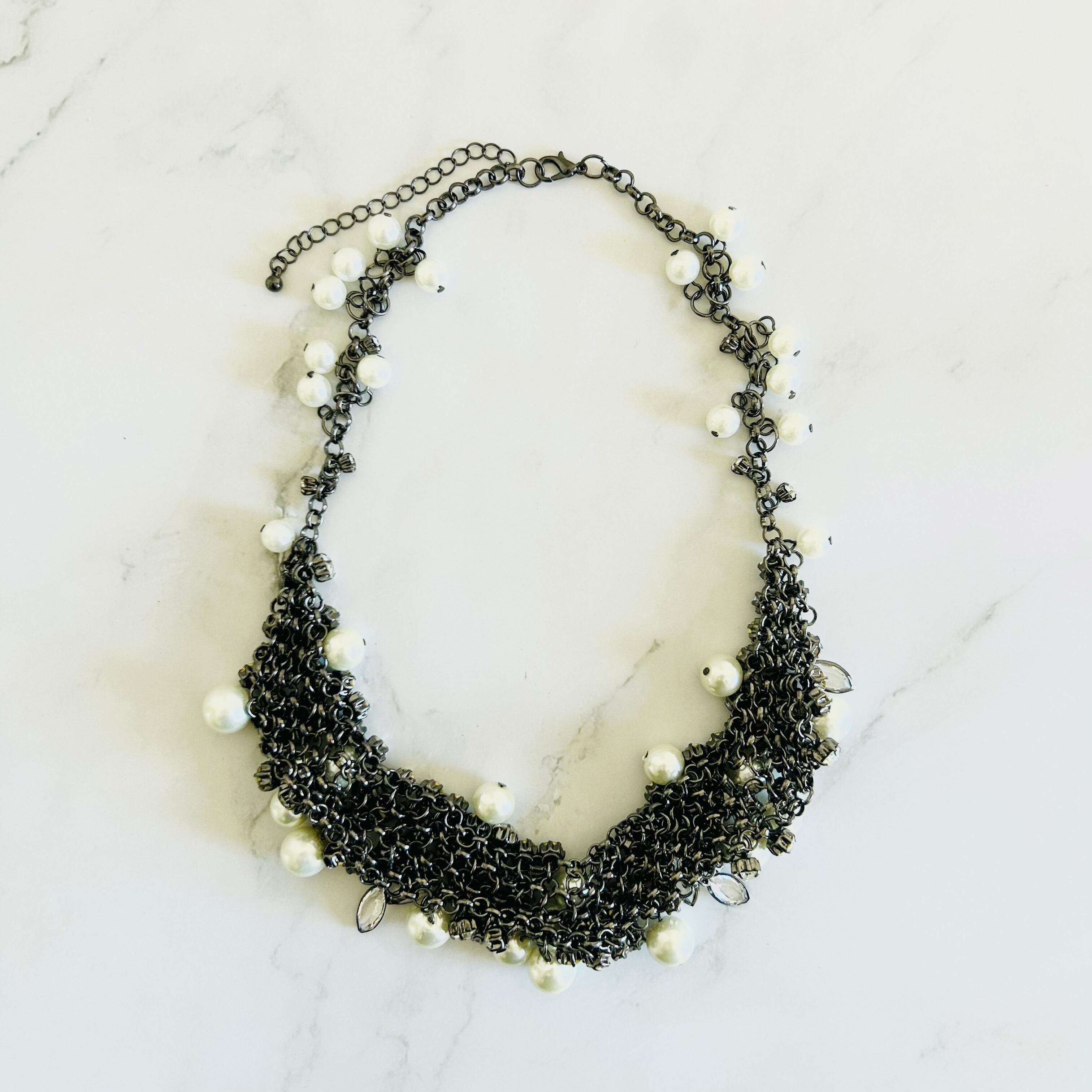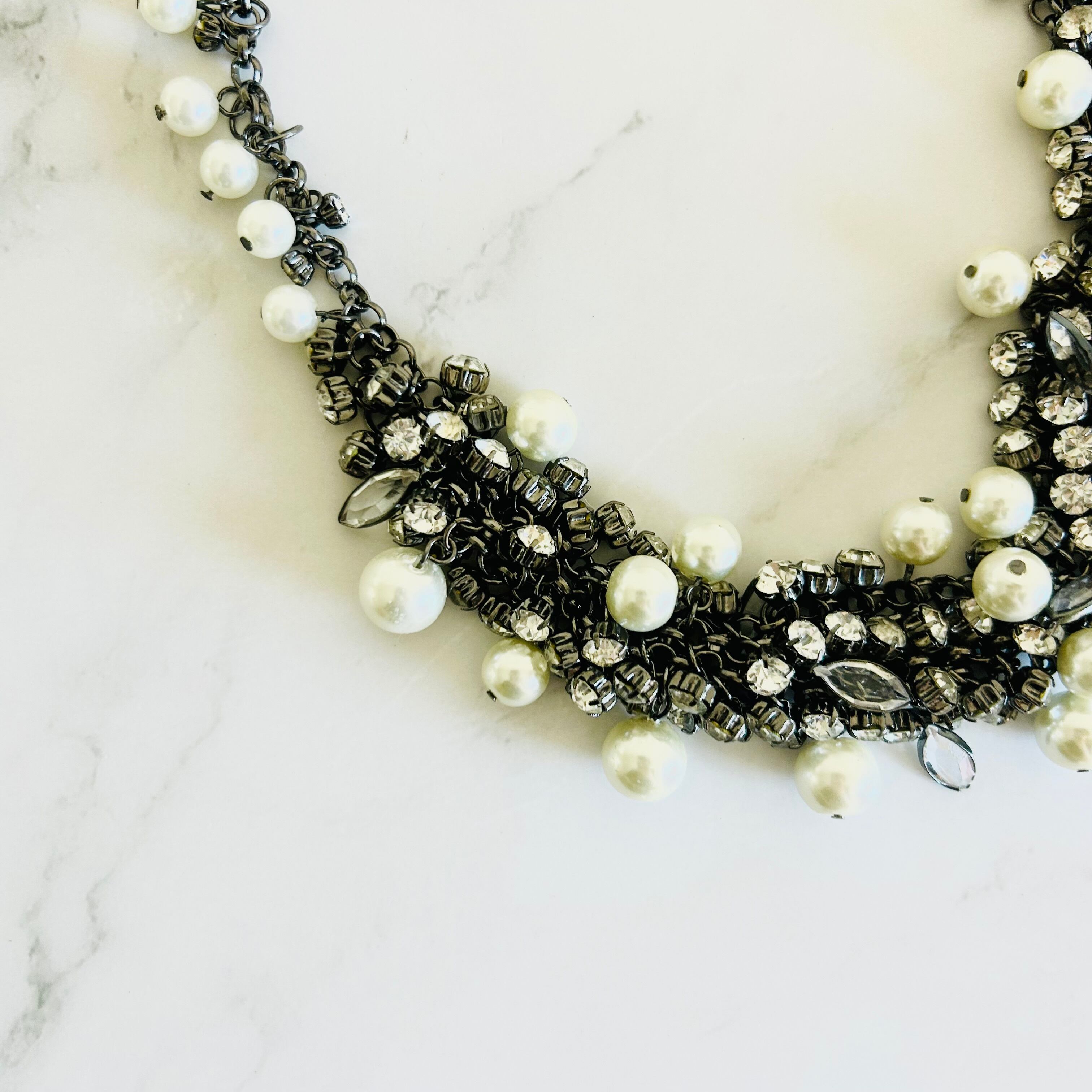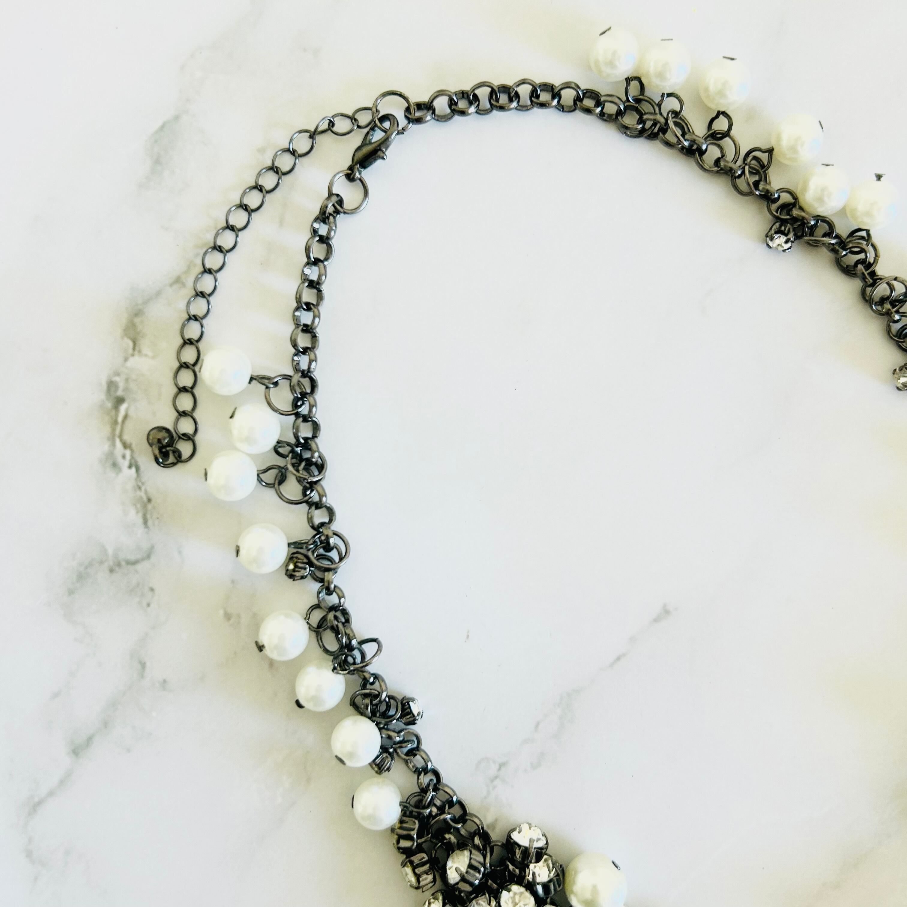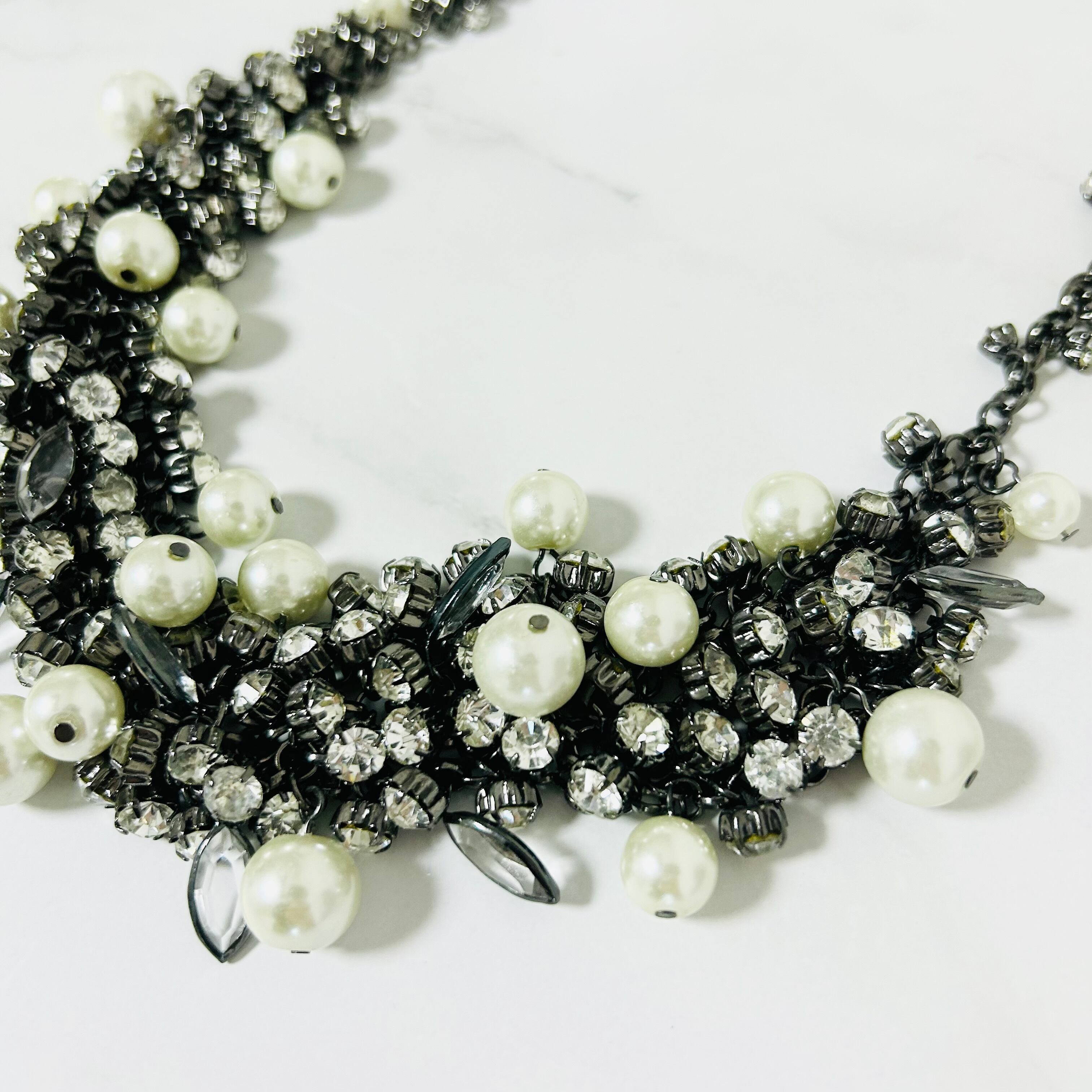 パールカラー、クリスタル✖️ブラックメタルカラーのネックレスです。