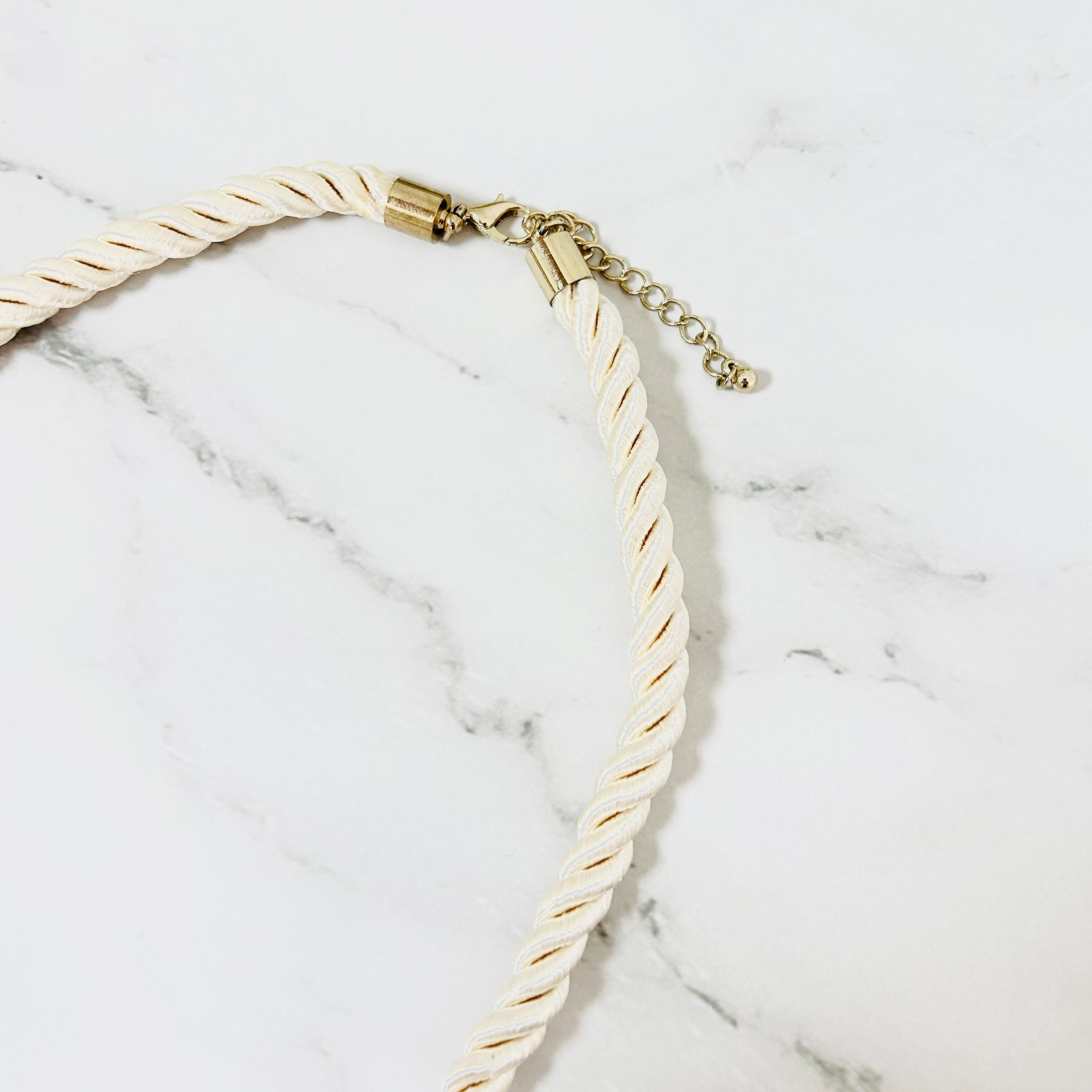 編み込みのコードはアイボリーカラーでトップのデザインと親和性の高いものを選びました。
