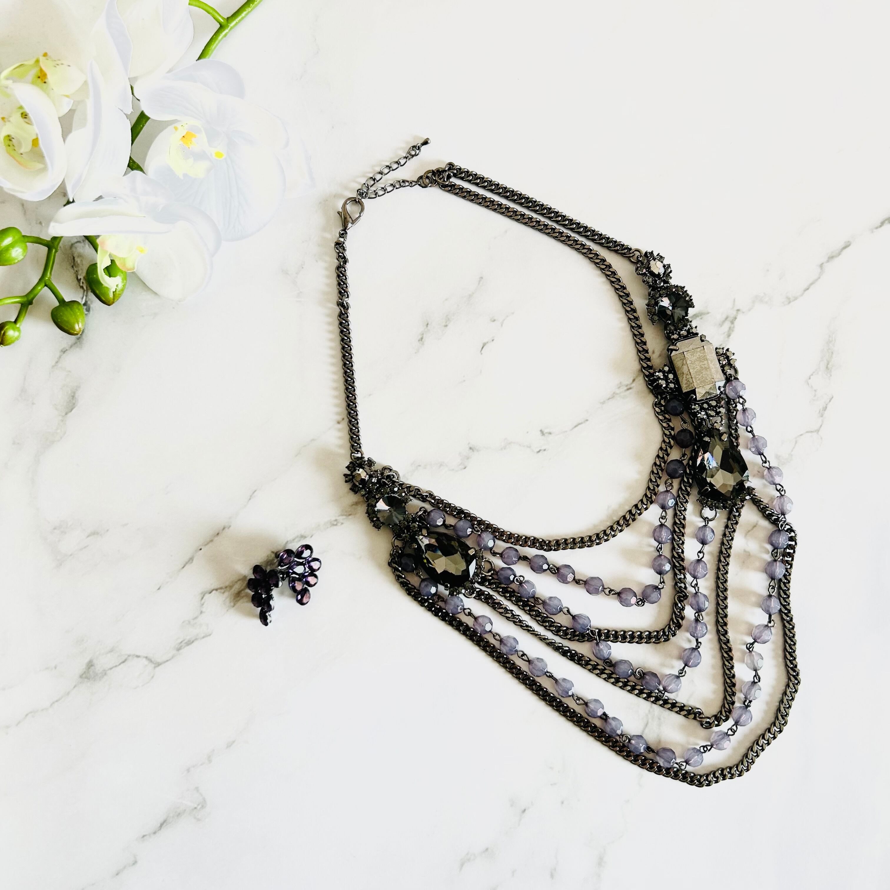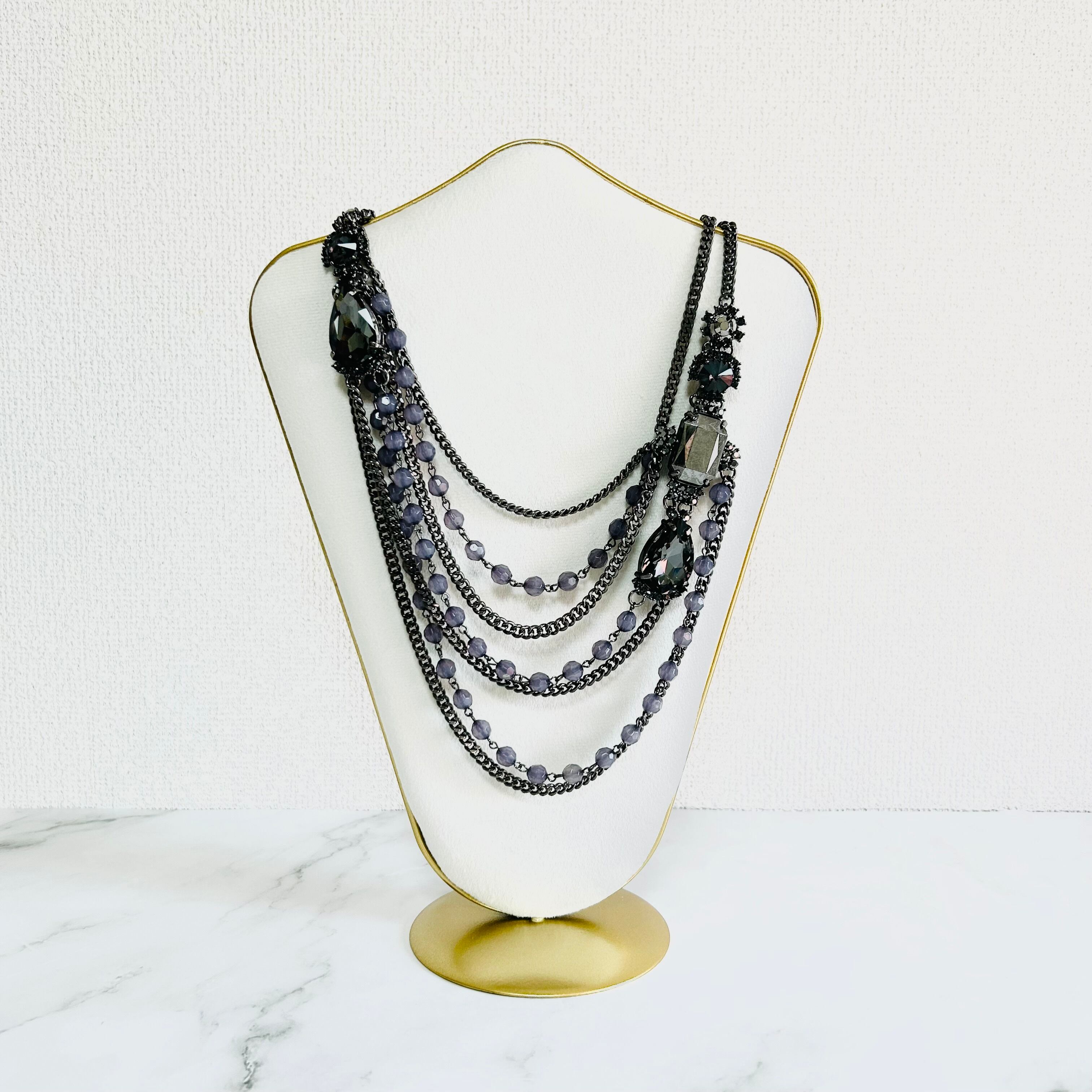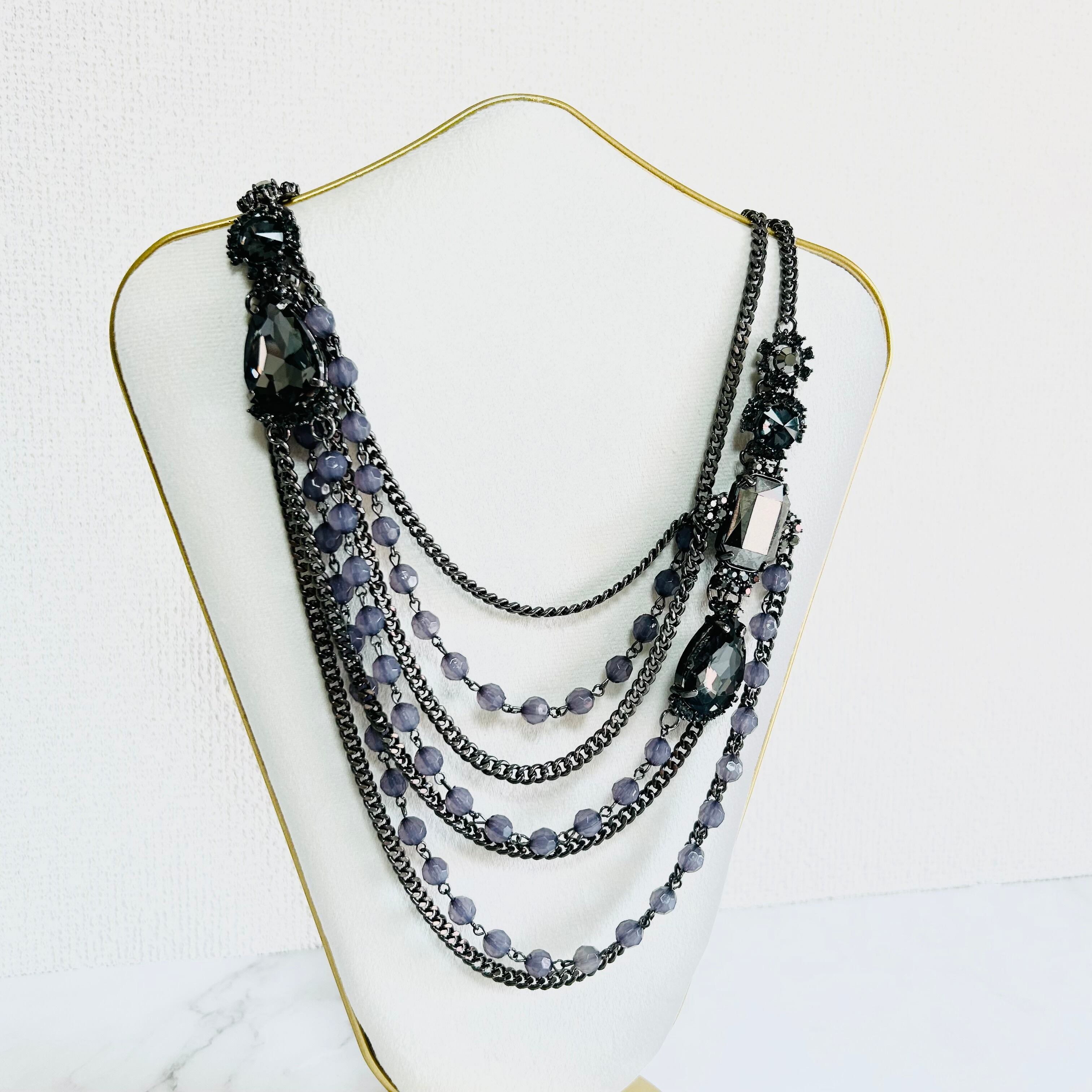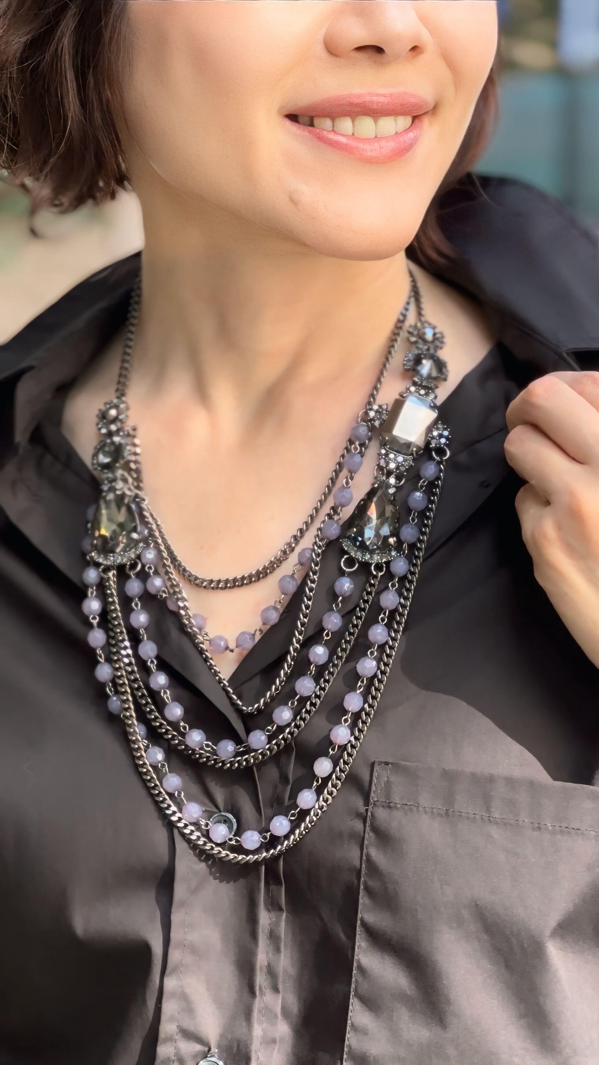 パープル系、グレー✖️ブラックメタルカラーのネックレスです。