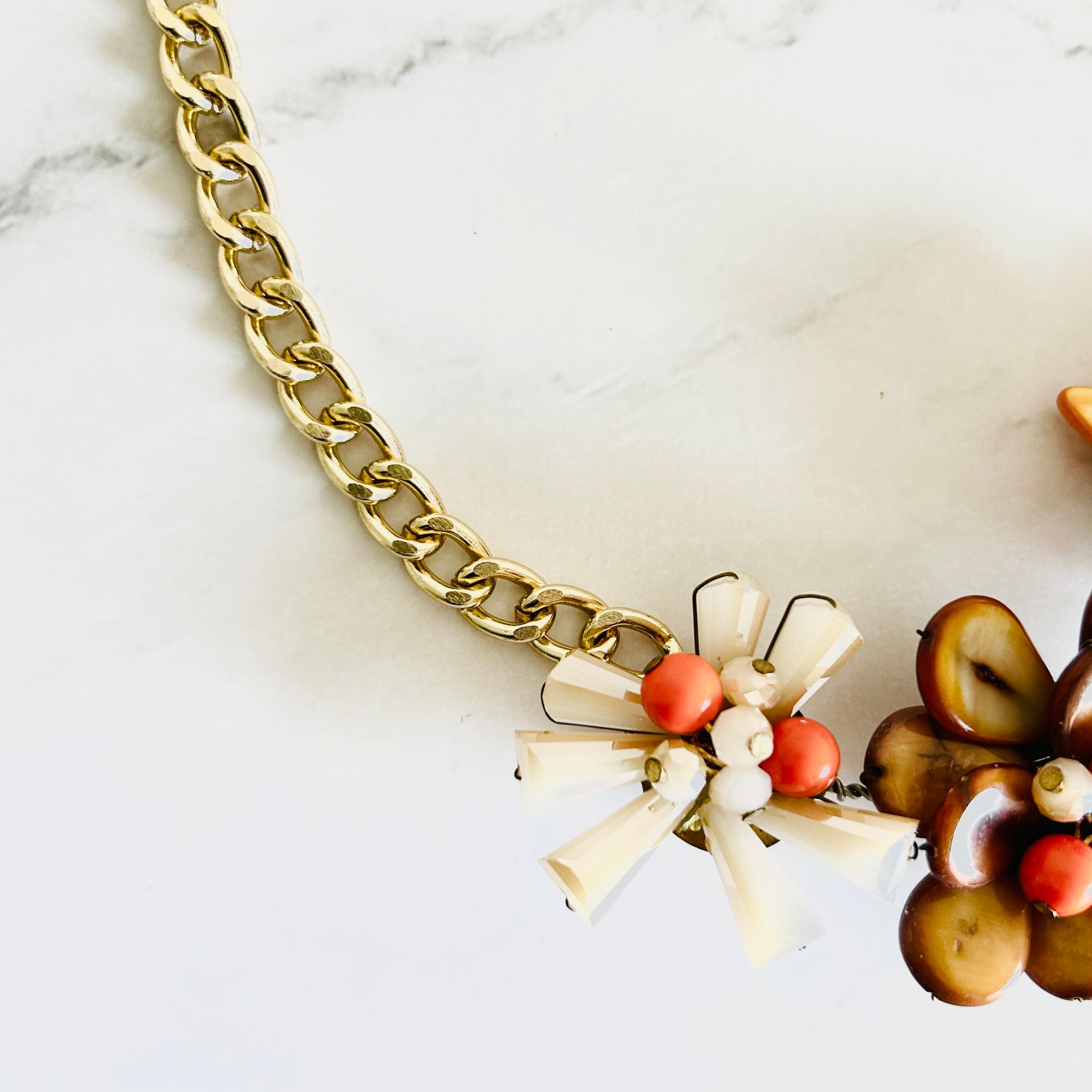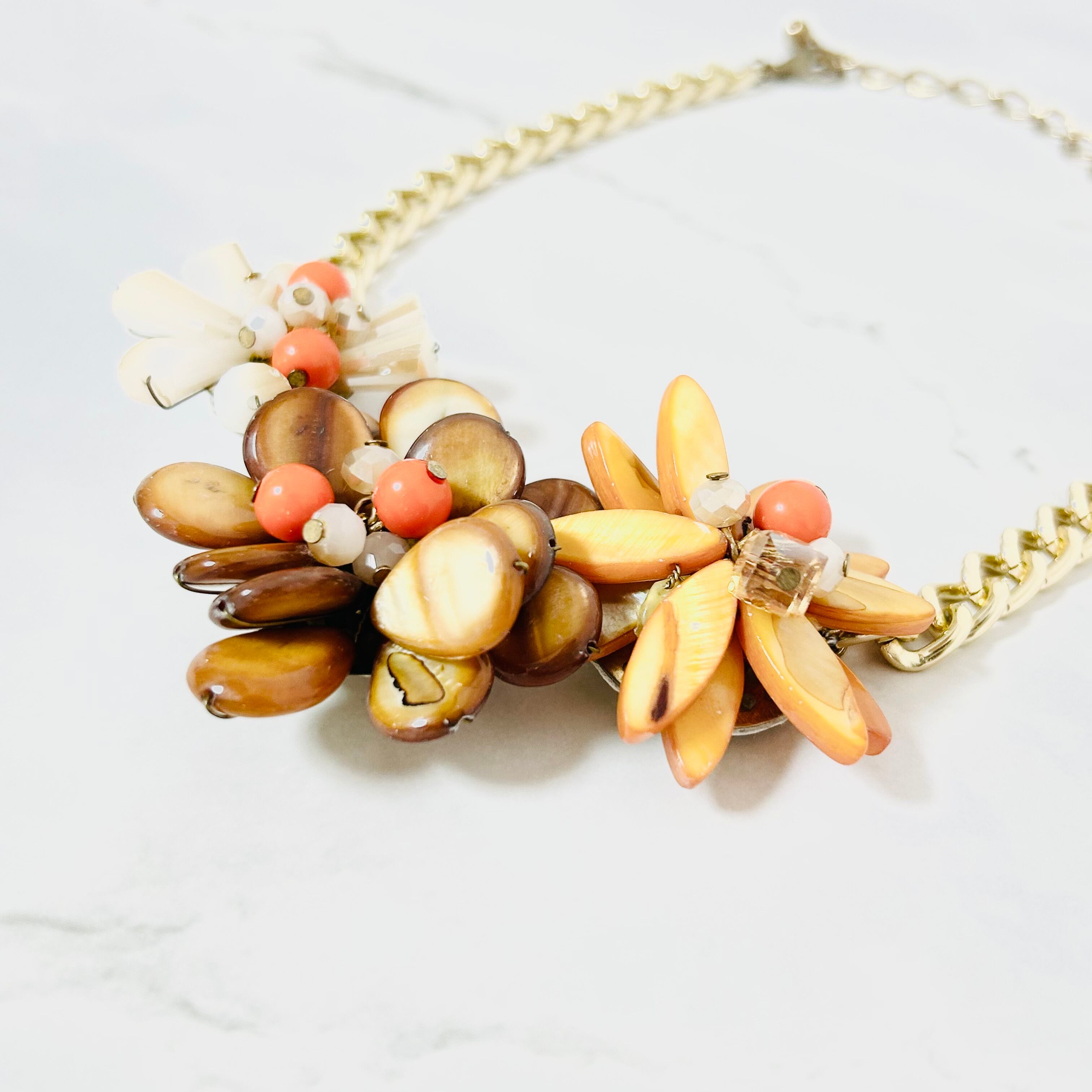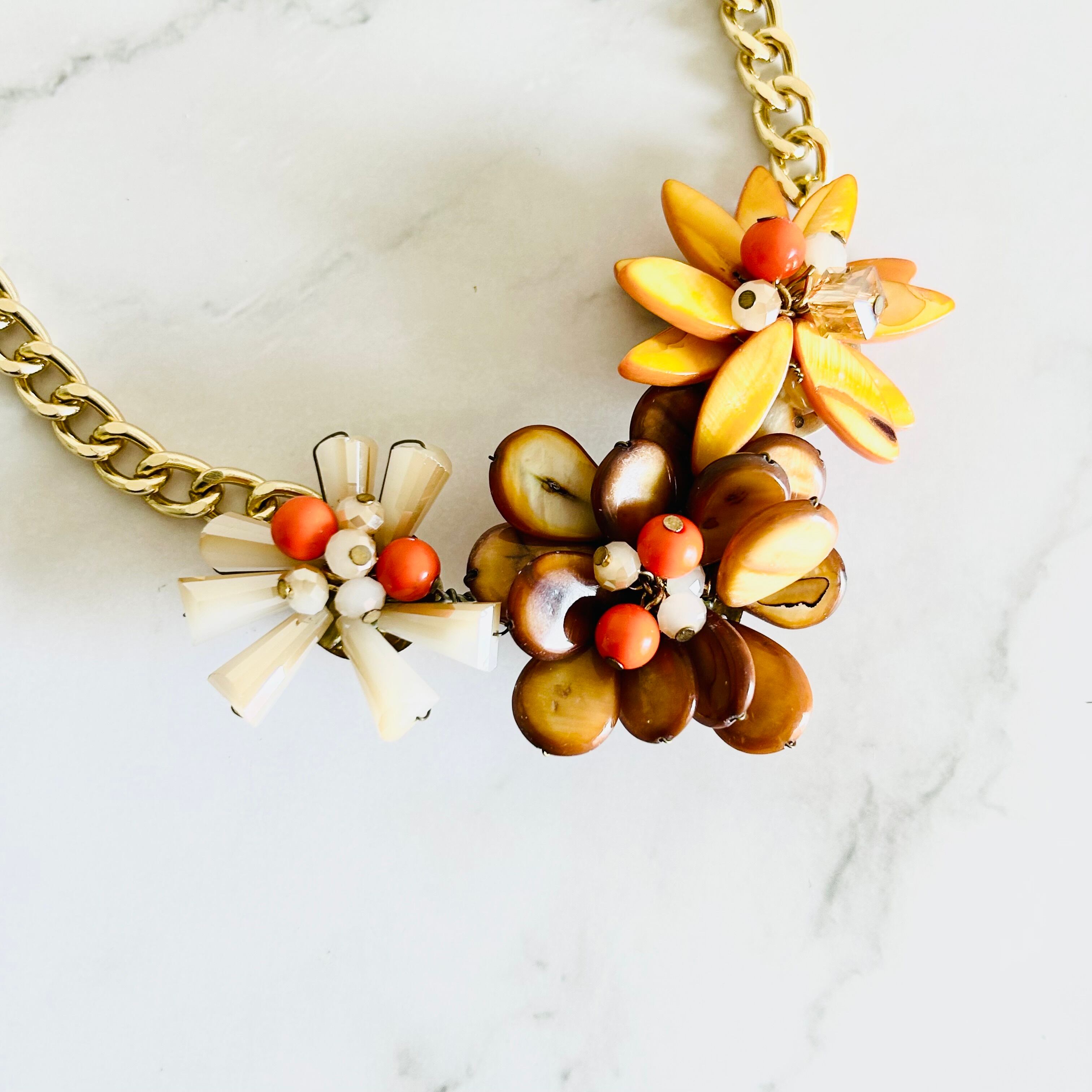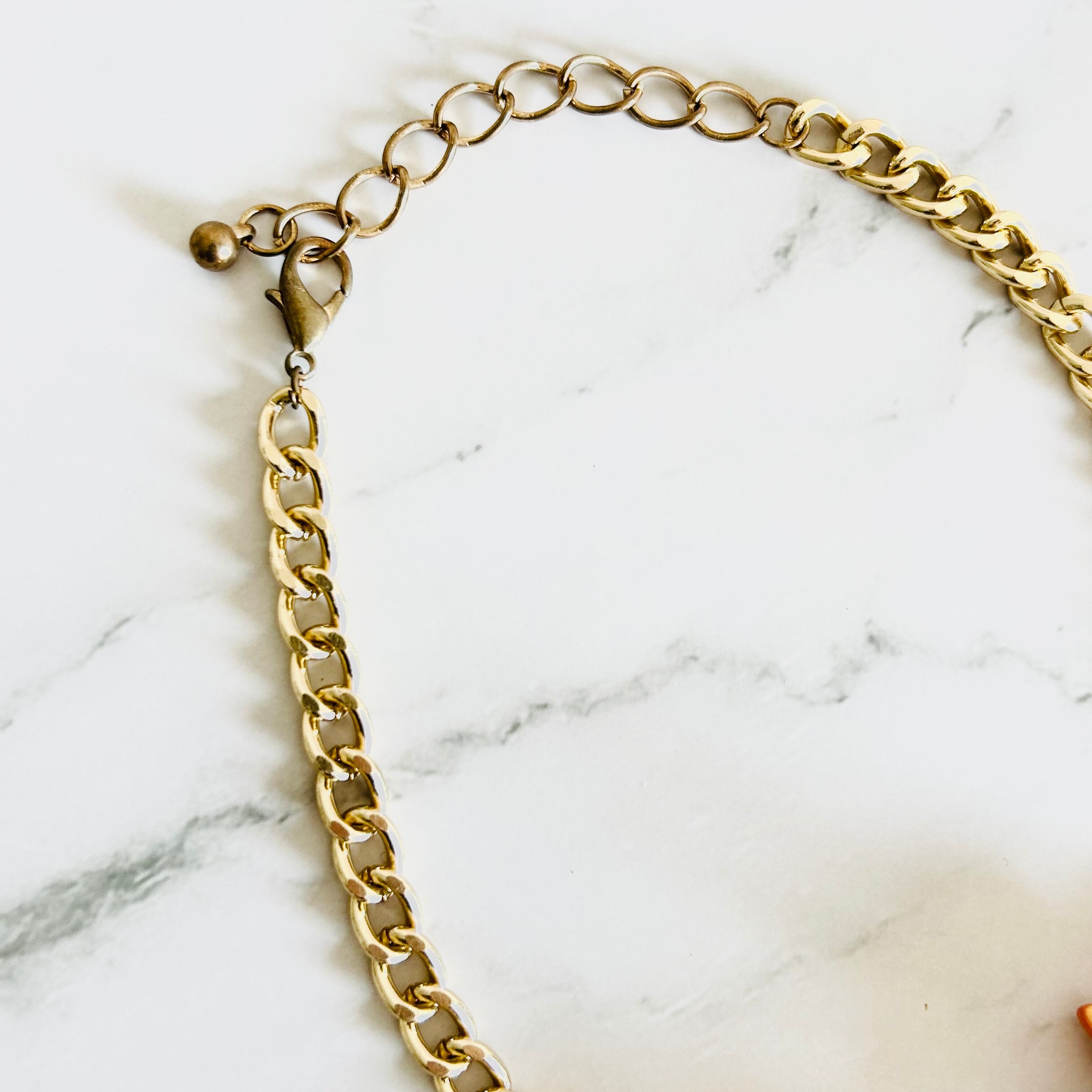 オレンジ系✖️アンティークゴールドカラーのネックレスです。