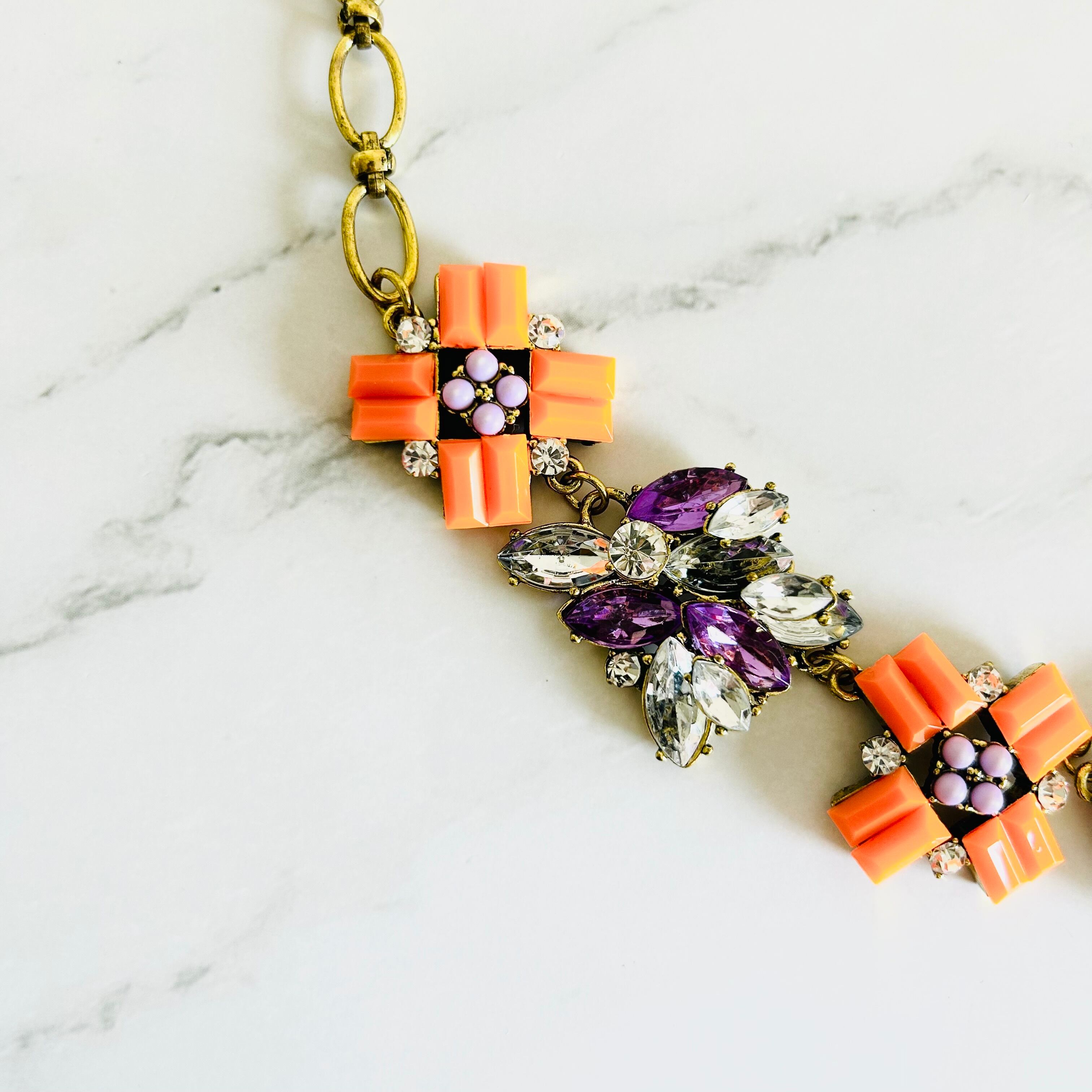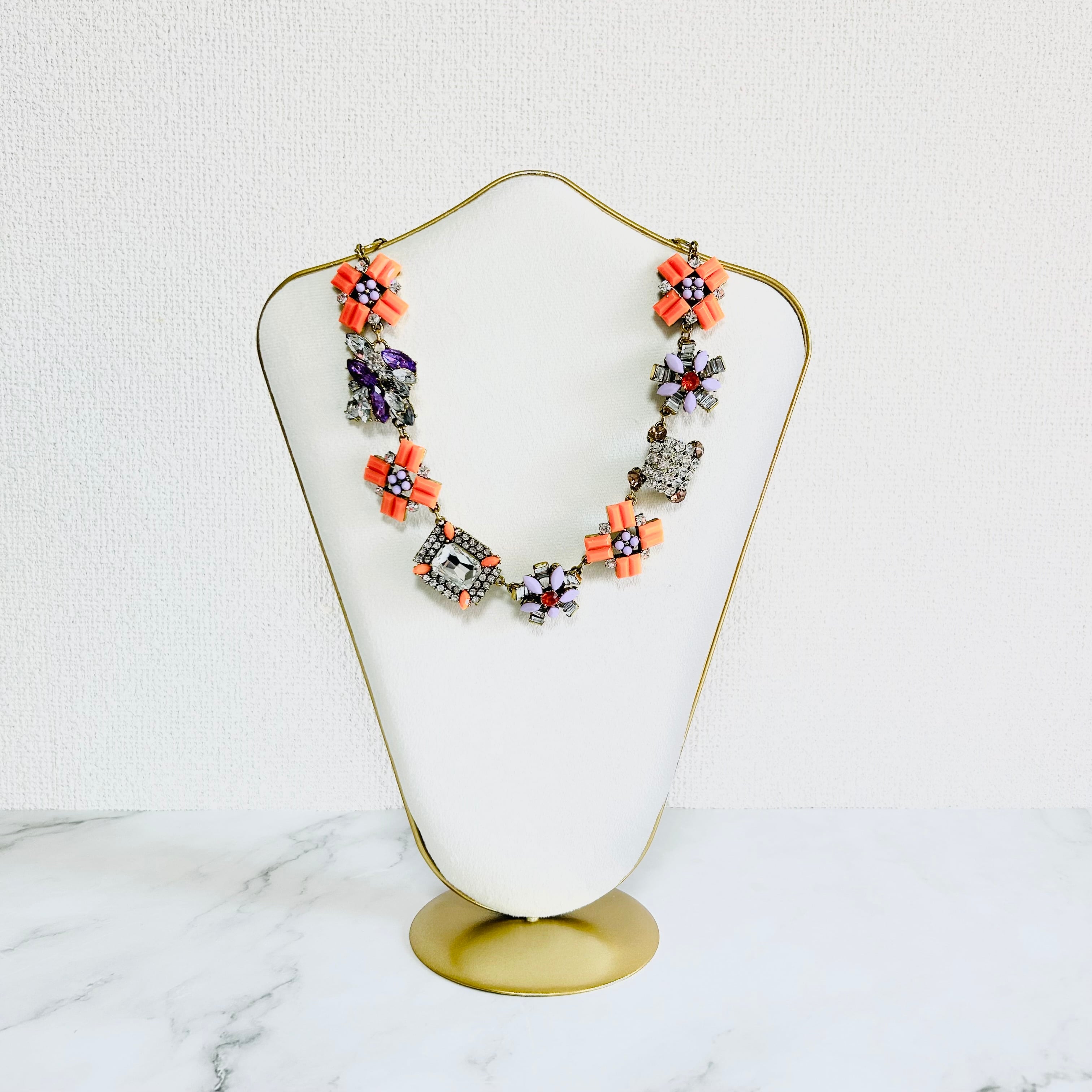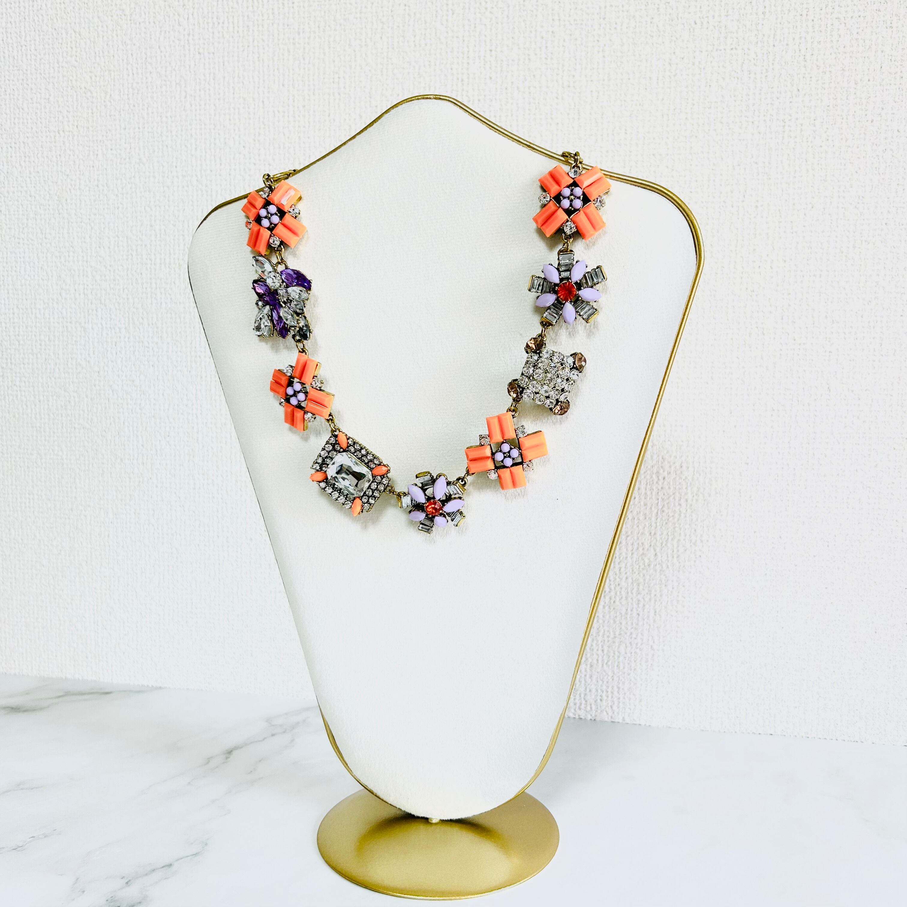 オレンジ、パープル、クリスタル✖️アンティークゴールドカラーのネックレスです。