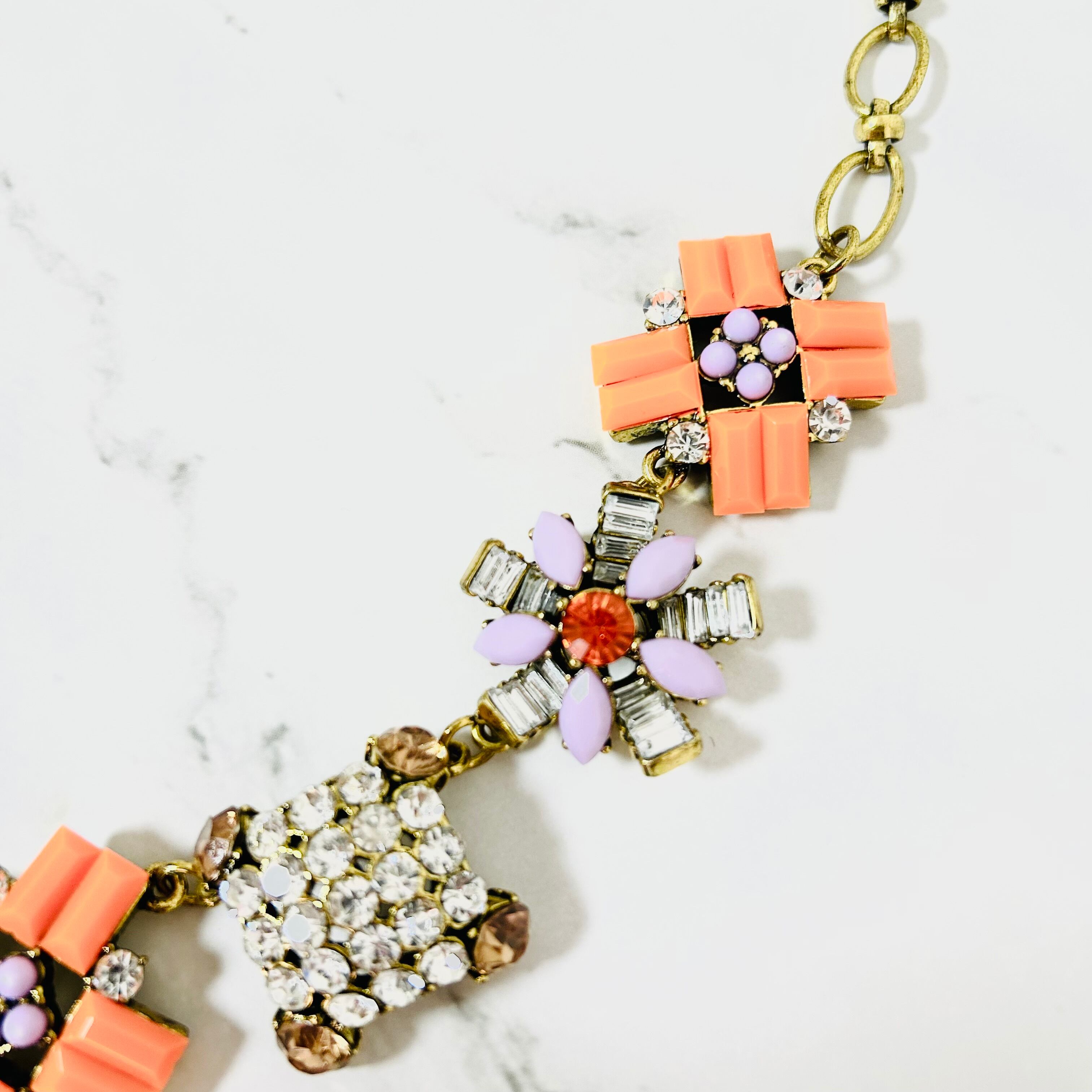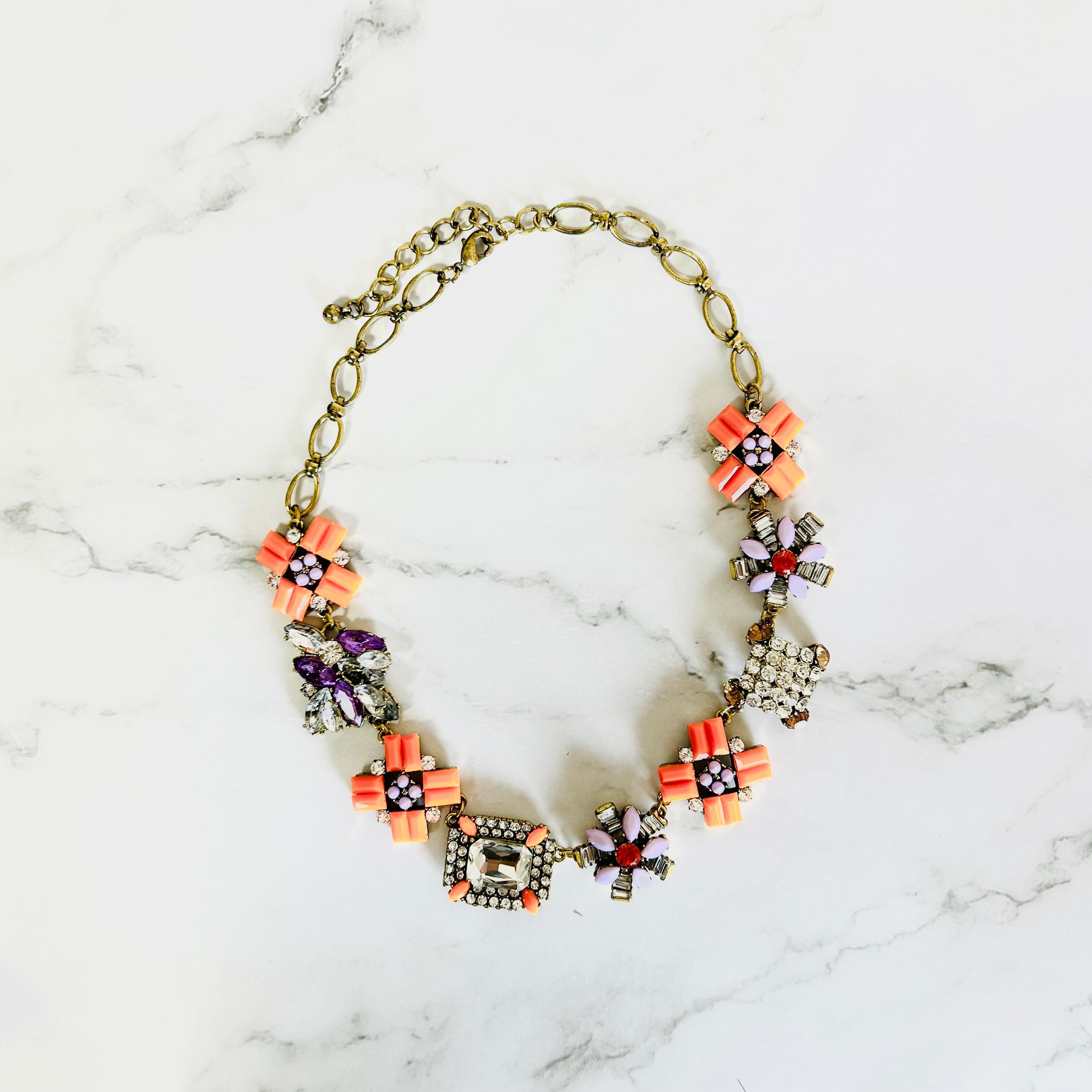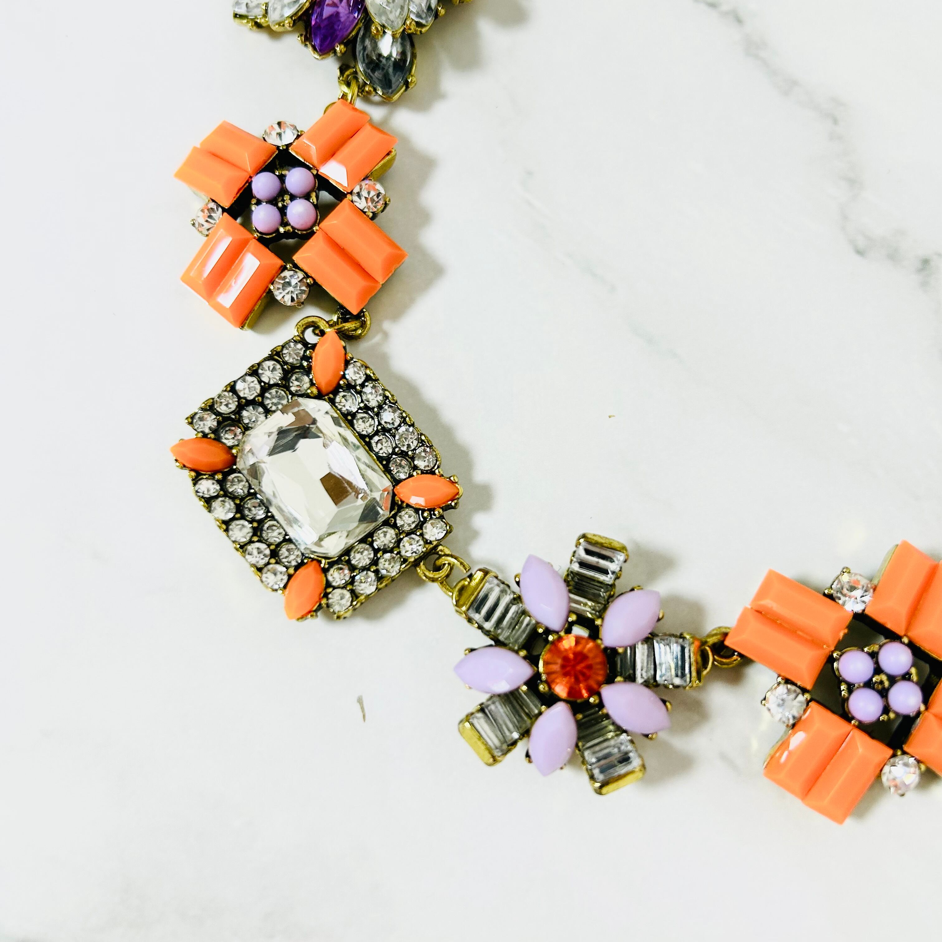オレンジ、パープル、クリスタル✖️アンティークゴールドカラーのネックレスです。