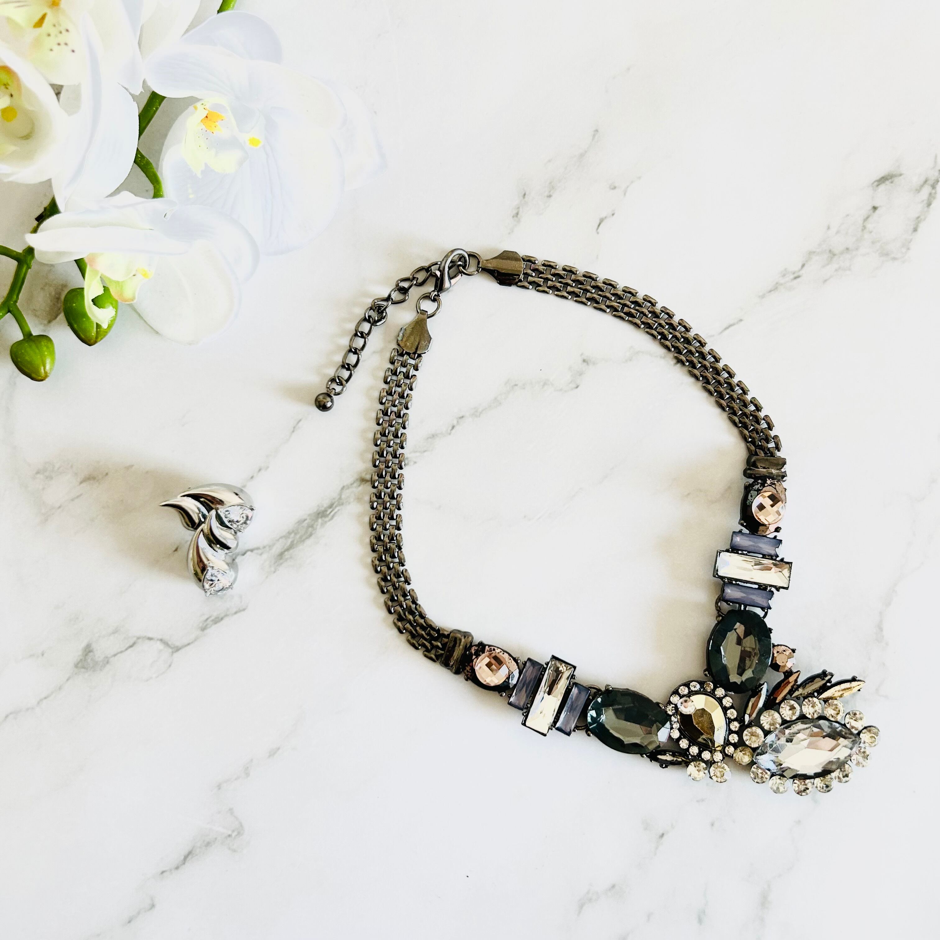 落ち着いたカラーリングで付けるシーン選ばず、 日常の大人カジュアルから、結婚式のおよばれや華やかなパーティーにもお使いいただけるゴージャス感✨