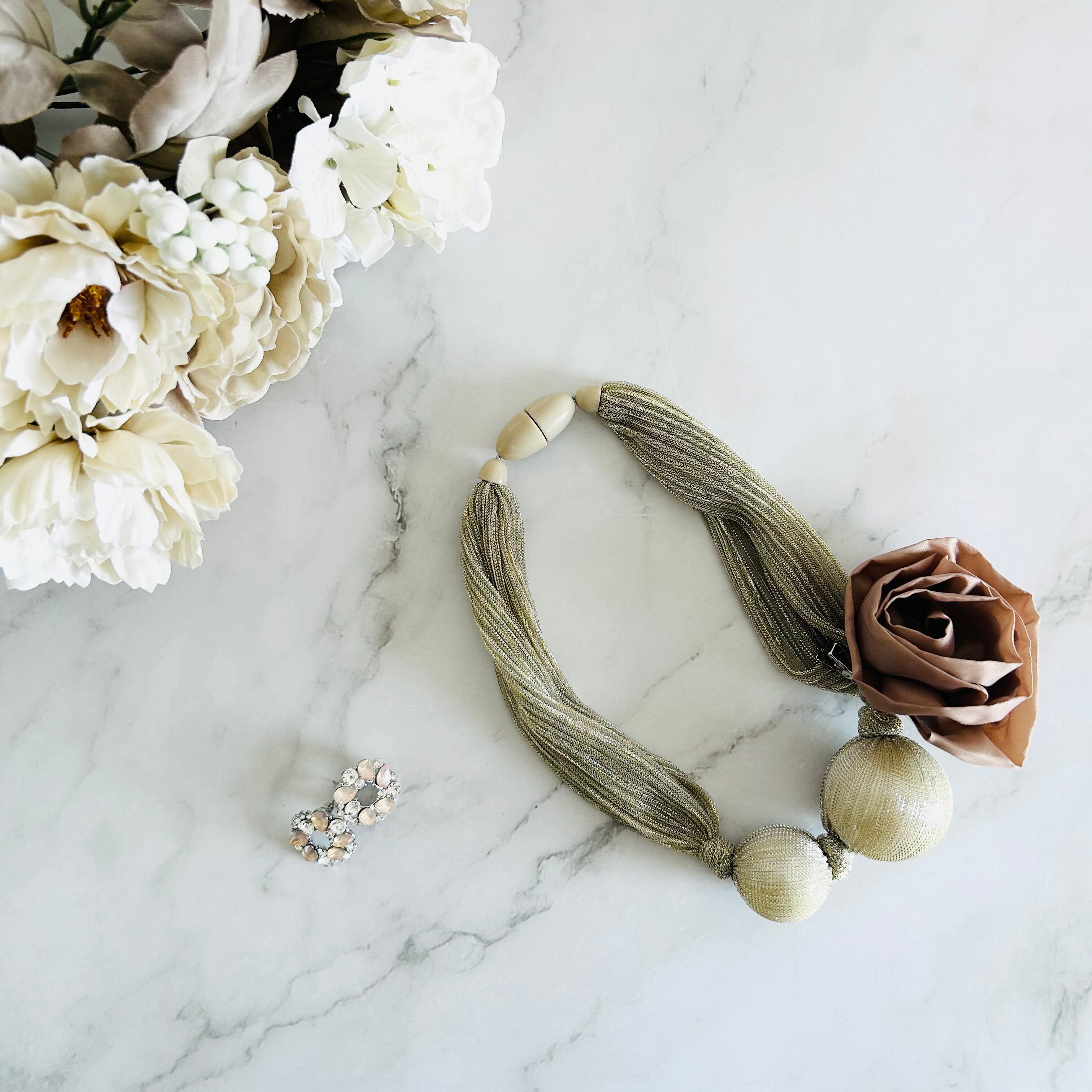 シャンパンゴールド✖️ブラウンカラーのネックレスです。