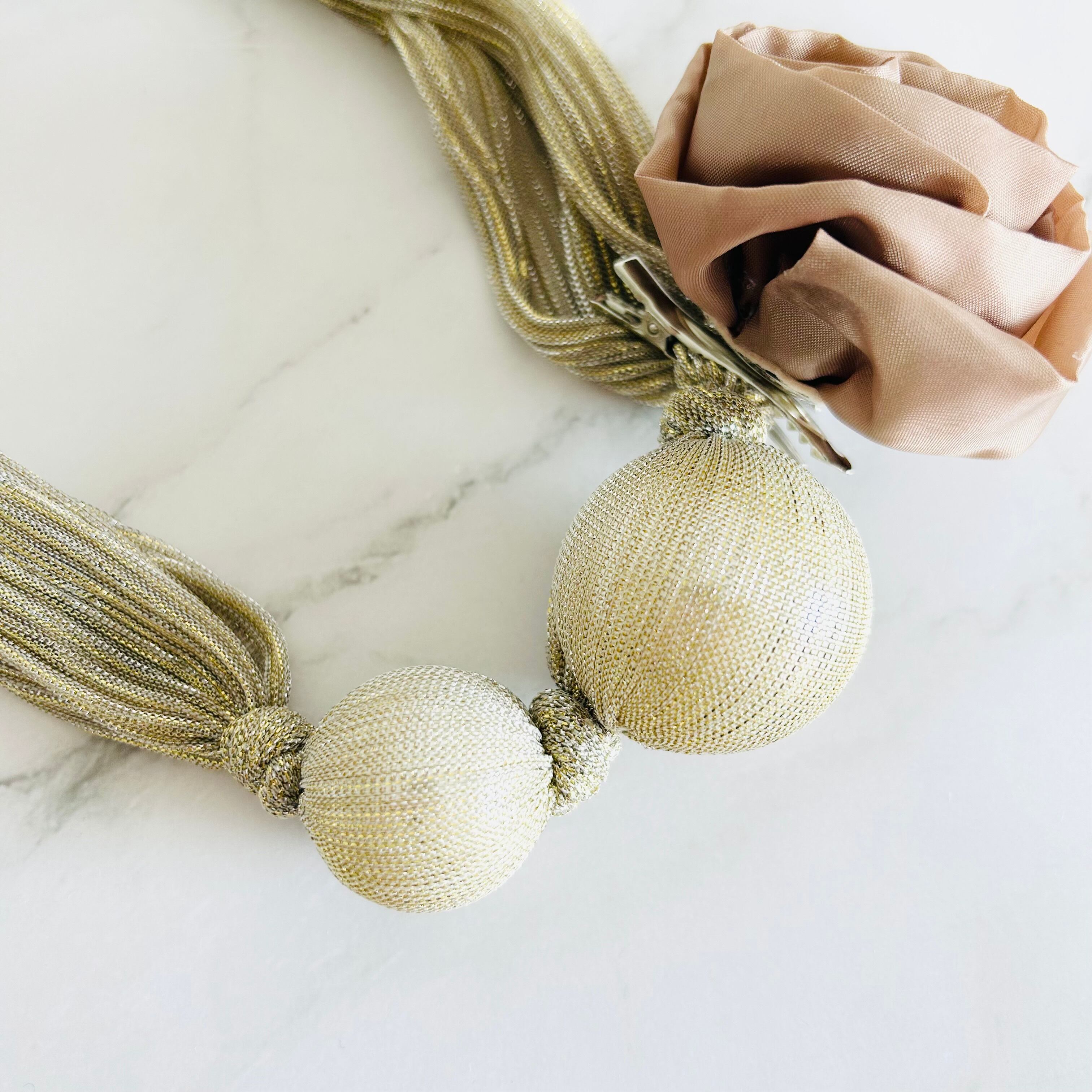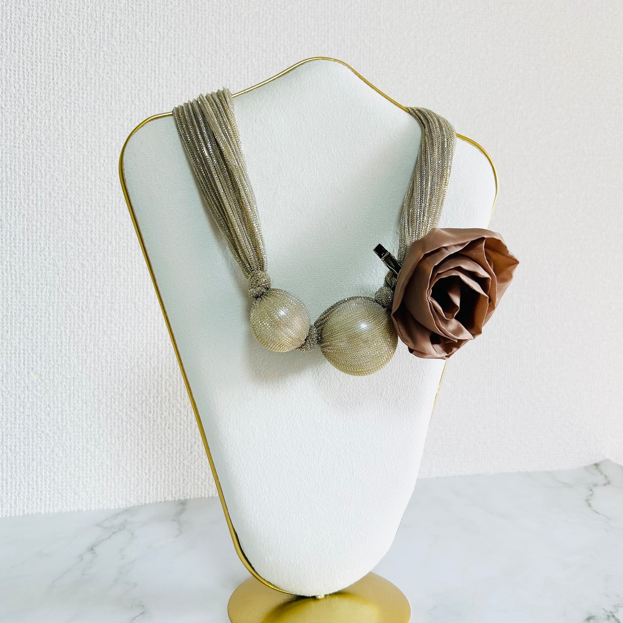 ニットやカットソーのワンポイントとしてプラスしたり、華やかなシーンでワンピースと合わせても映える万能アイテム!