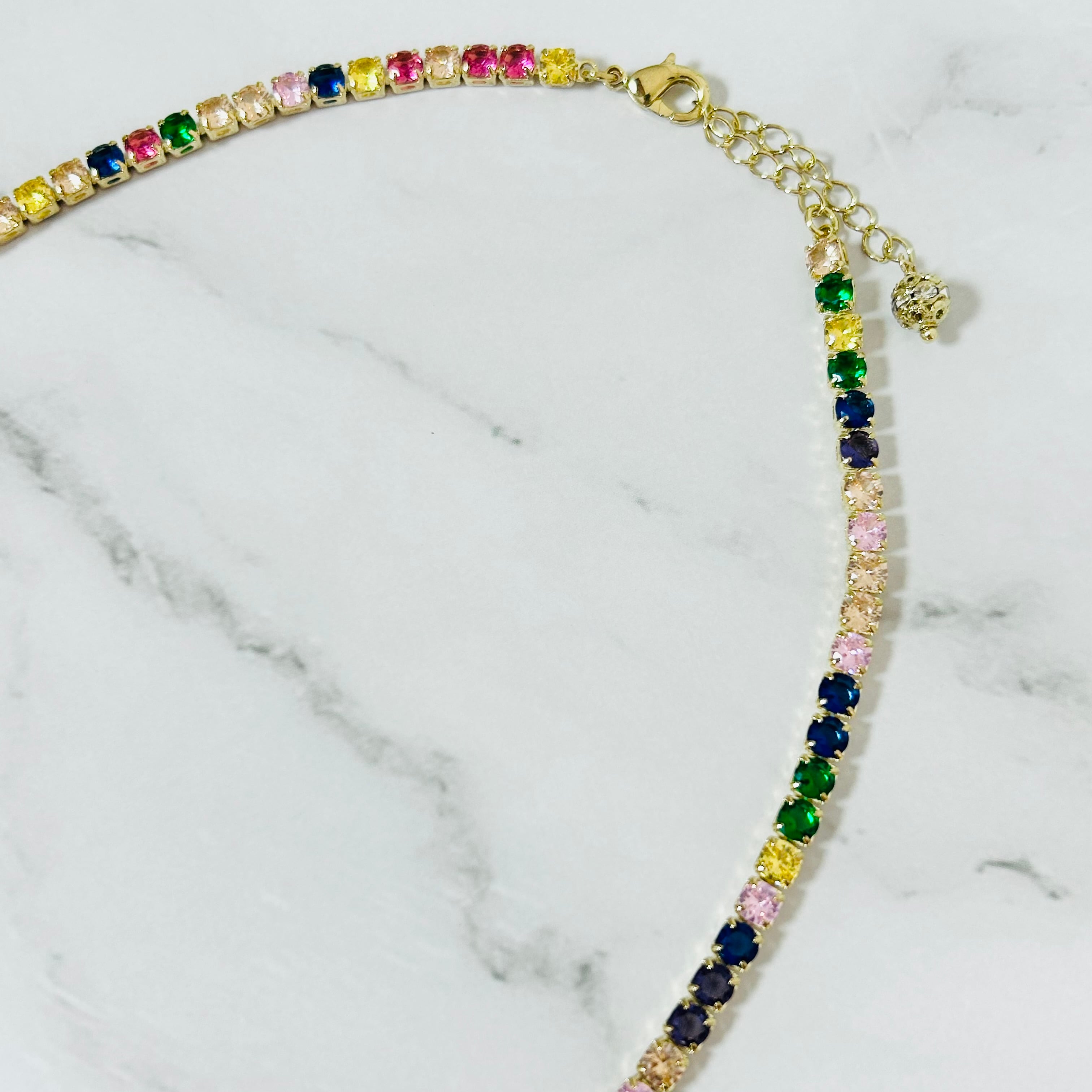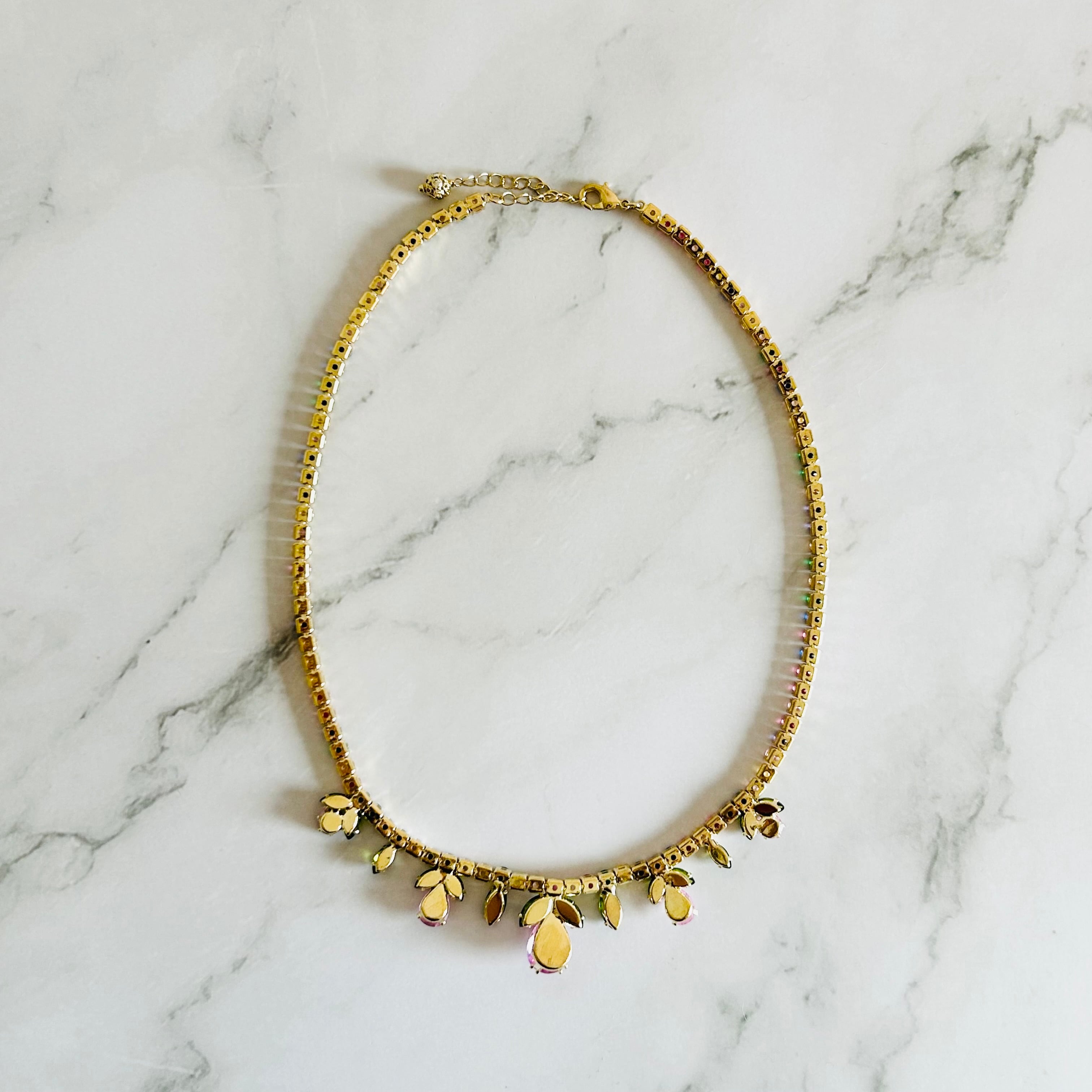 マルチカラー✖️ゴールドカラーのネックレス&ピアスセットです。