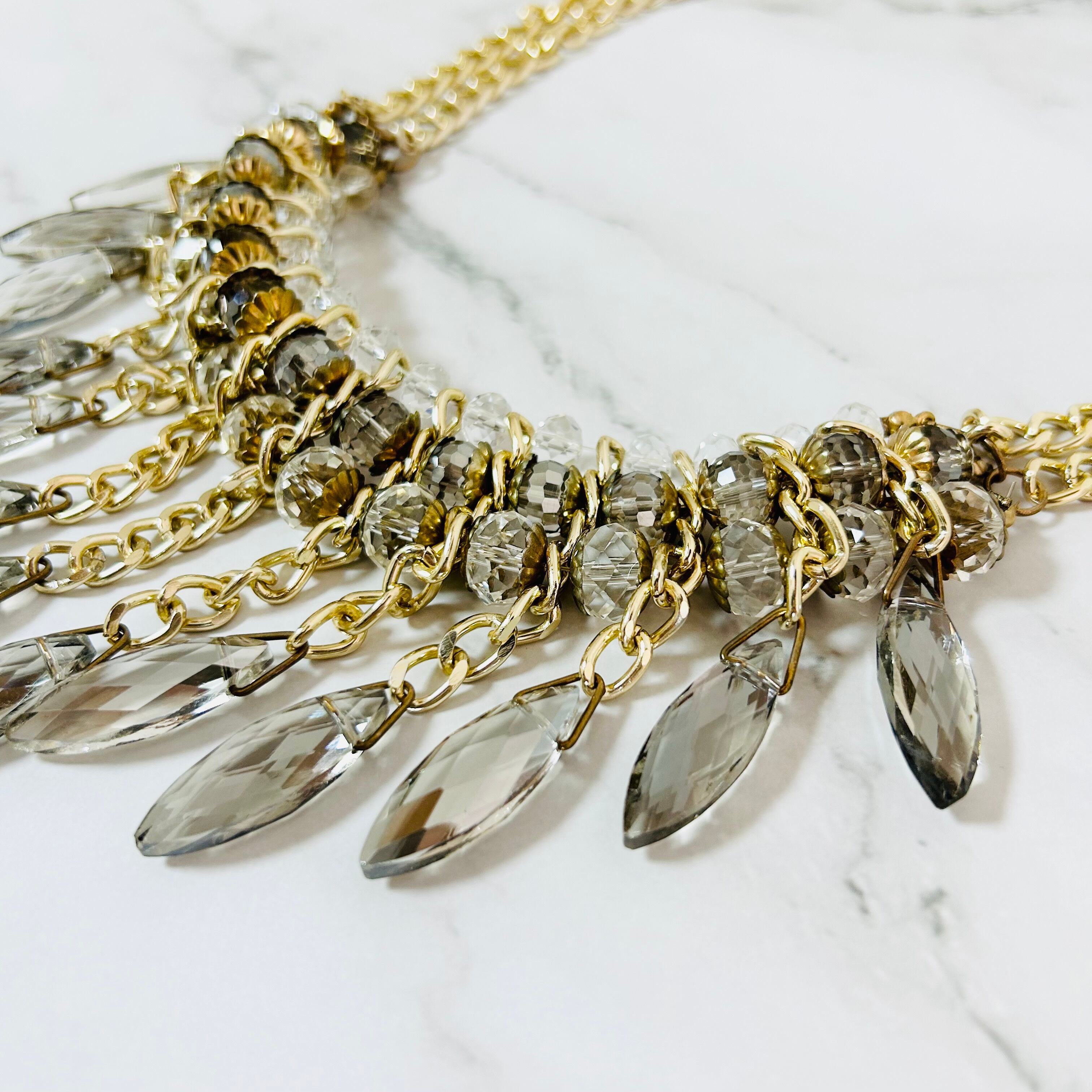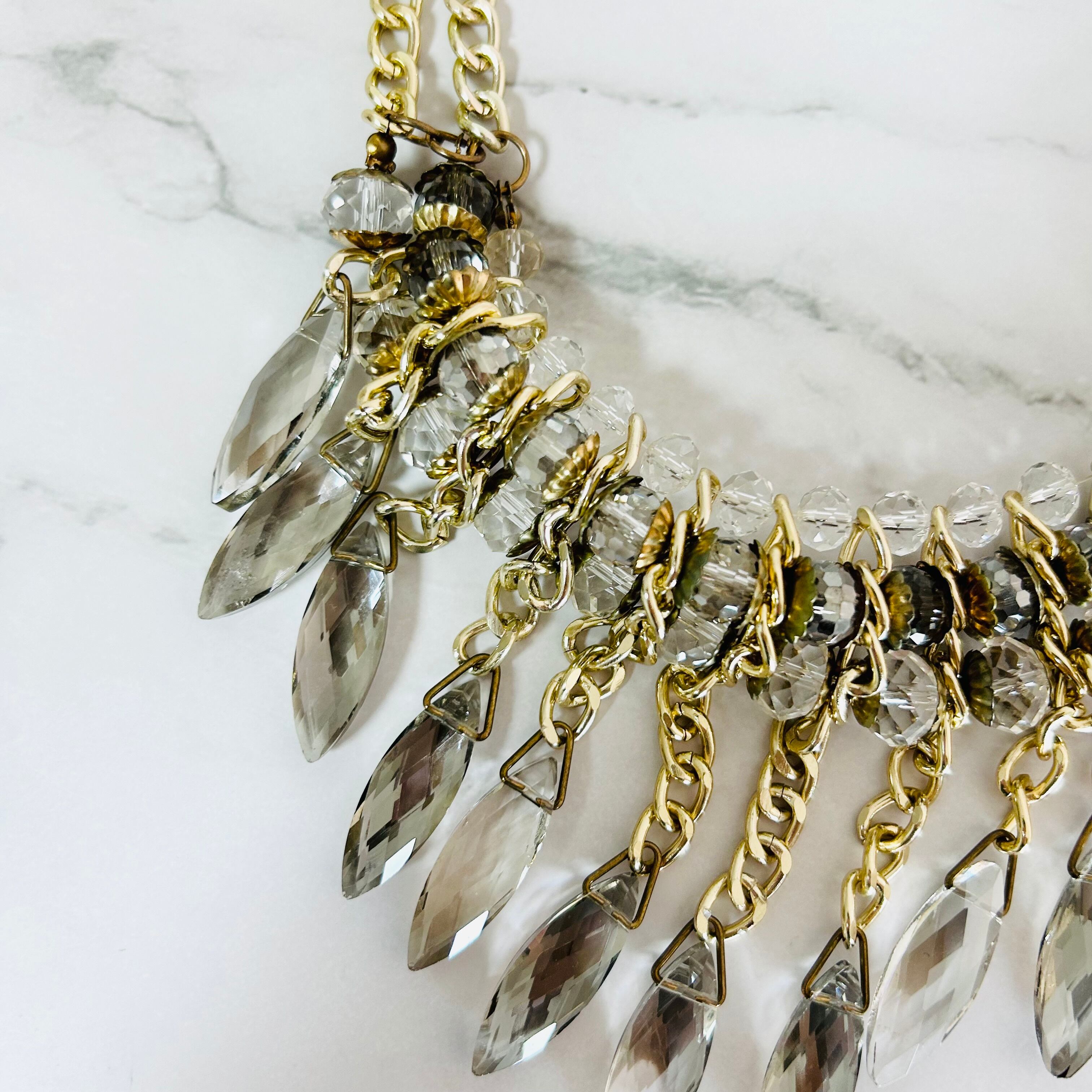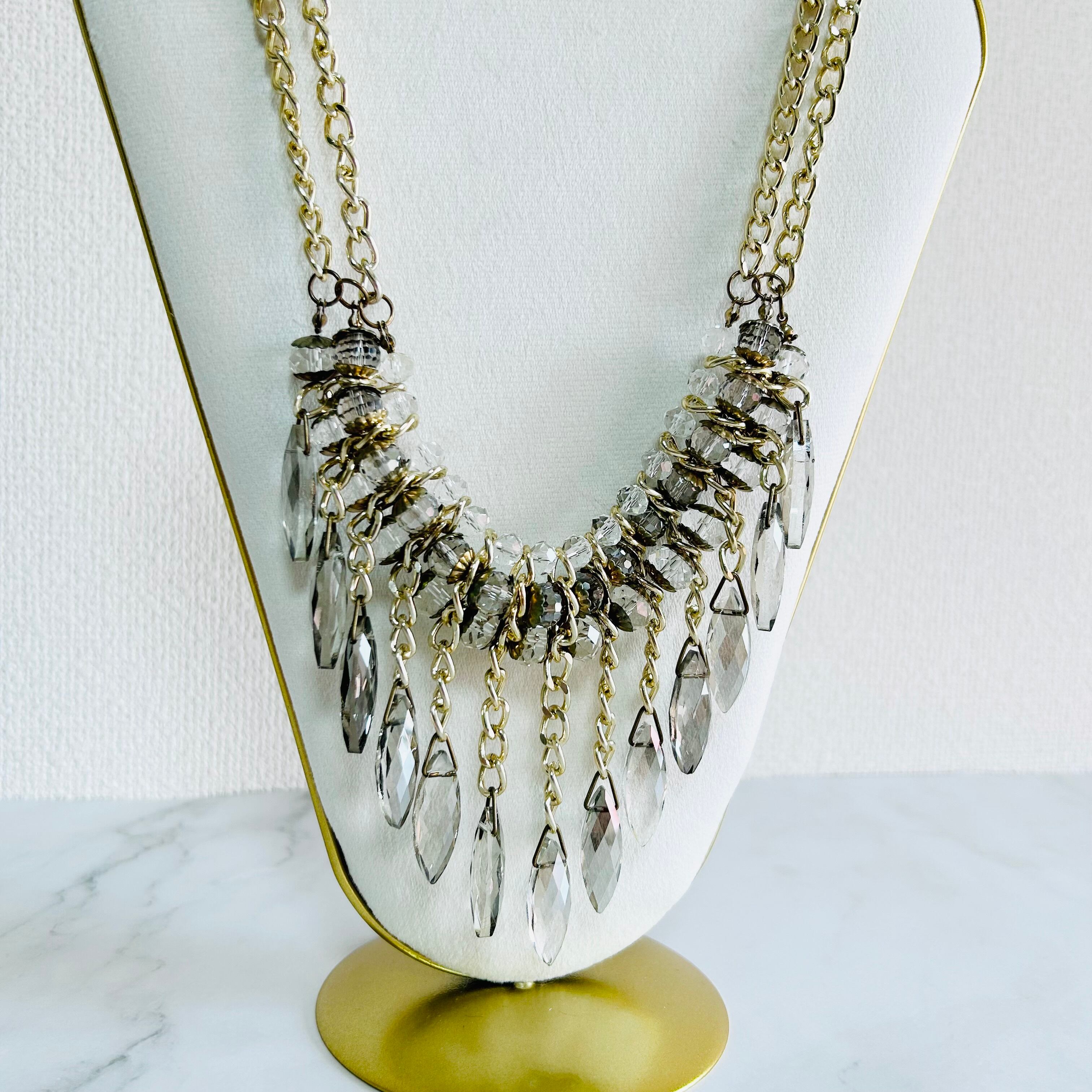 ベージュ系、クリスタル✖️ゴールドカラーのネックレスです。
