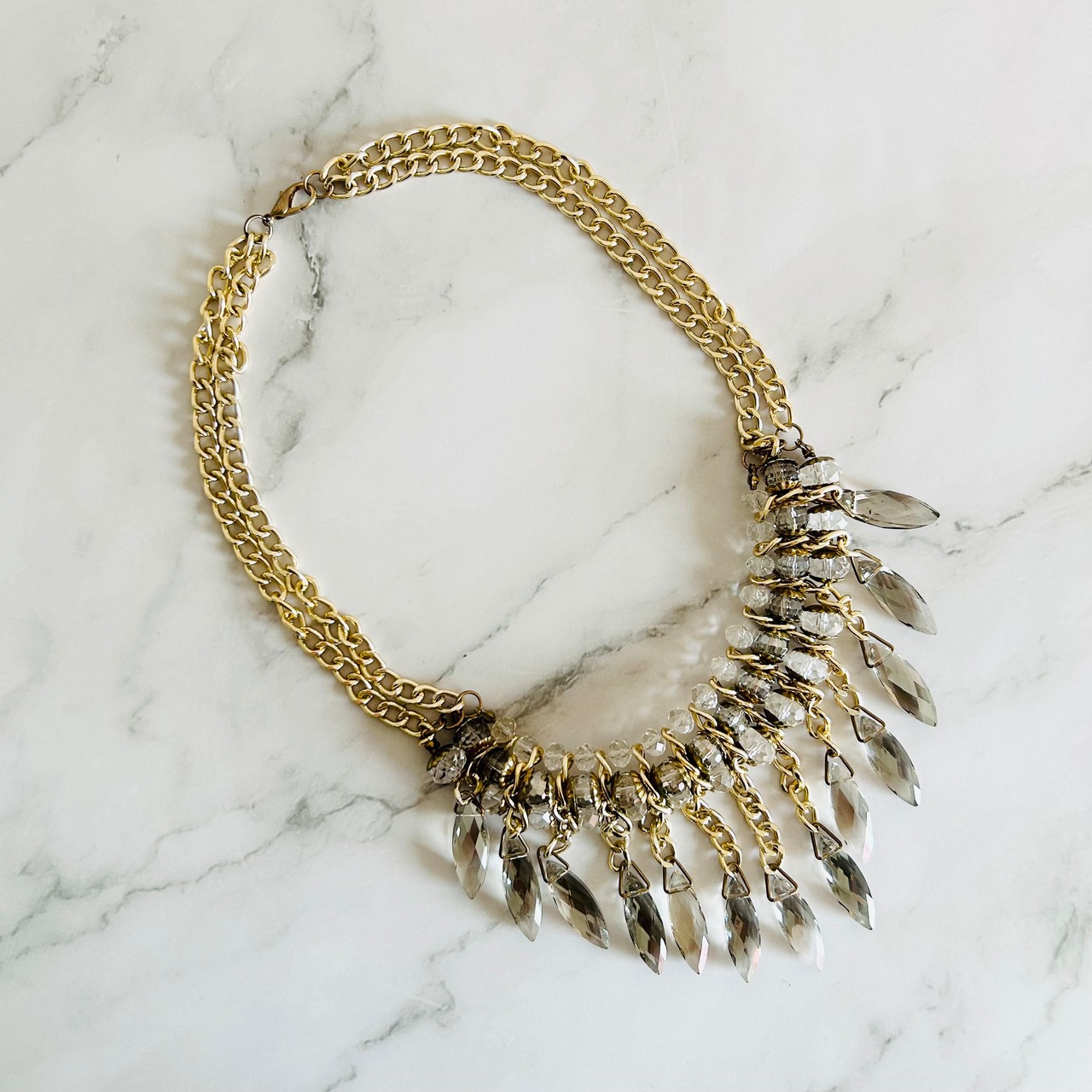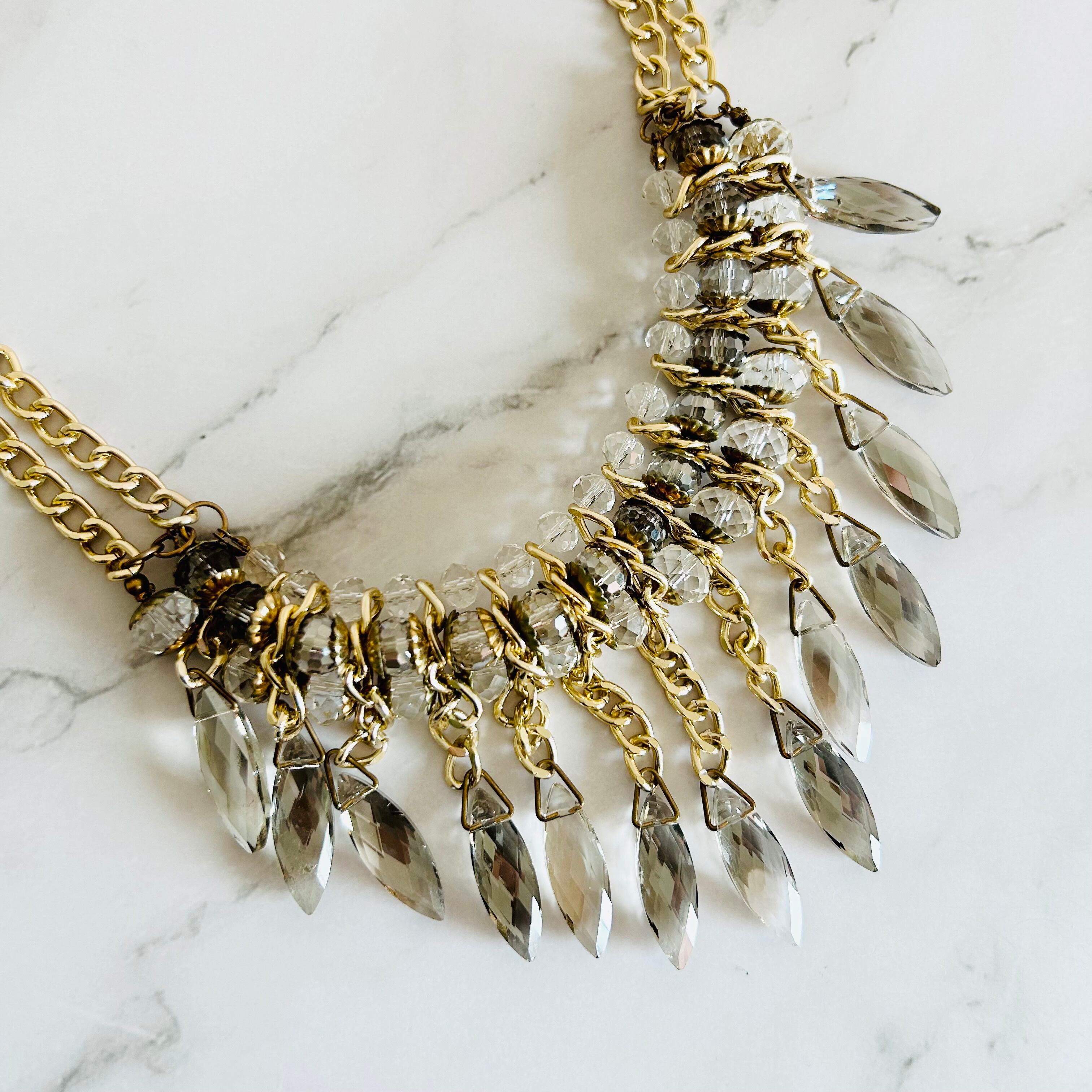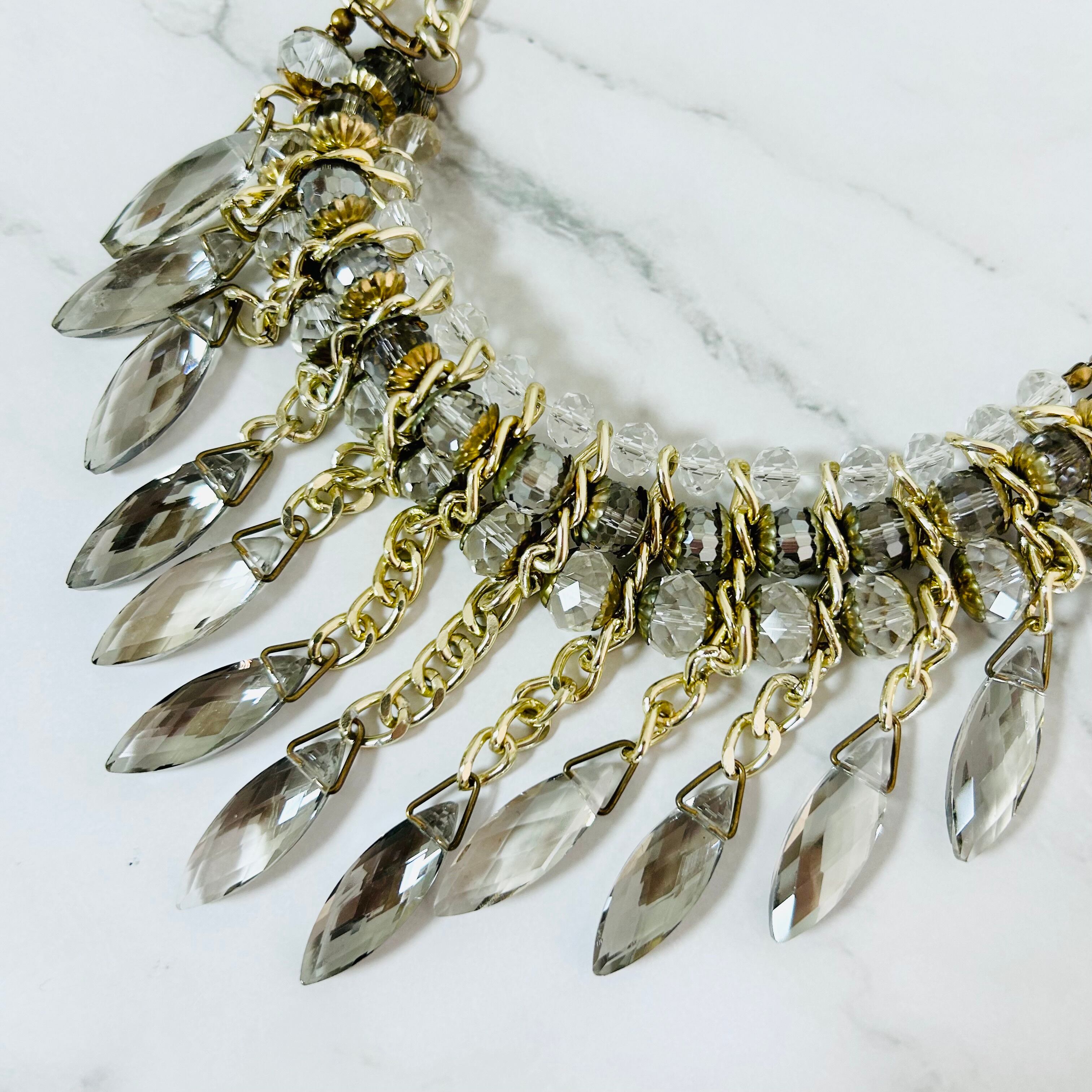 ベージュ系、クリスタル✖️ゴールドカラーのネックレスです。