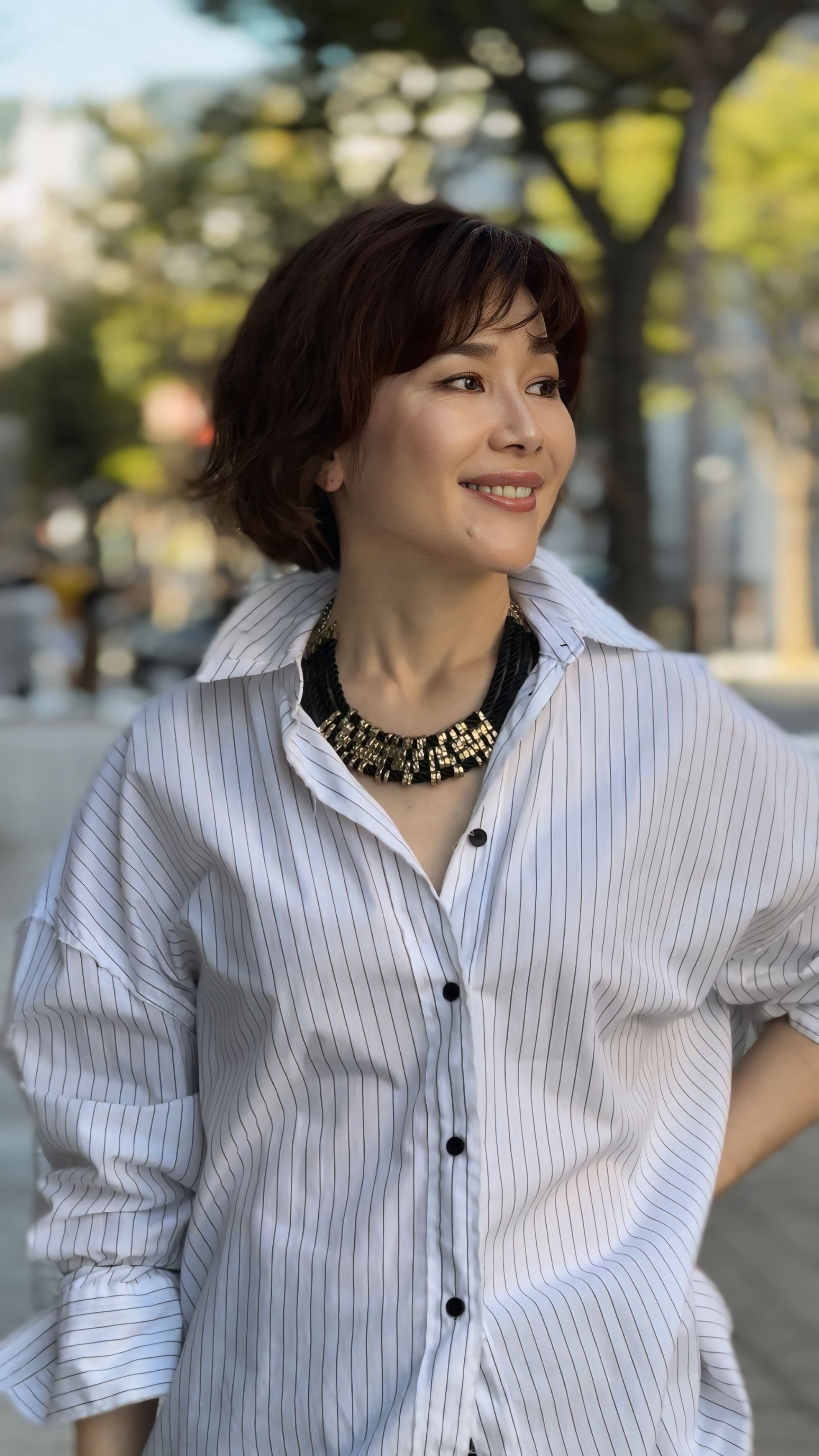 合わせやすいデザインはシャツやニット、ワンピースなどさまざまなアイテムで楽しんでいただけるアイテムです。