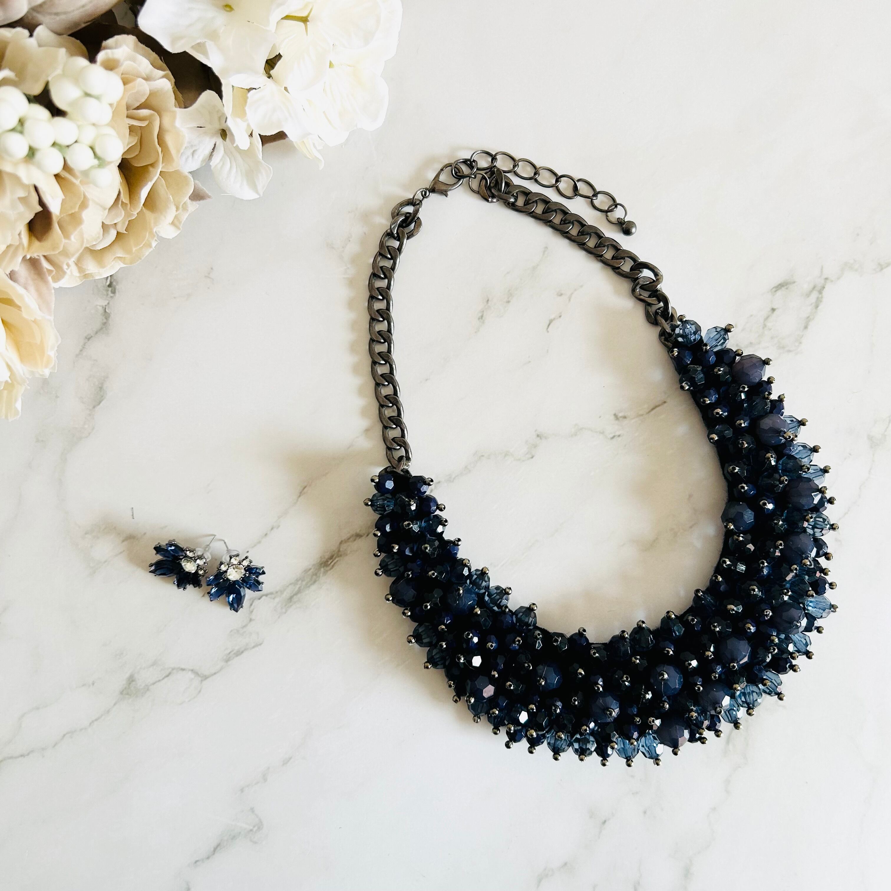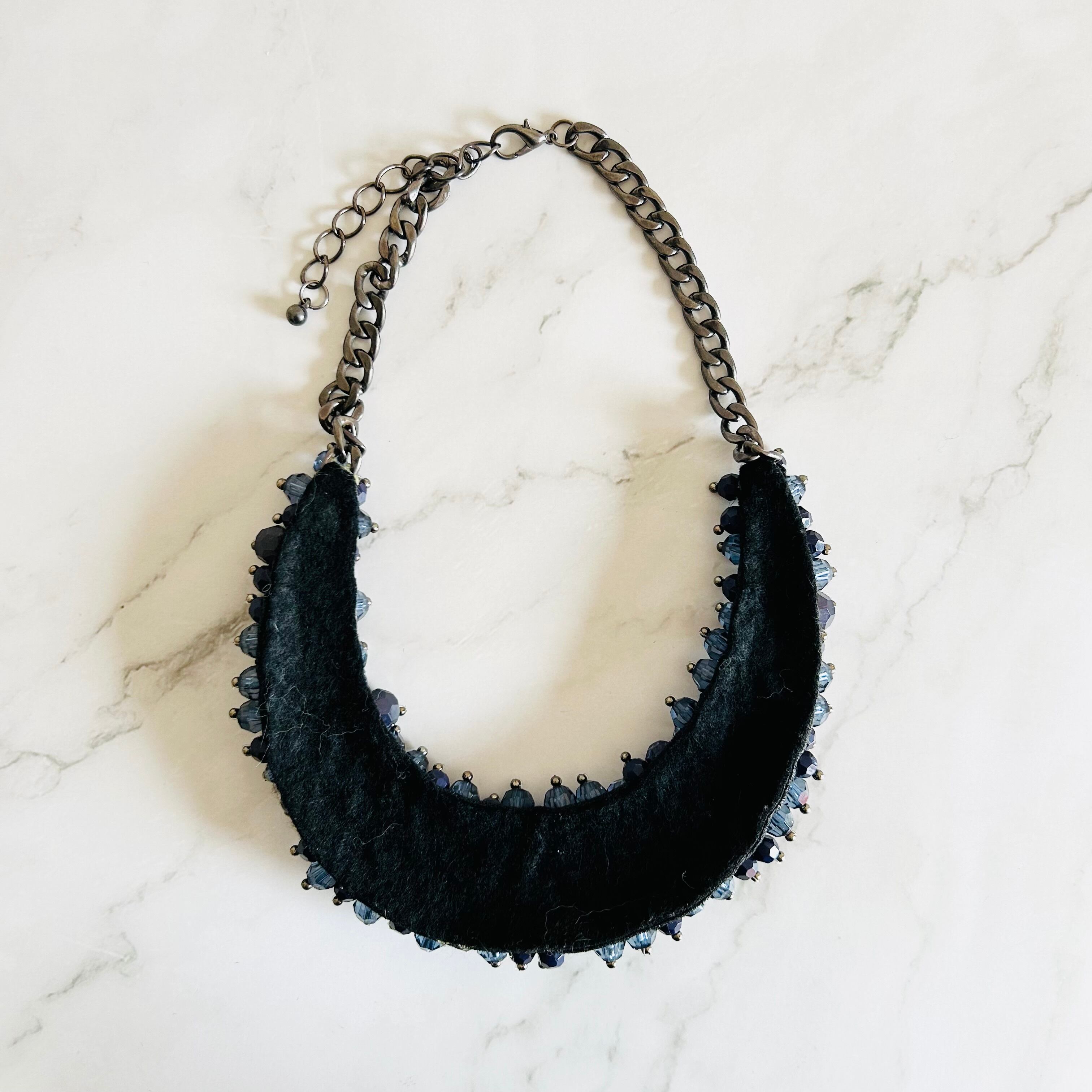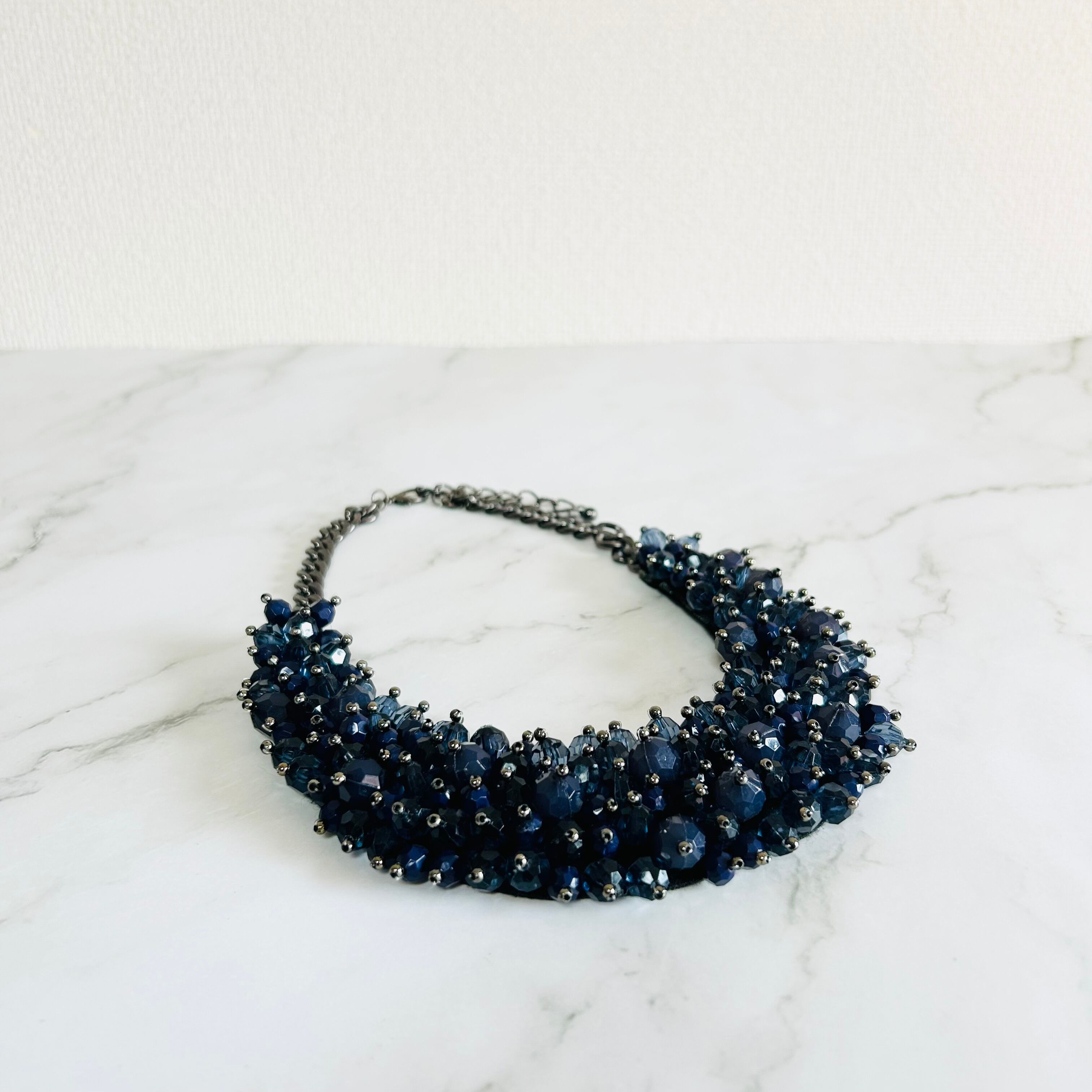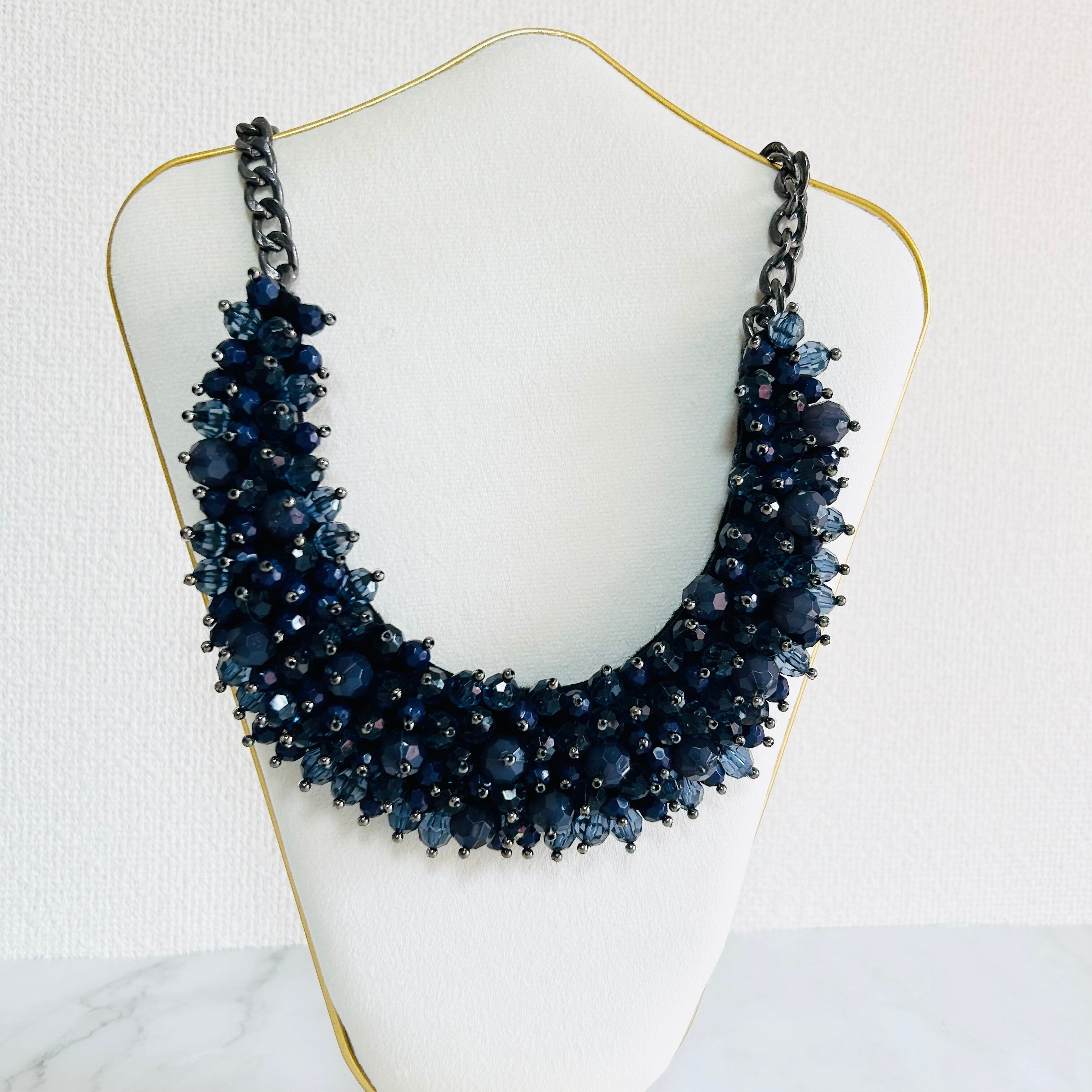 ダークネイビー✖️ブラックメタルカラーのネックレスです。
