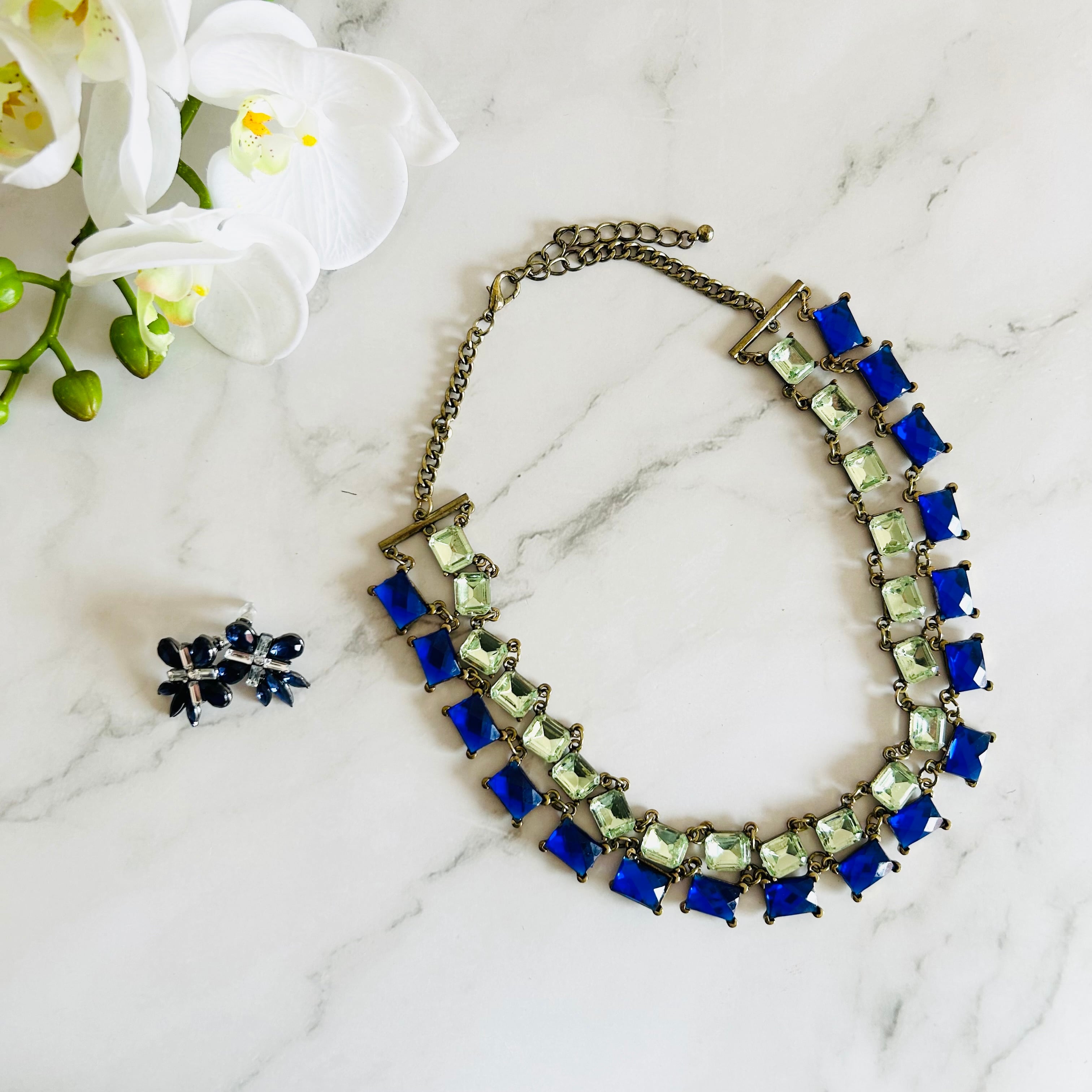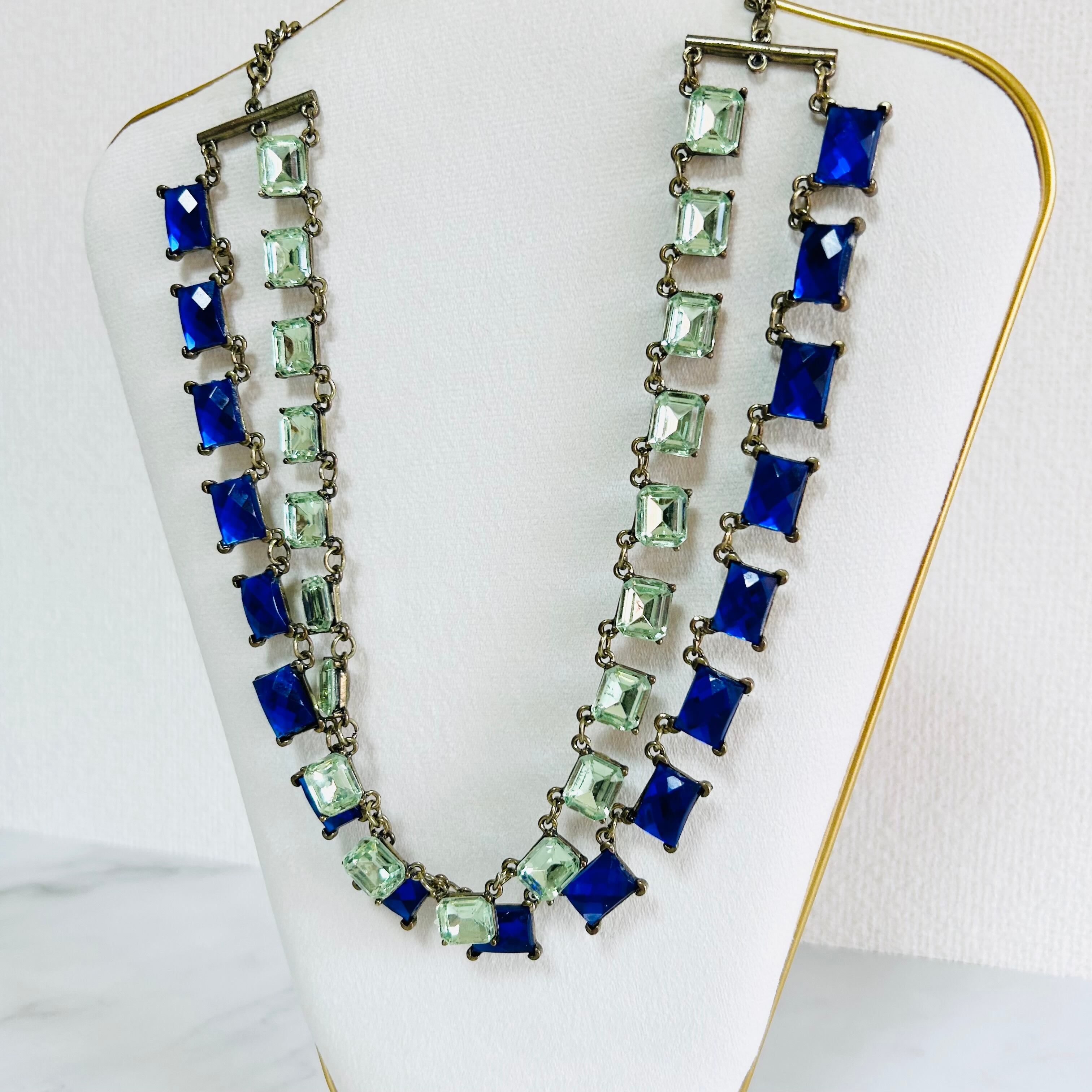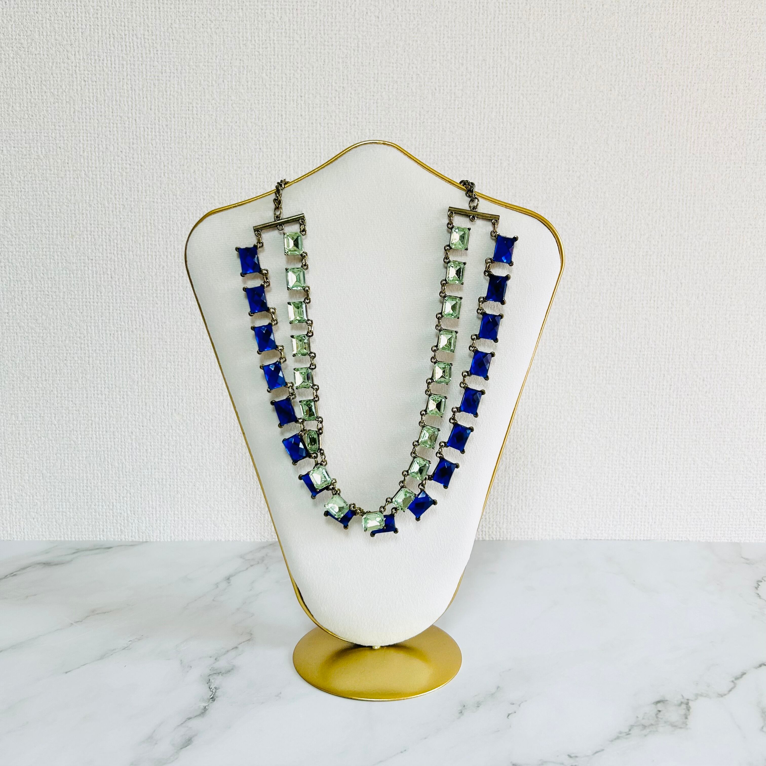 ブルー、ライトグリーン✖️アンティークゴールドカラーのネックレスです。