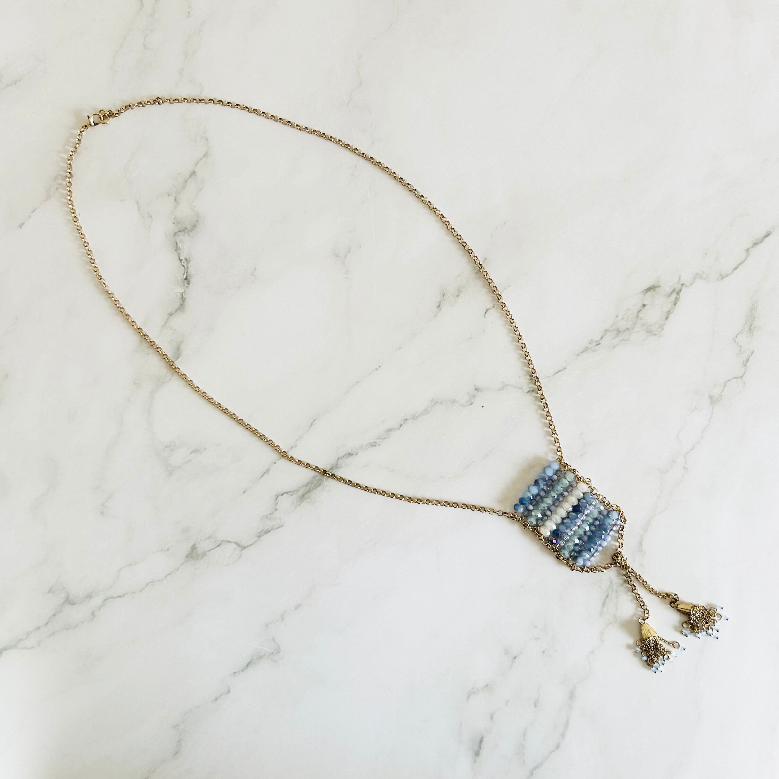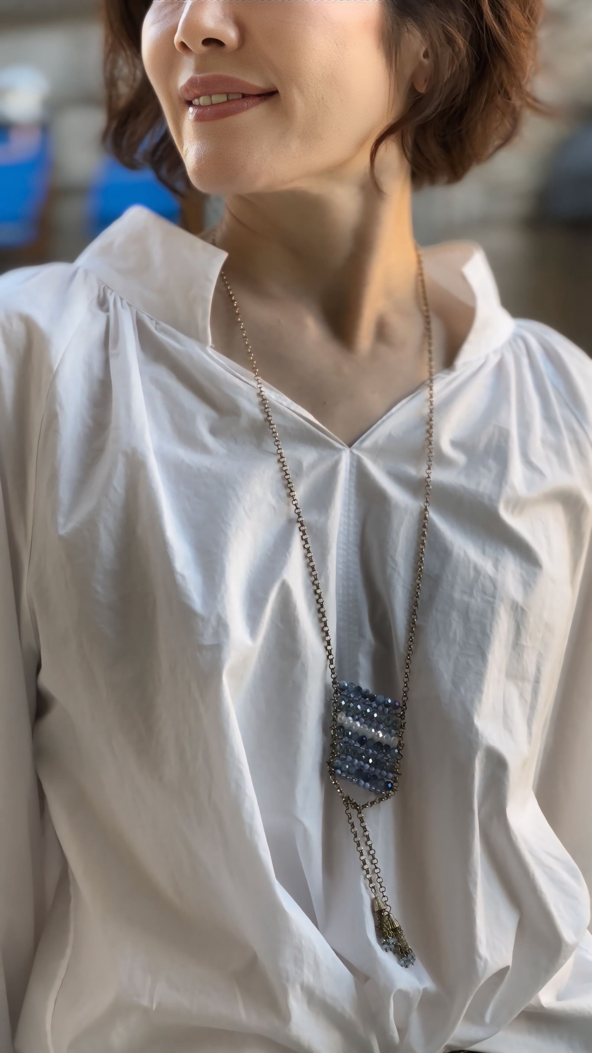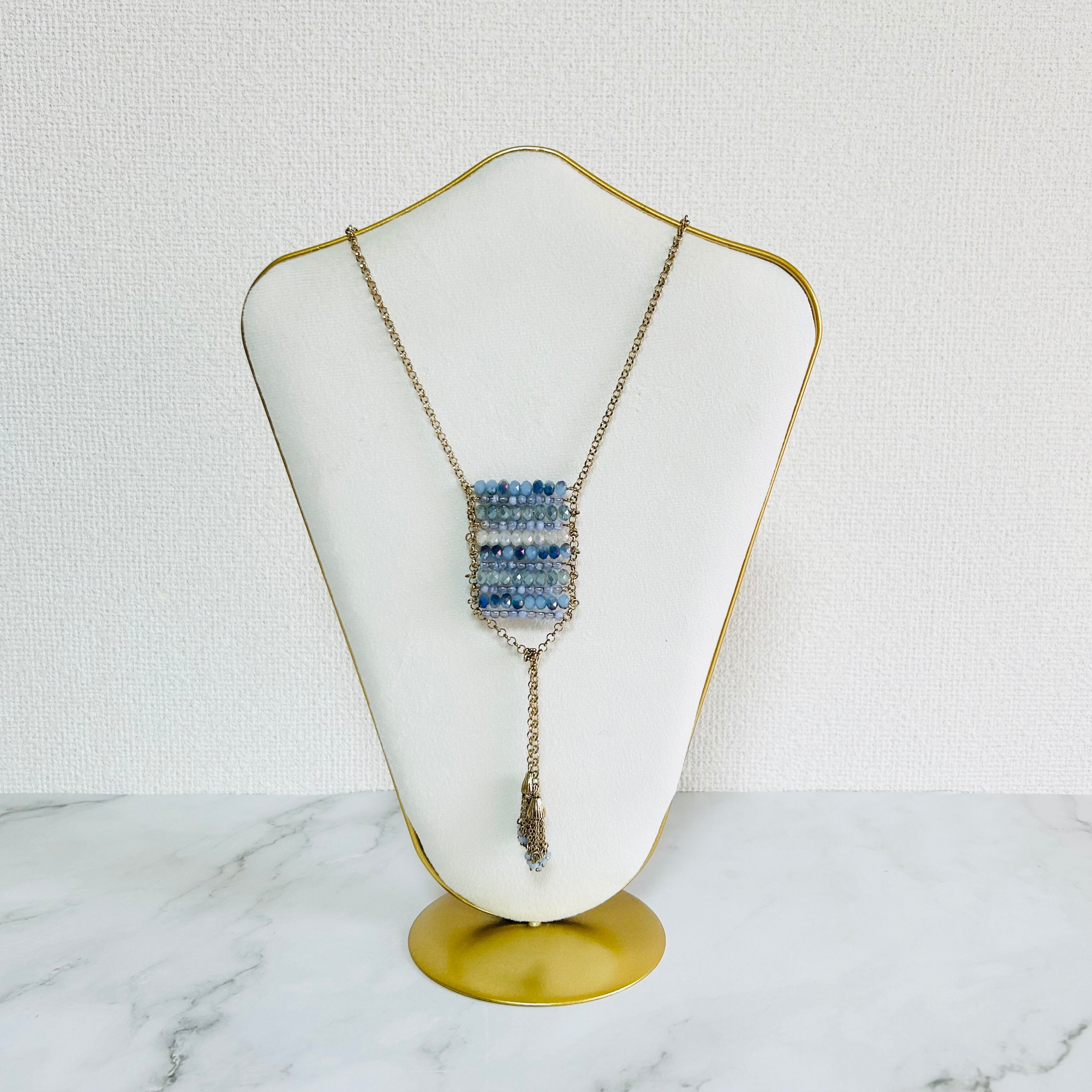 ブルー、ホワイト✖️アンティークゴールドカラーのロングネックレスです。
