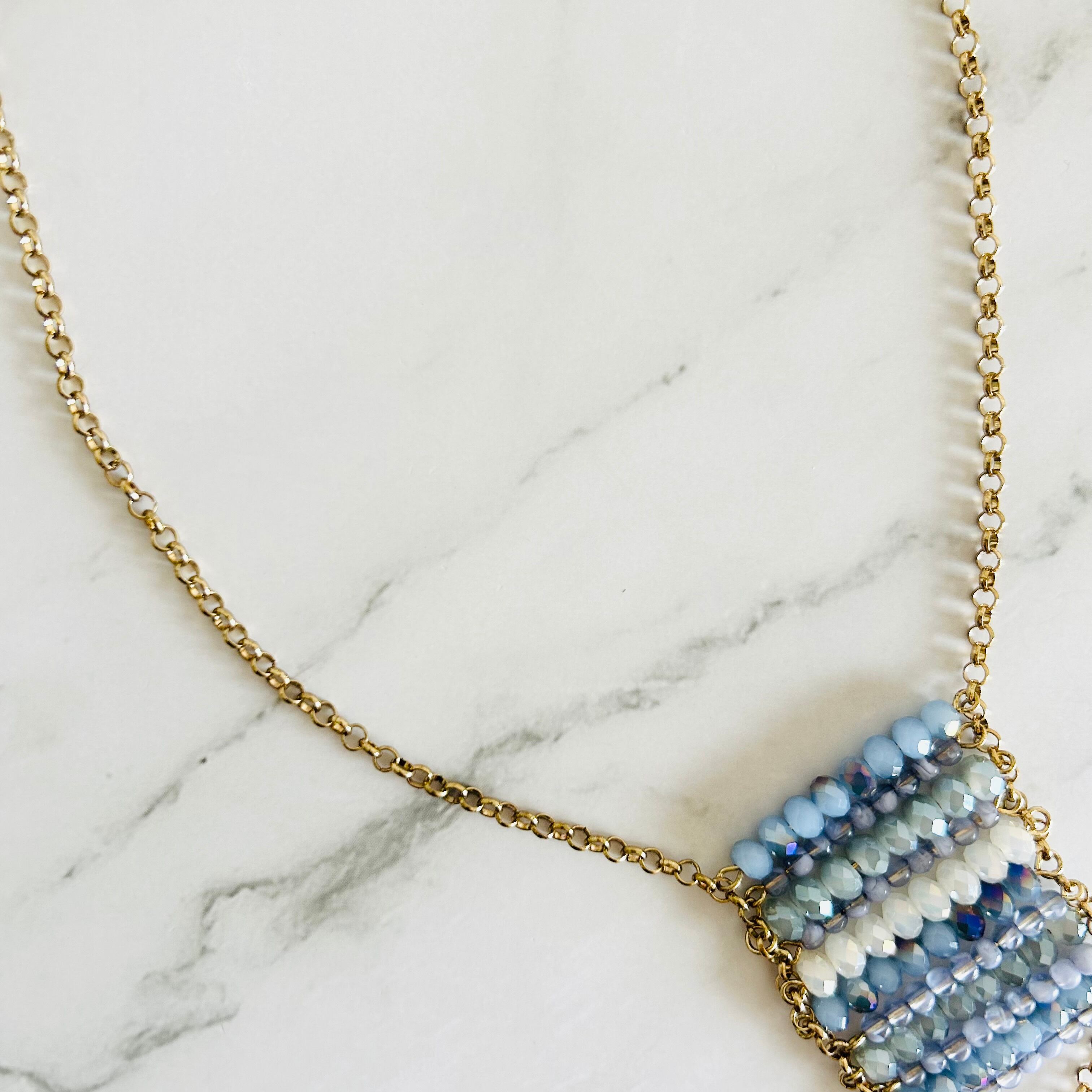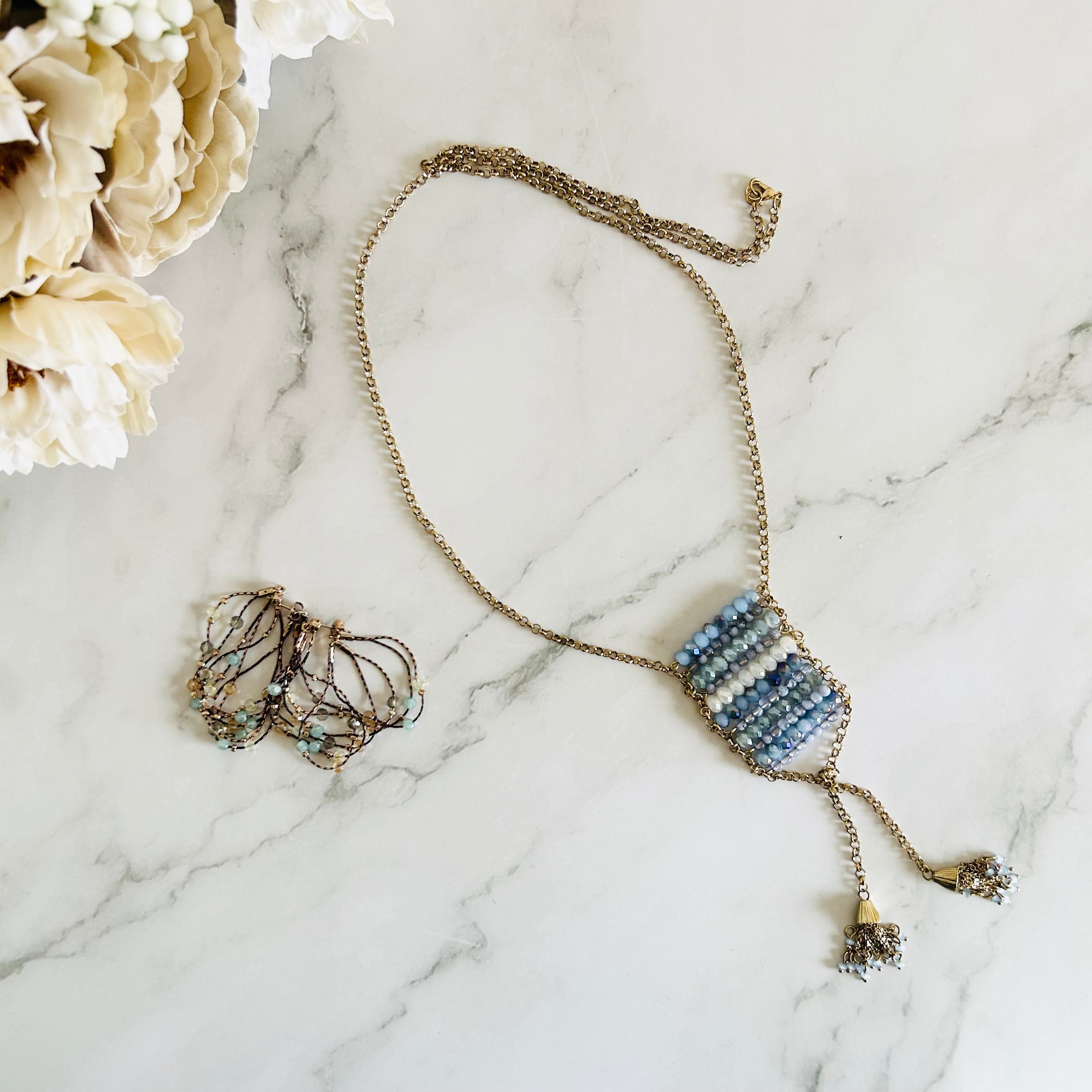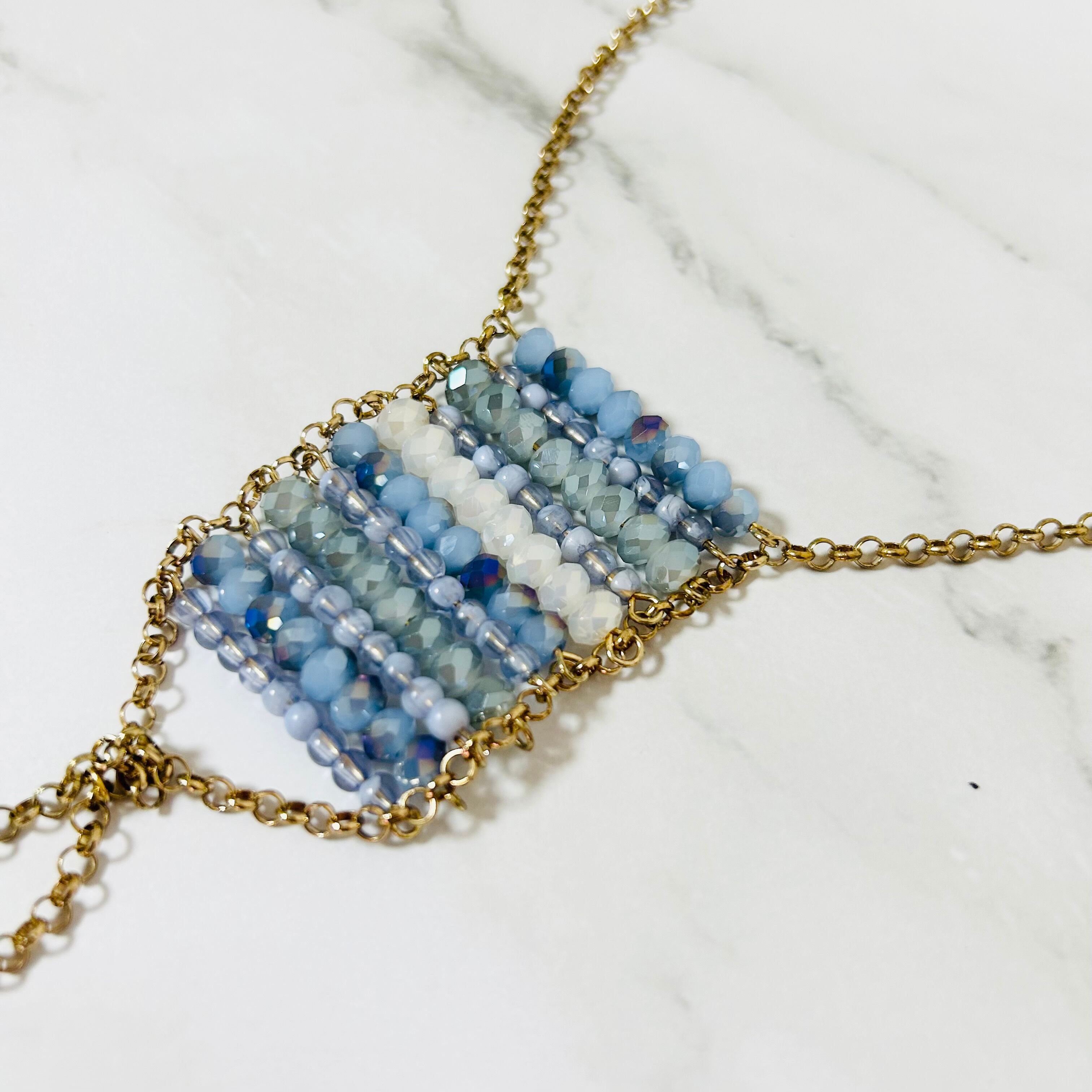 ブルー、ホワイト✖️アンティークゴールドカラーのロングネックレスです。