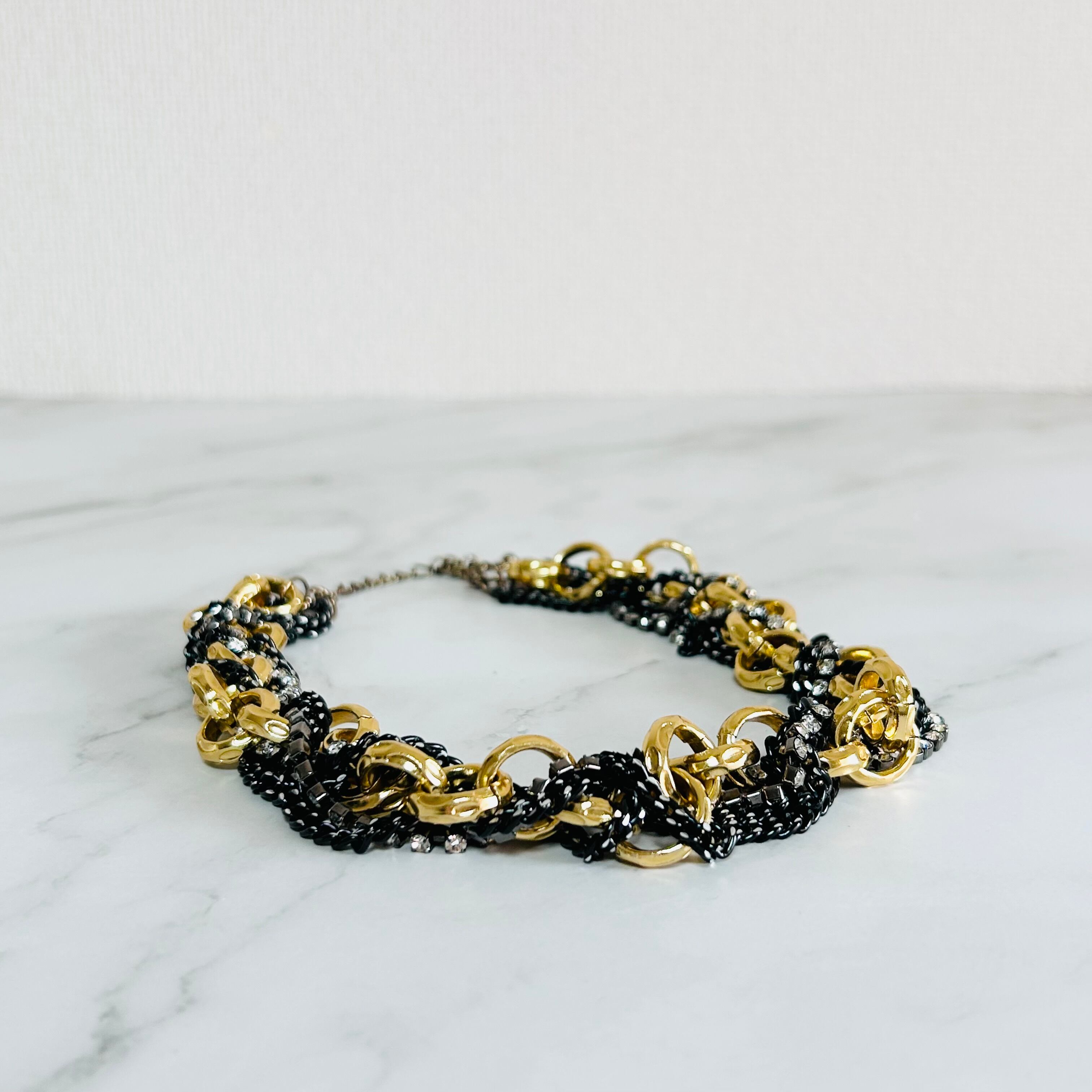 ブラック、クリスタル✖️アンティークゴールドカラーのネックレスです。