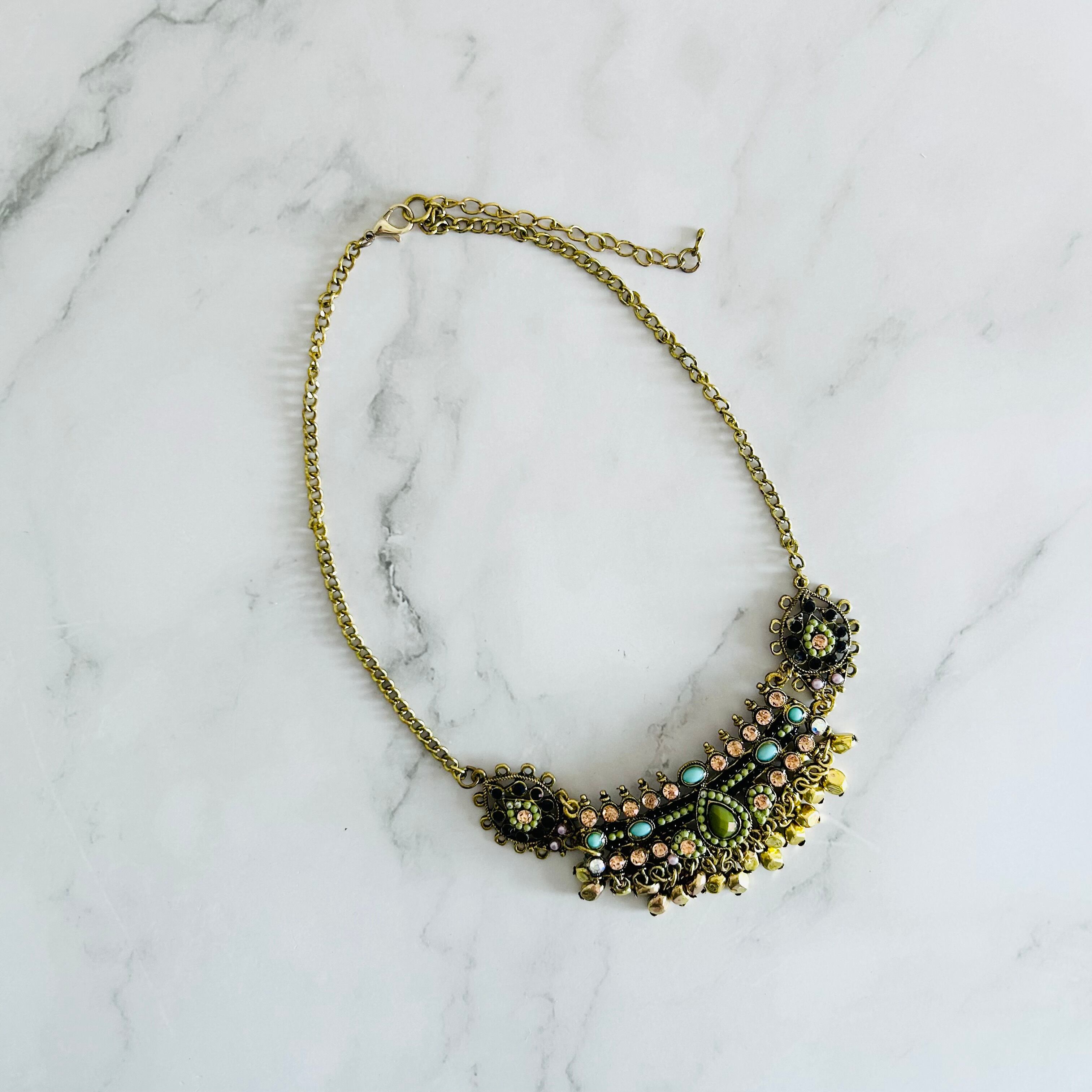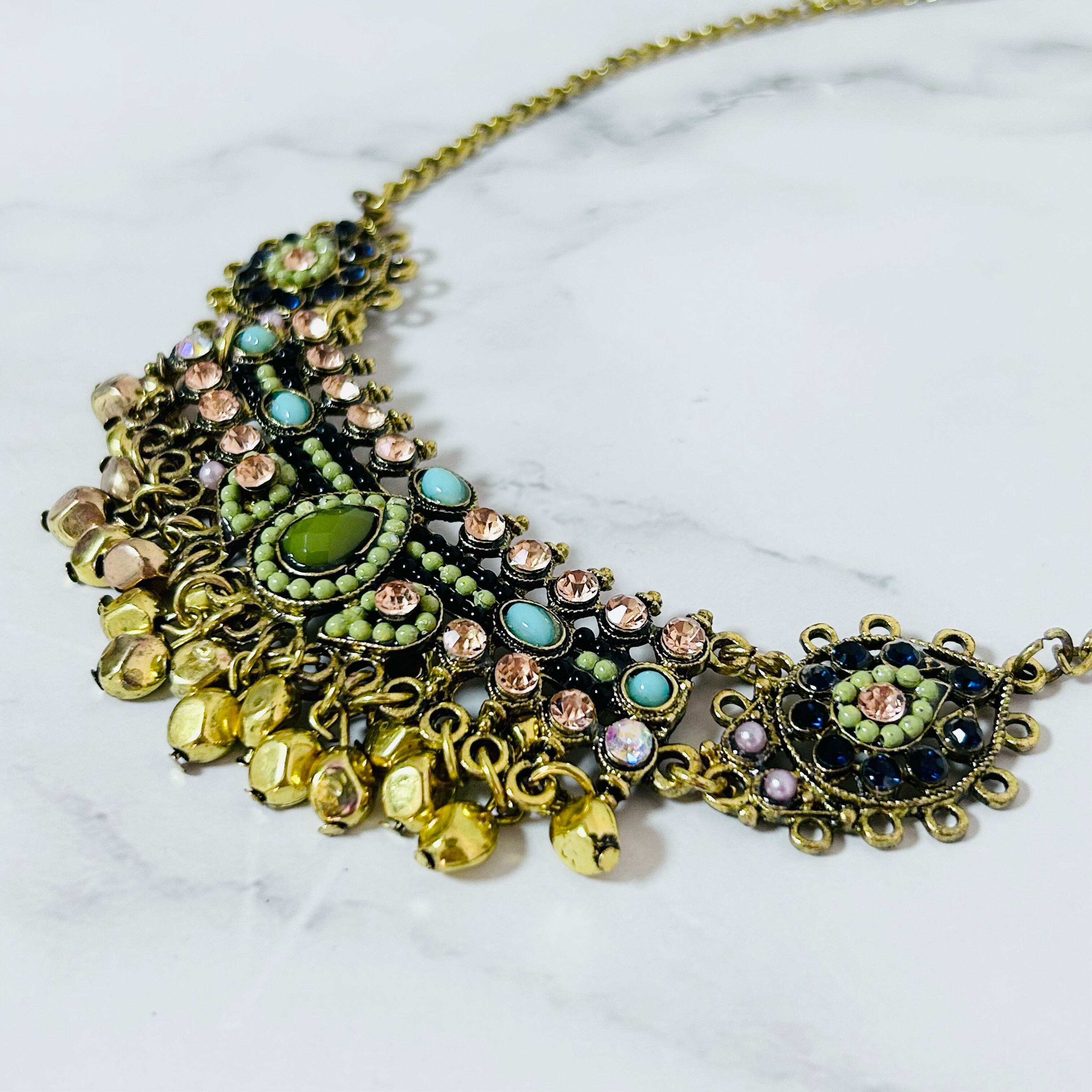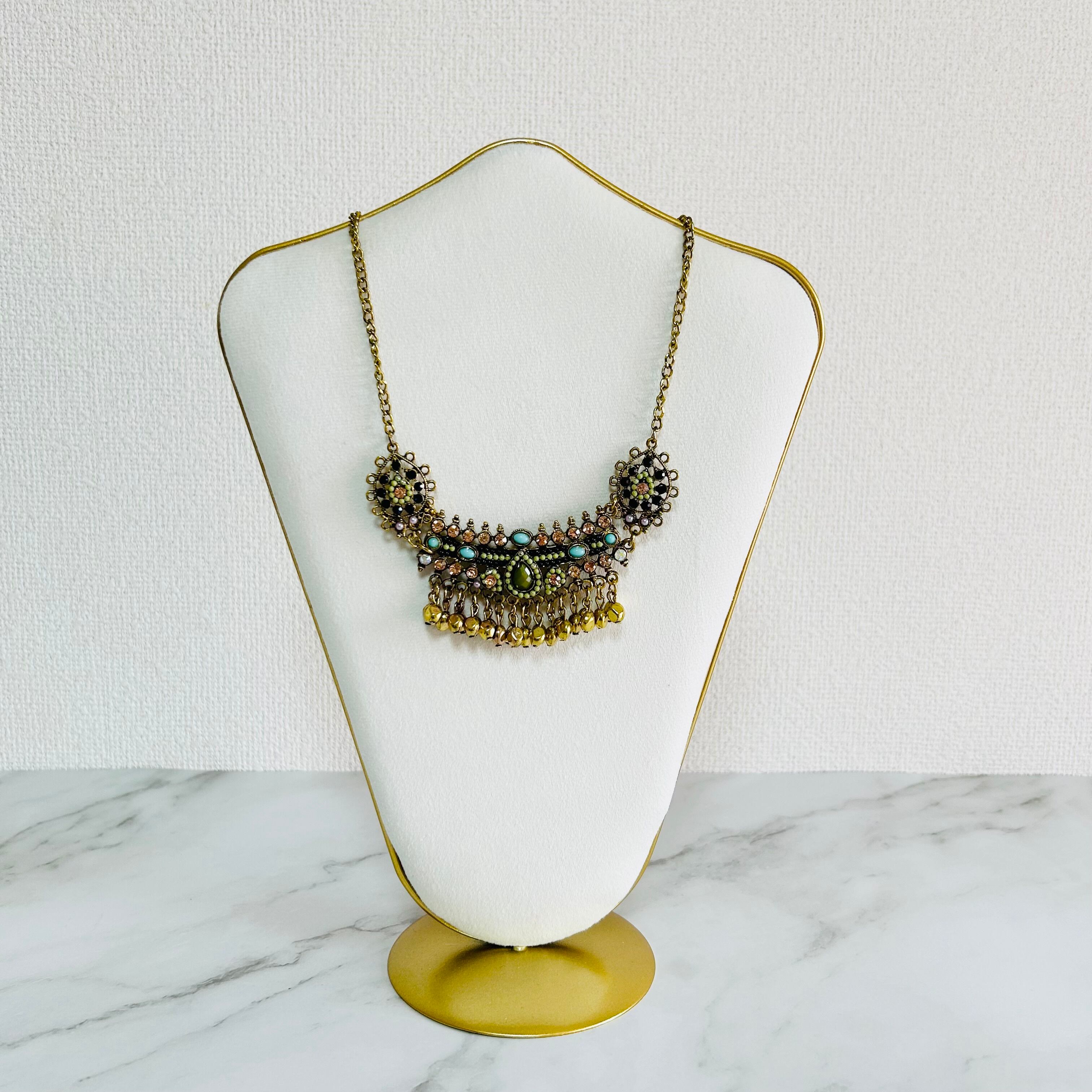 マルチカラー✖️アンティークゴールドカラーのネックレスです。