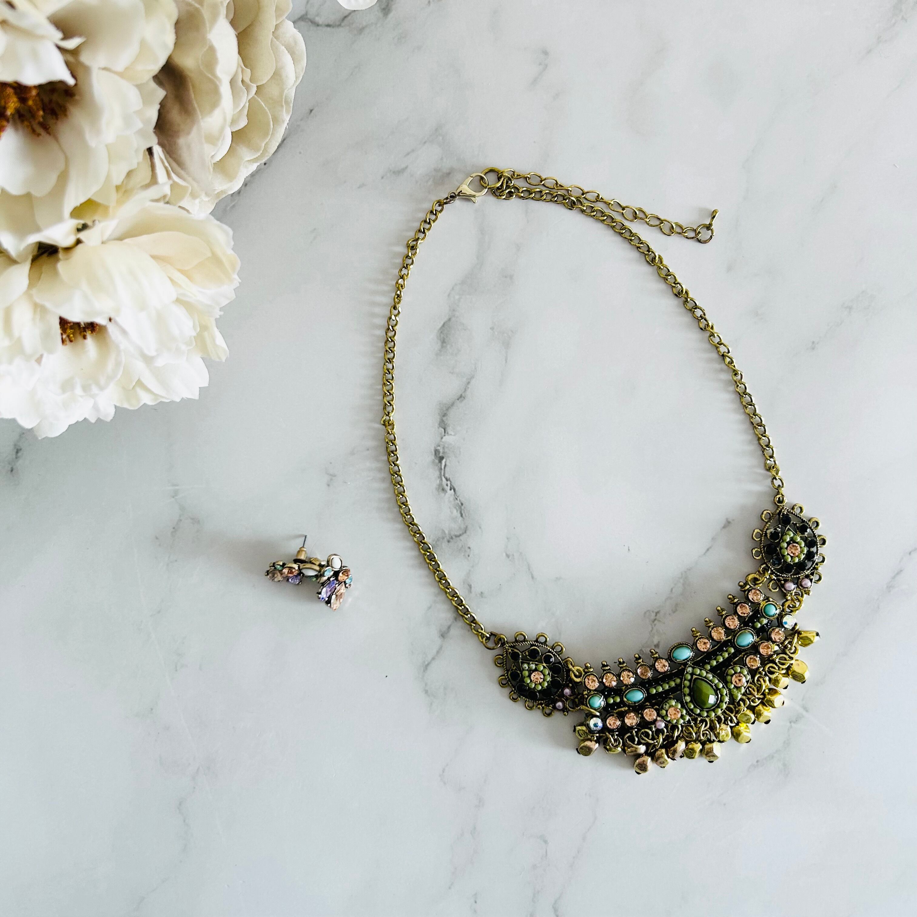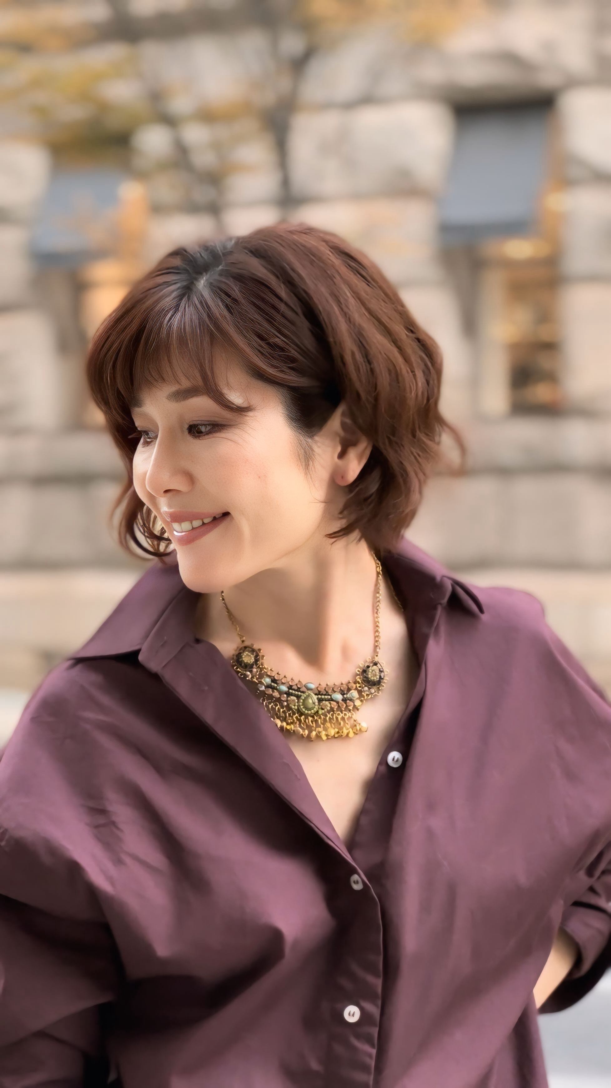 大人の女性にぴったりなネックレスで、華やかな彩りの中にも落ち着いた大人の印象を表現してくれます。