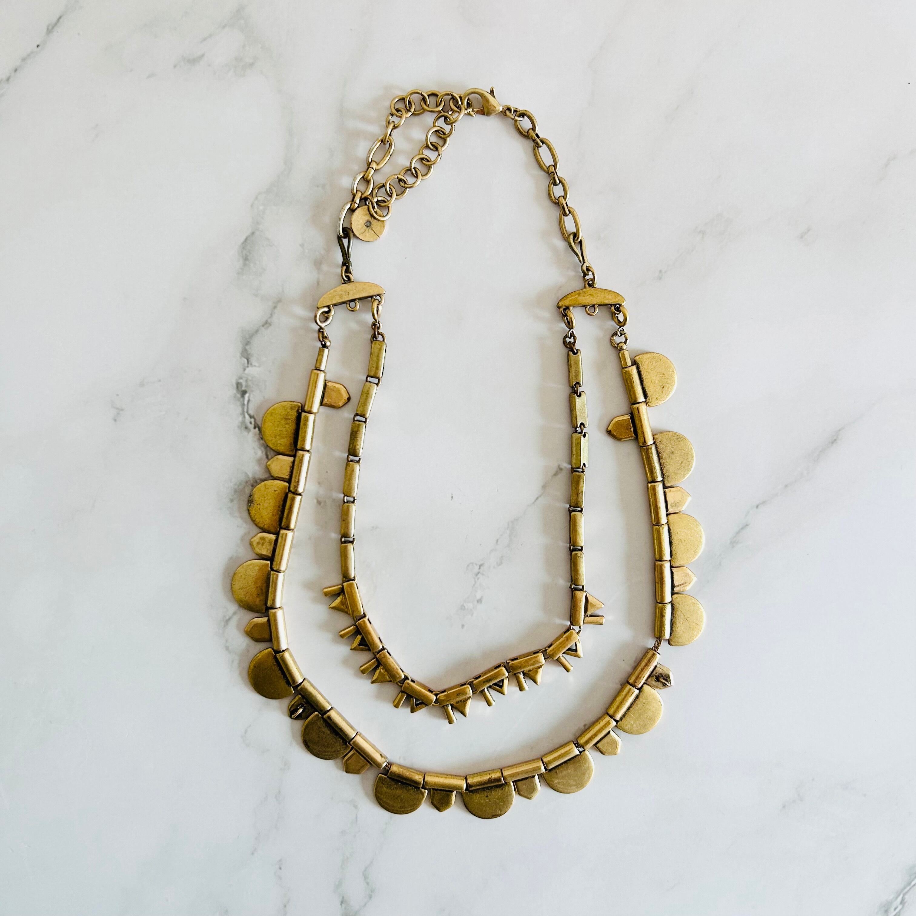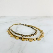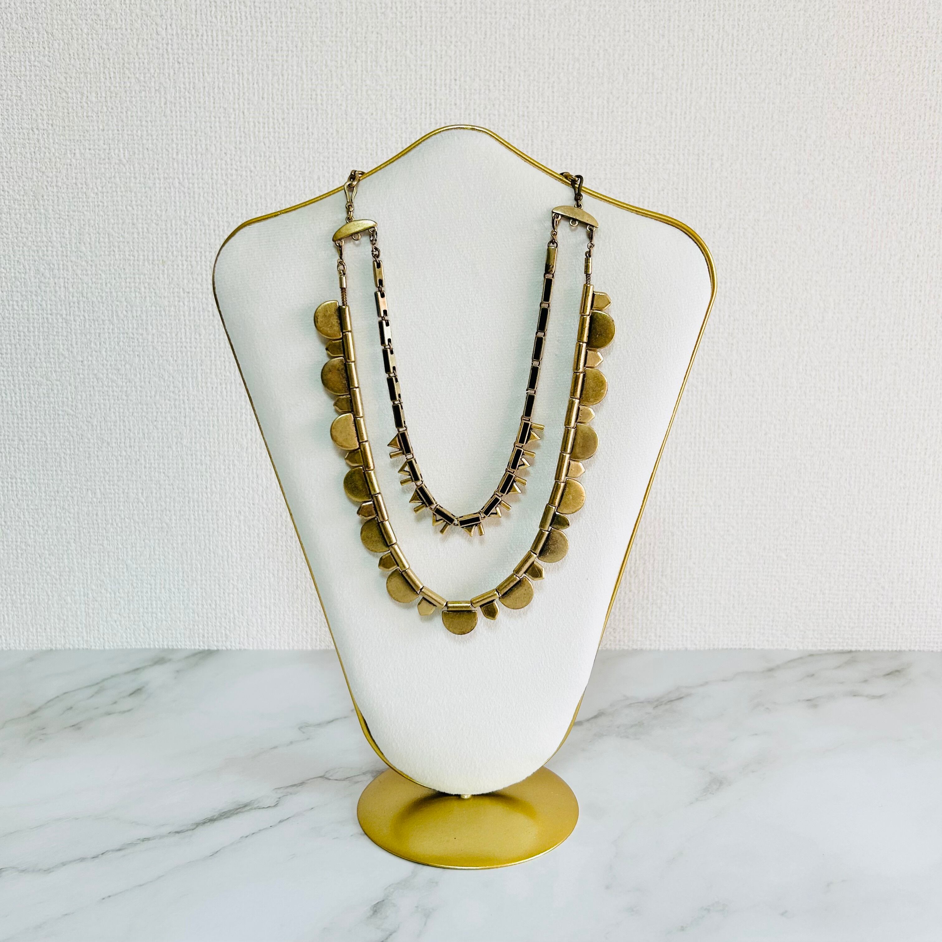 マットな質感のアンティークゴールドのモチーフパーツを2重に連ね、個性的なデザインに仕上げました。