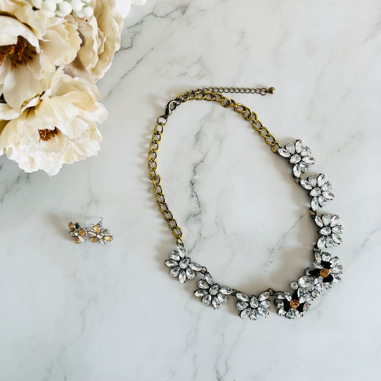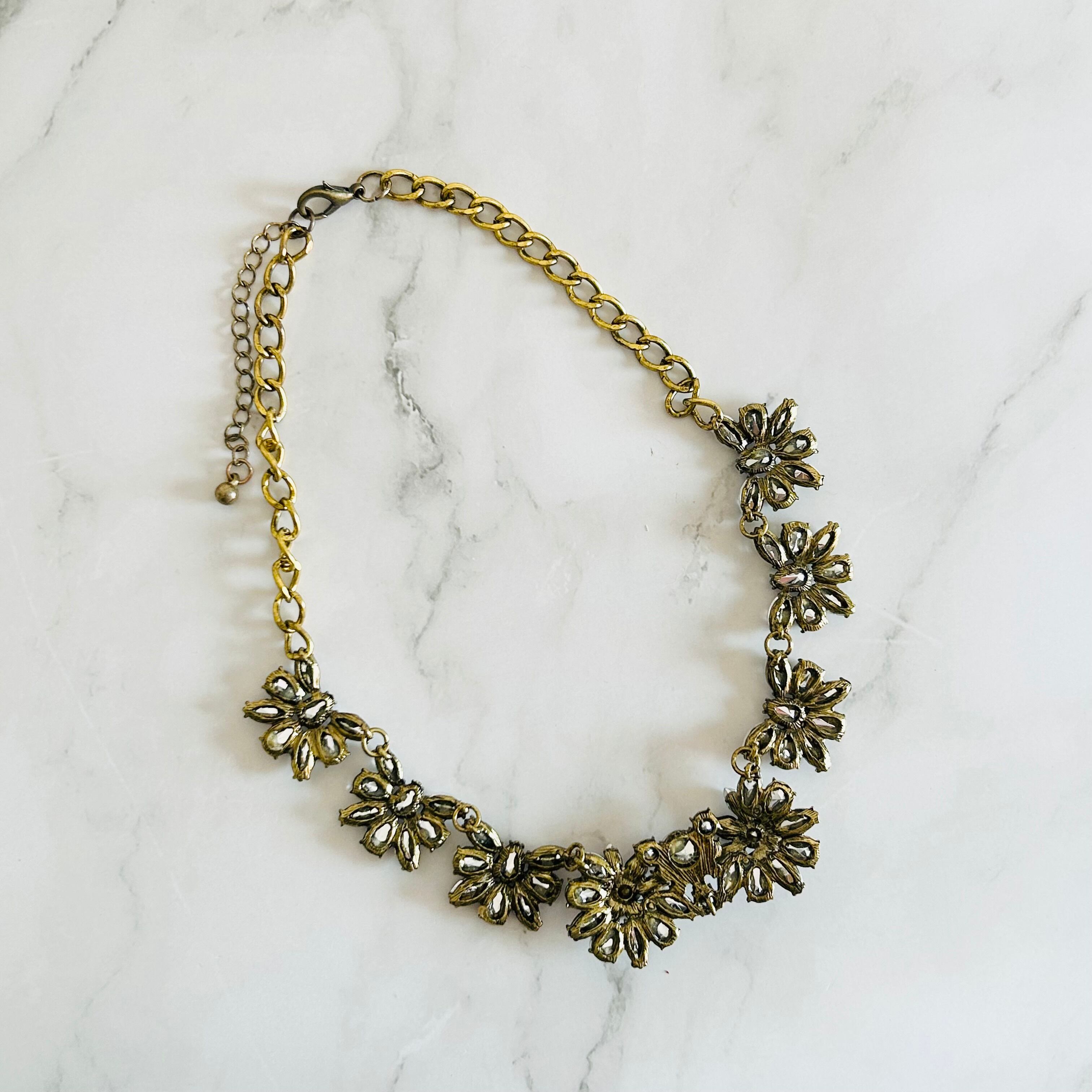 クリスタル✖️アンティークゴールドカラーのネックレスです。