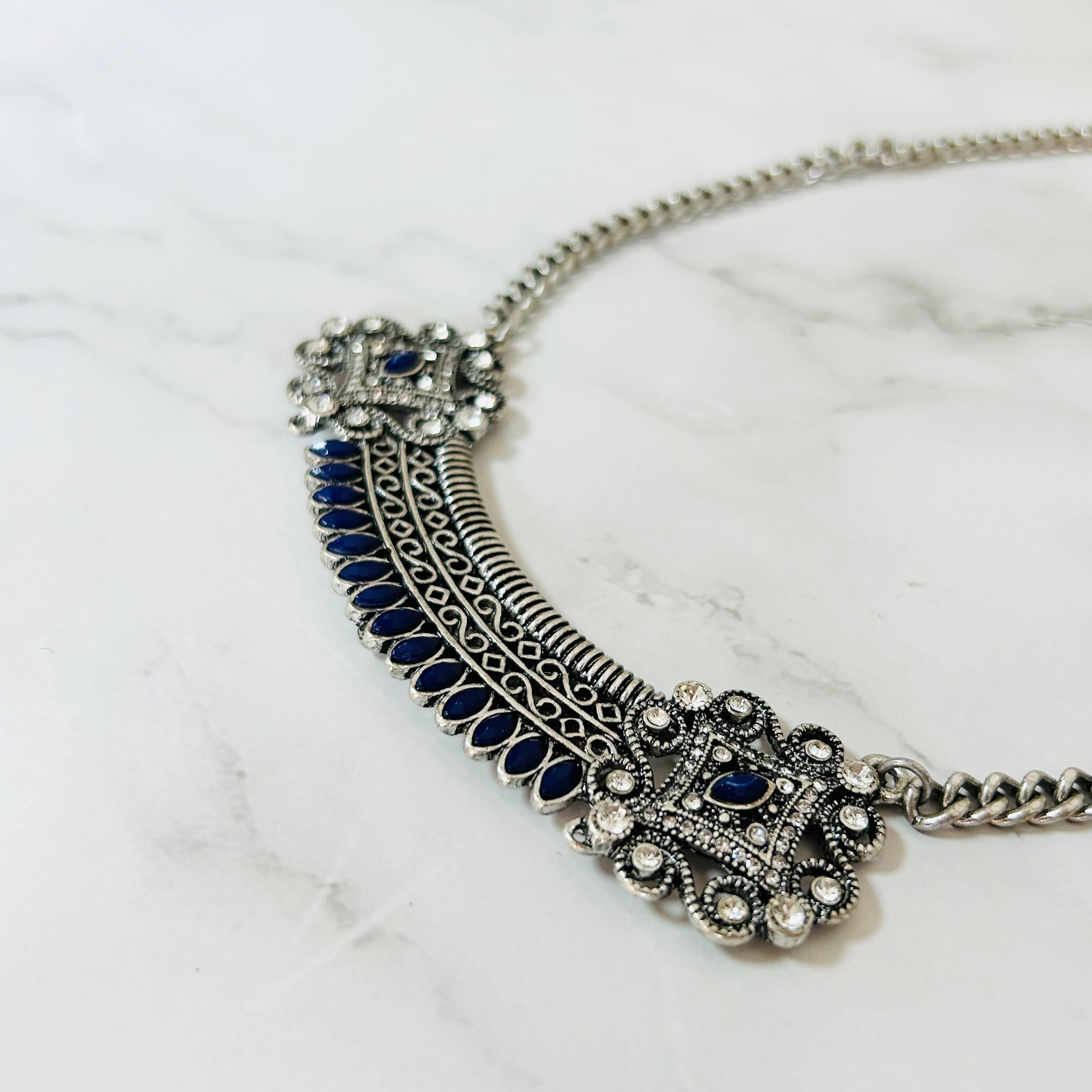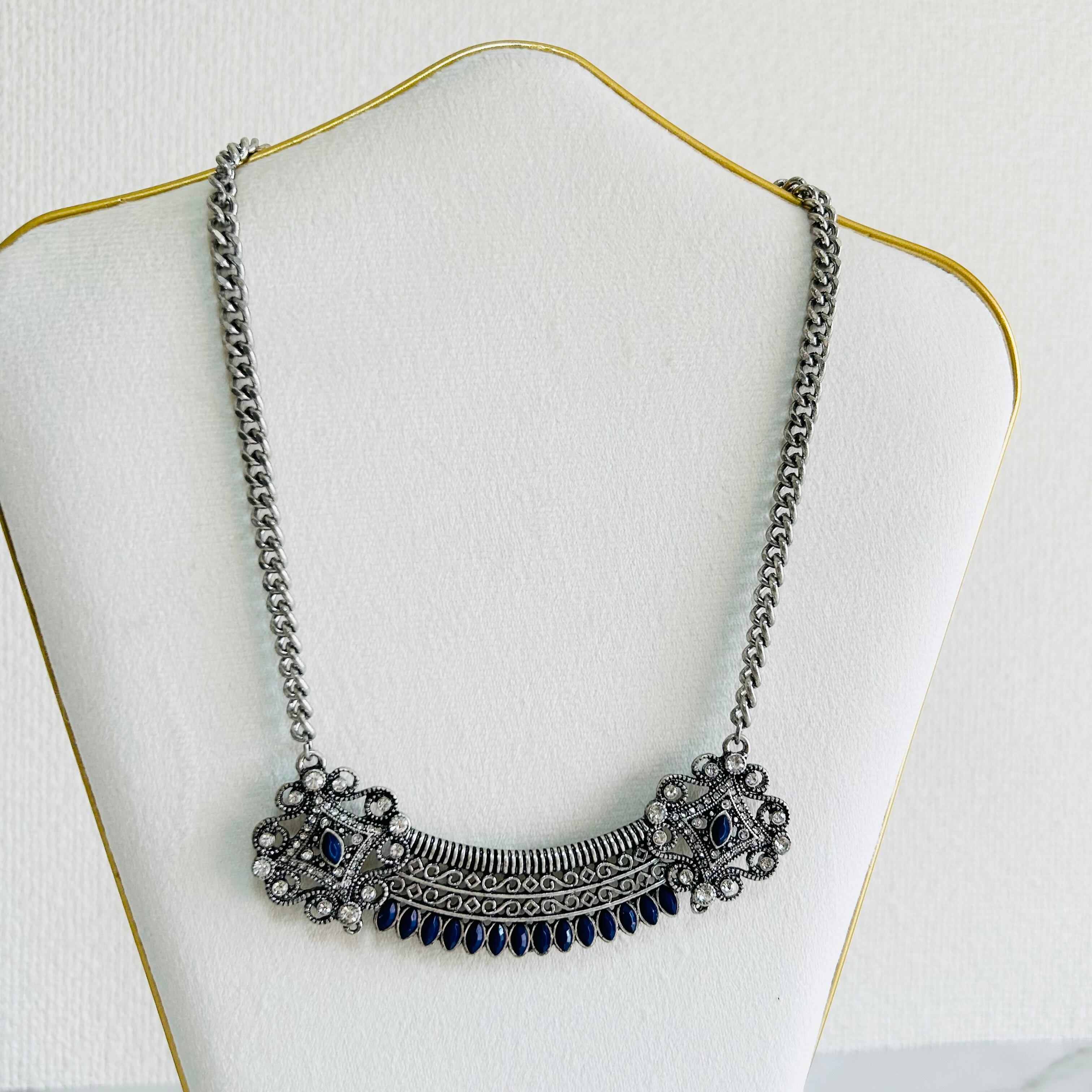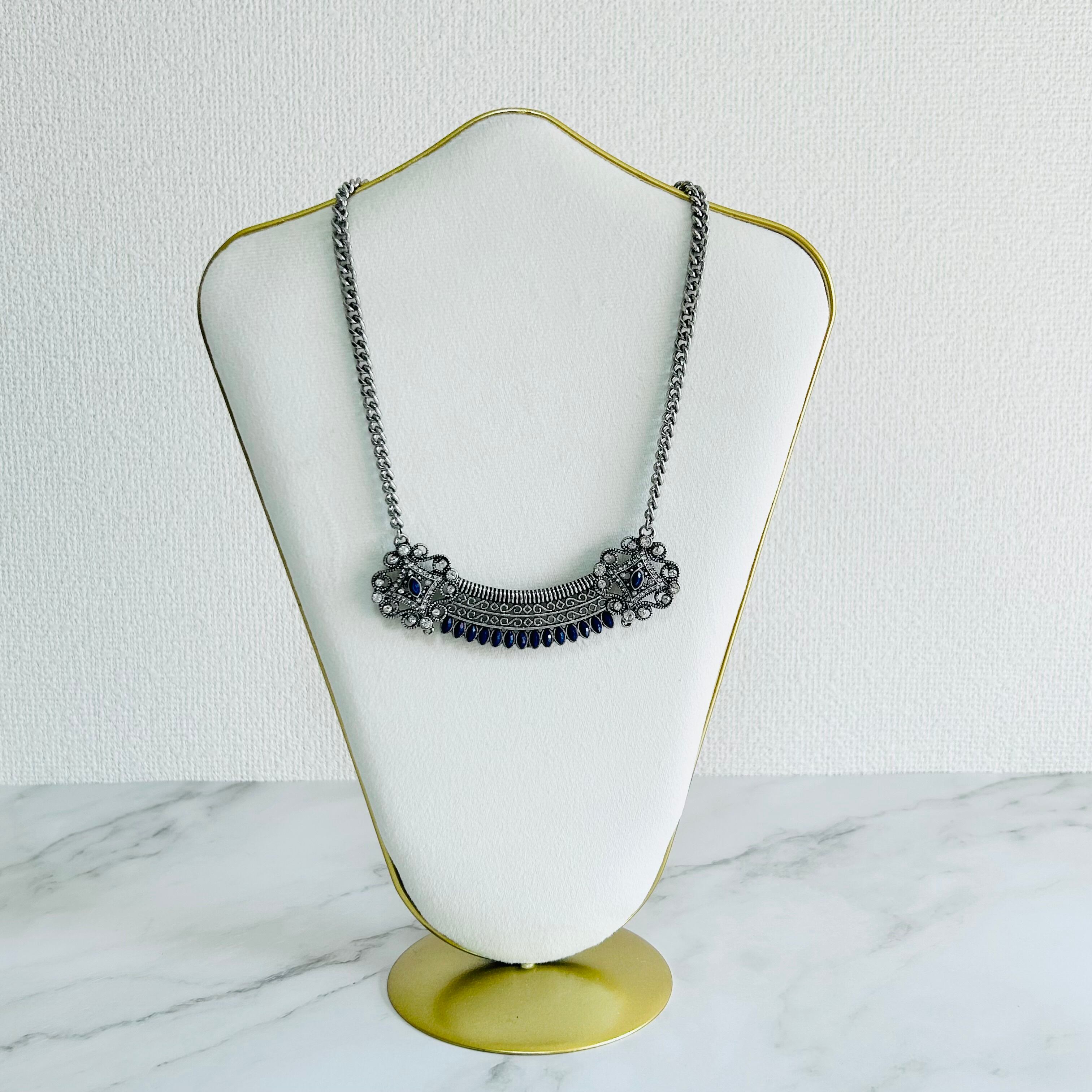 ネイビー✖️アンティークシルバーカラーのネックレスです。